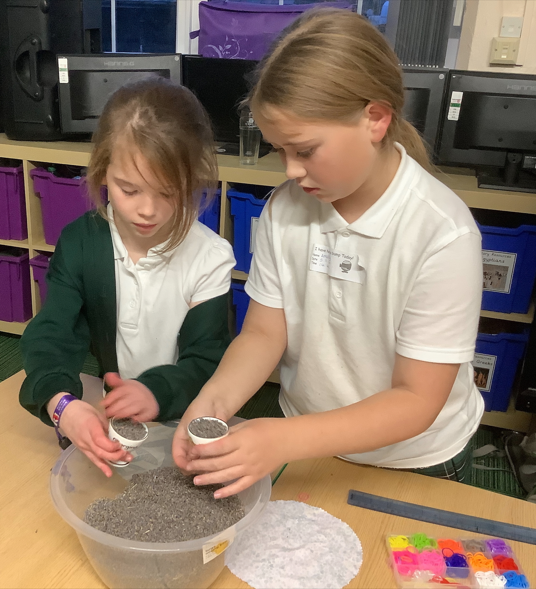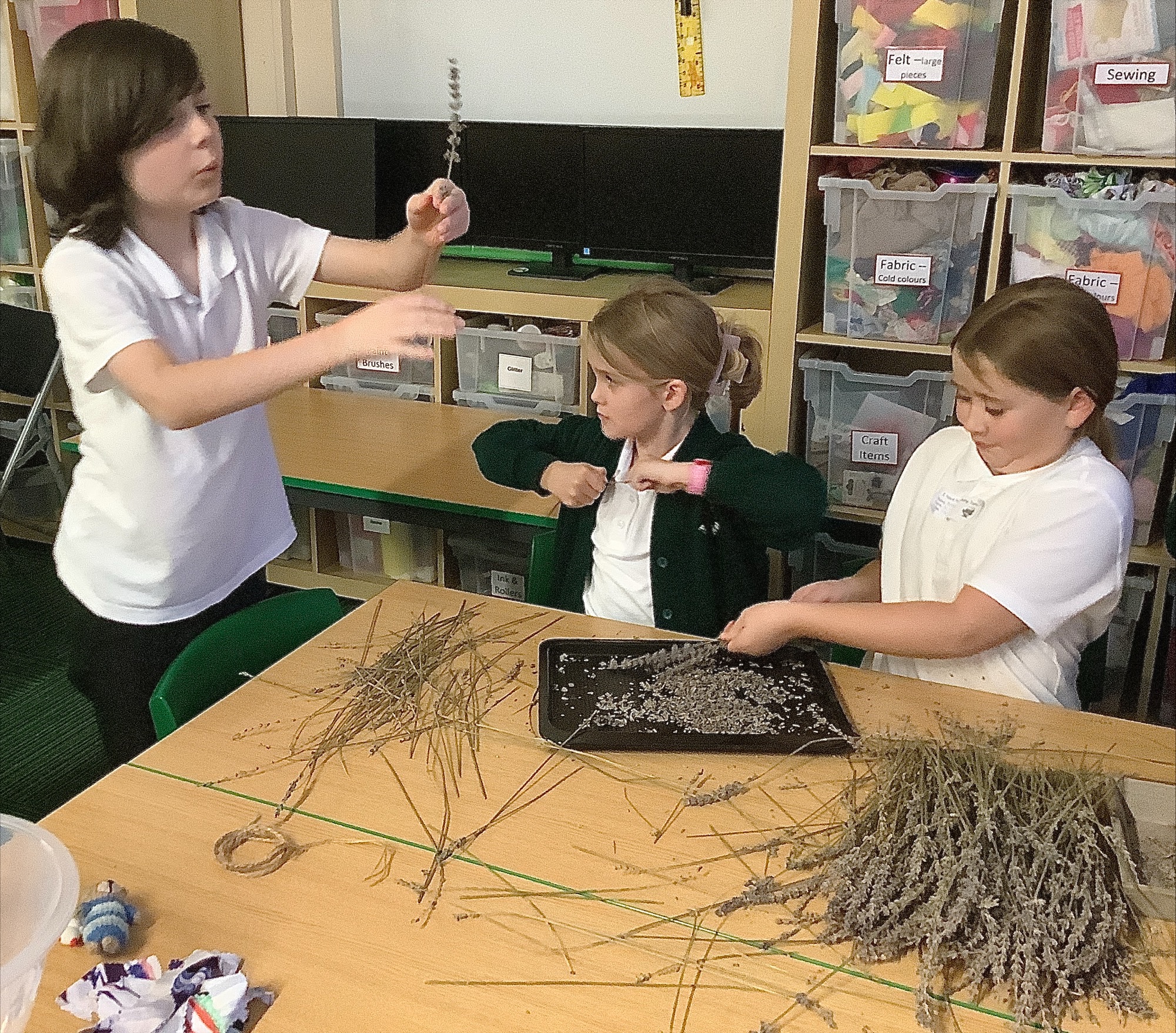 The lavender growing on our school field was carefully harvested and hung to dry. Once ready, the children removed the flower heads from the stalks and set to work — and their dedication has paid off!