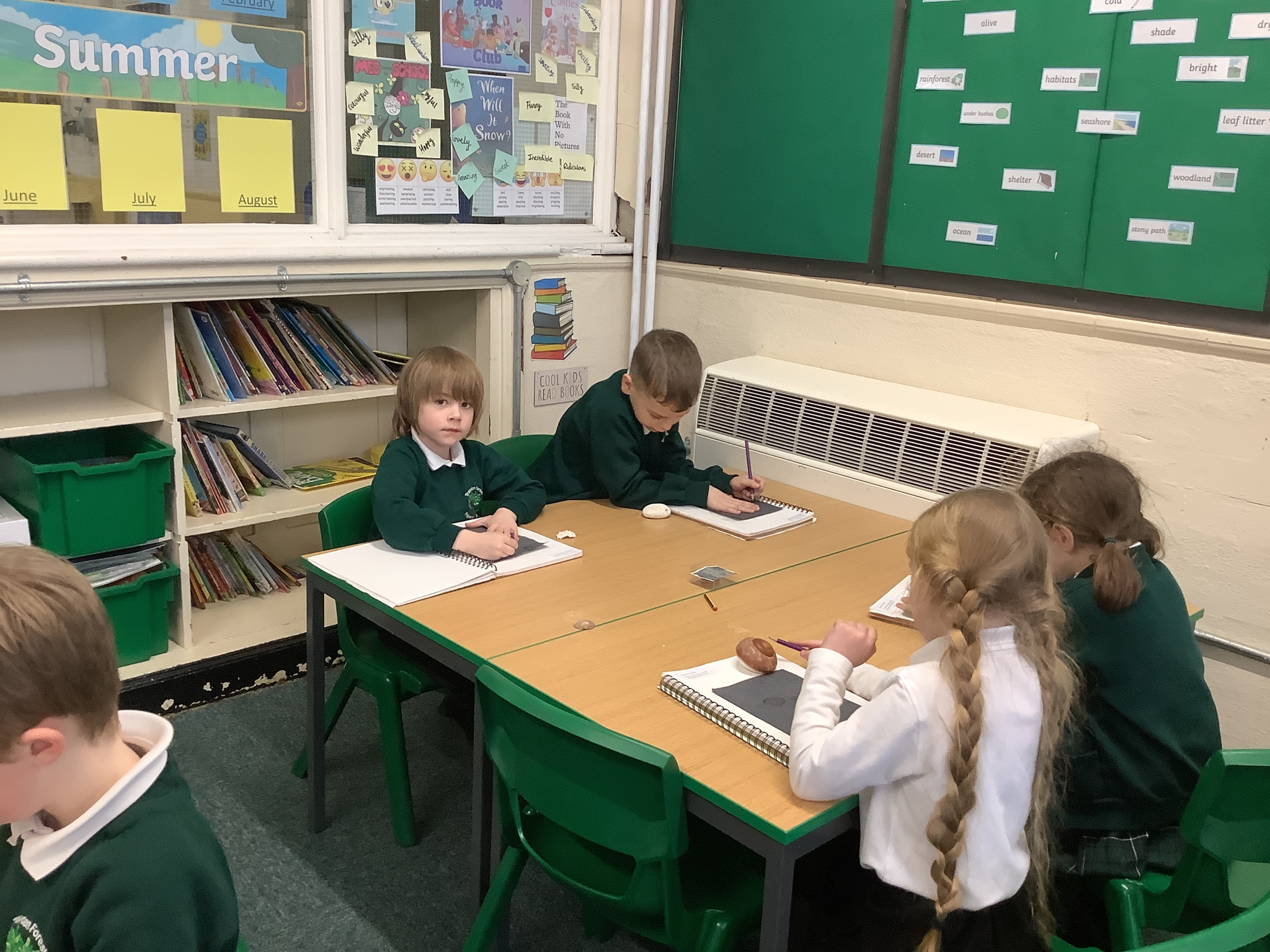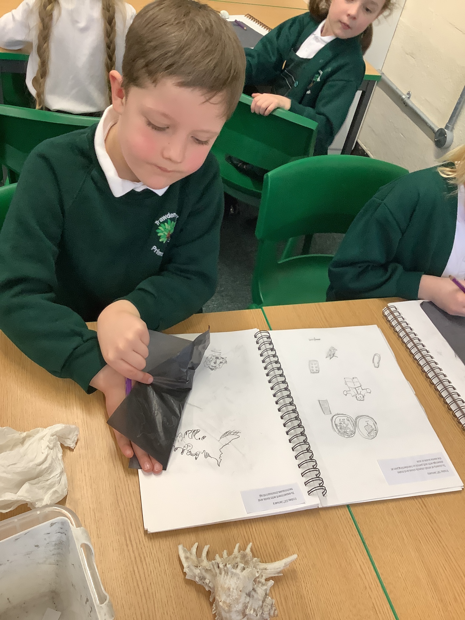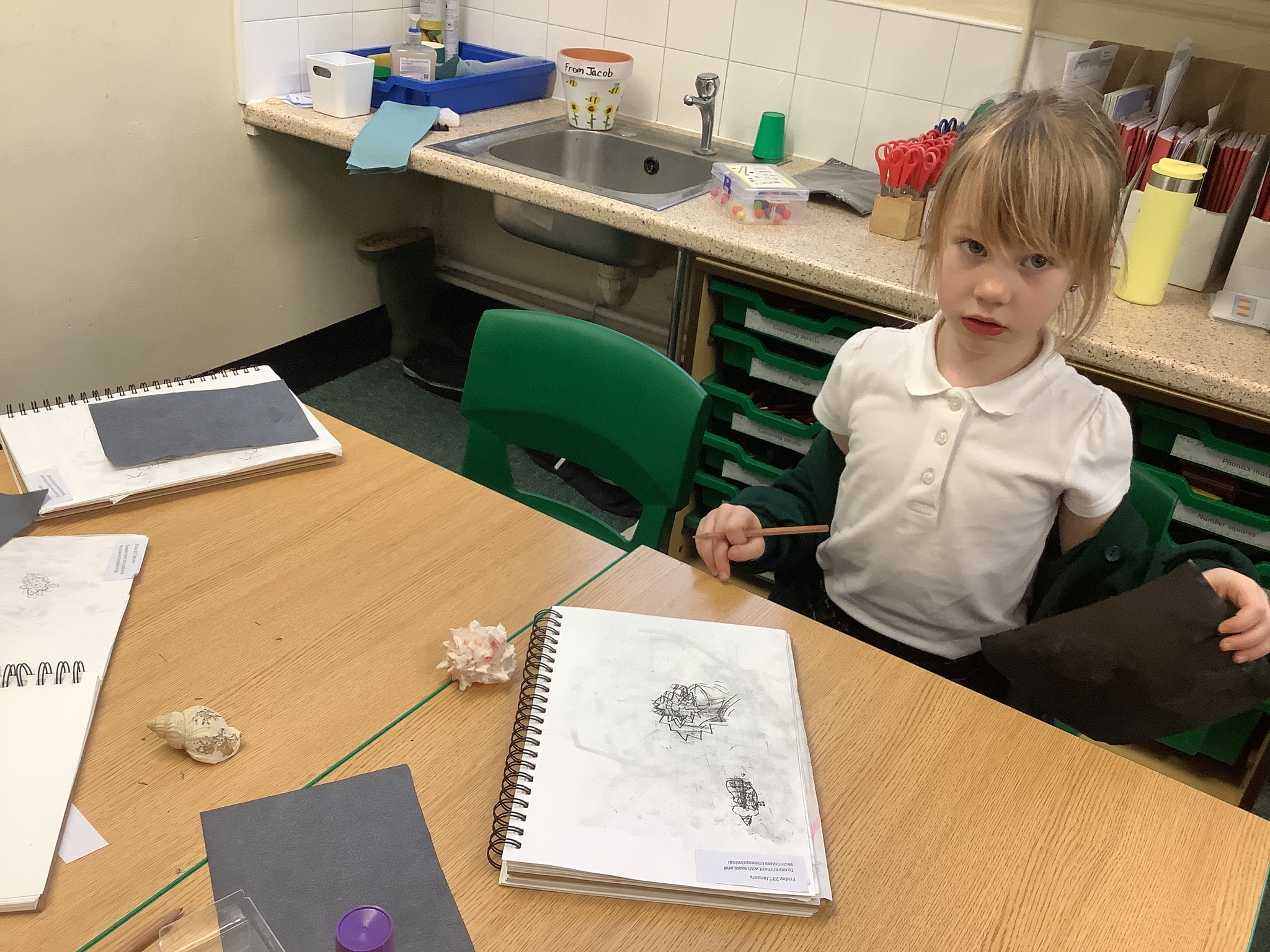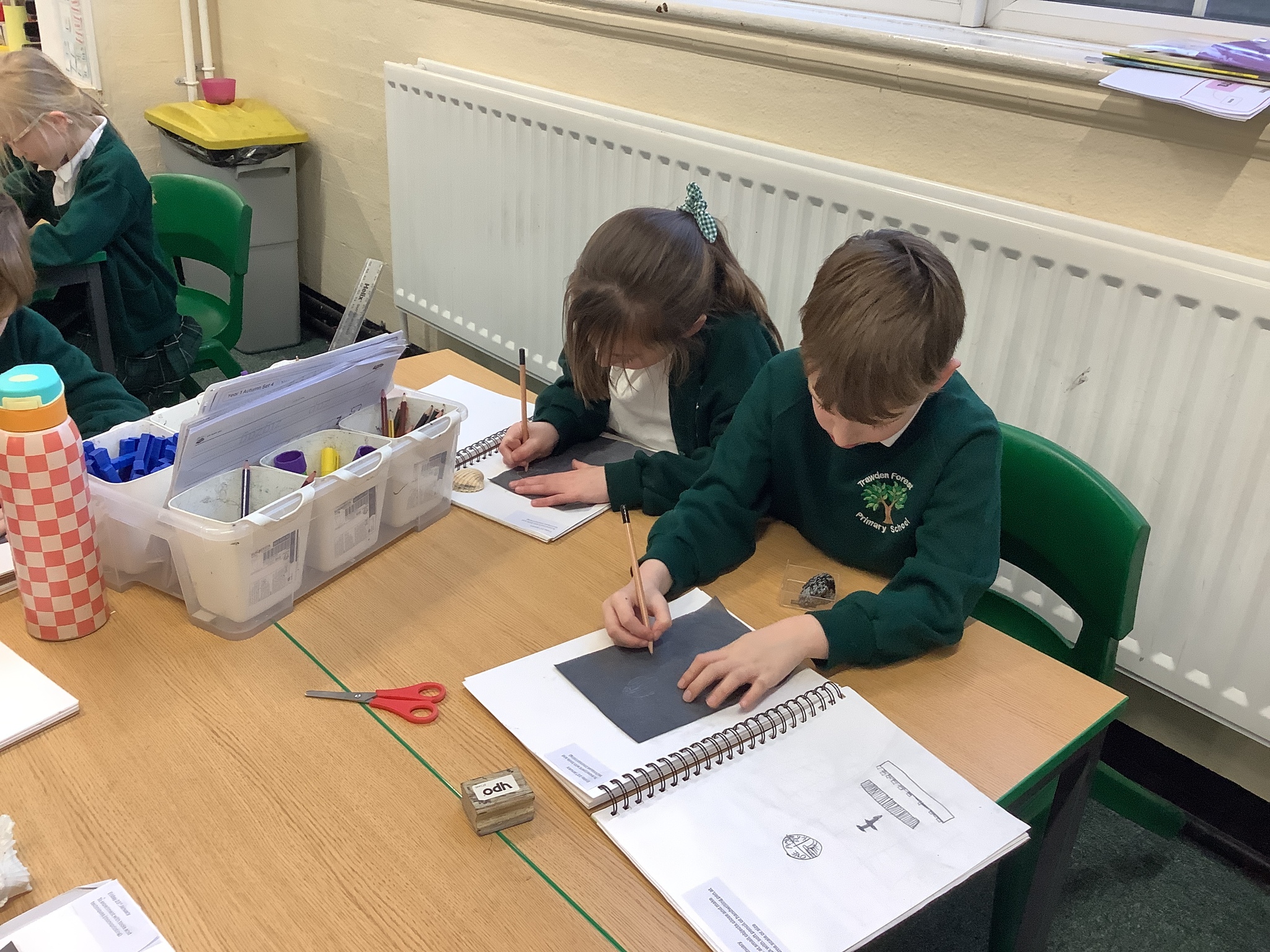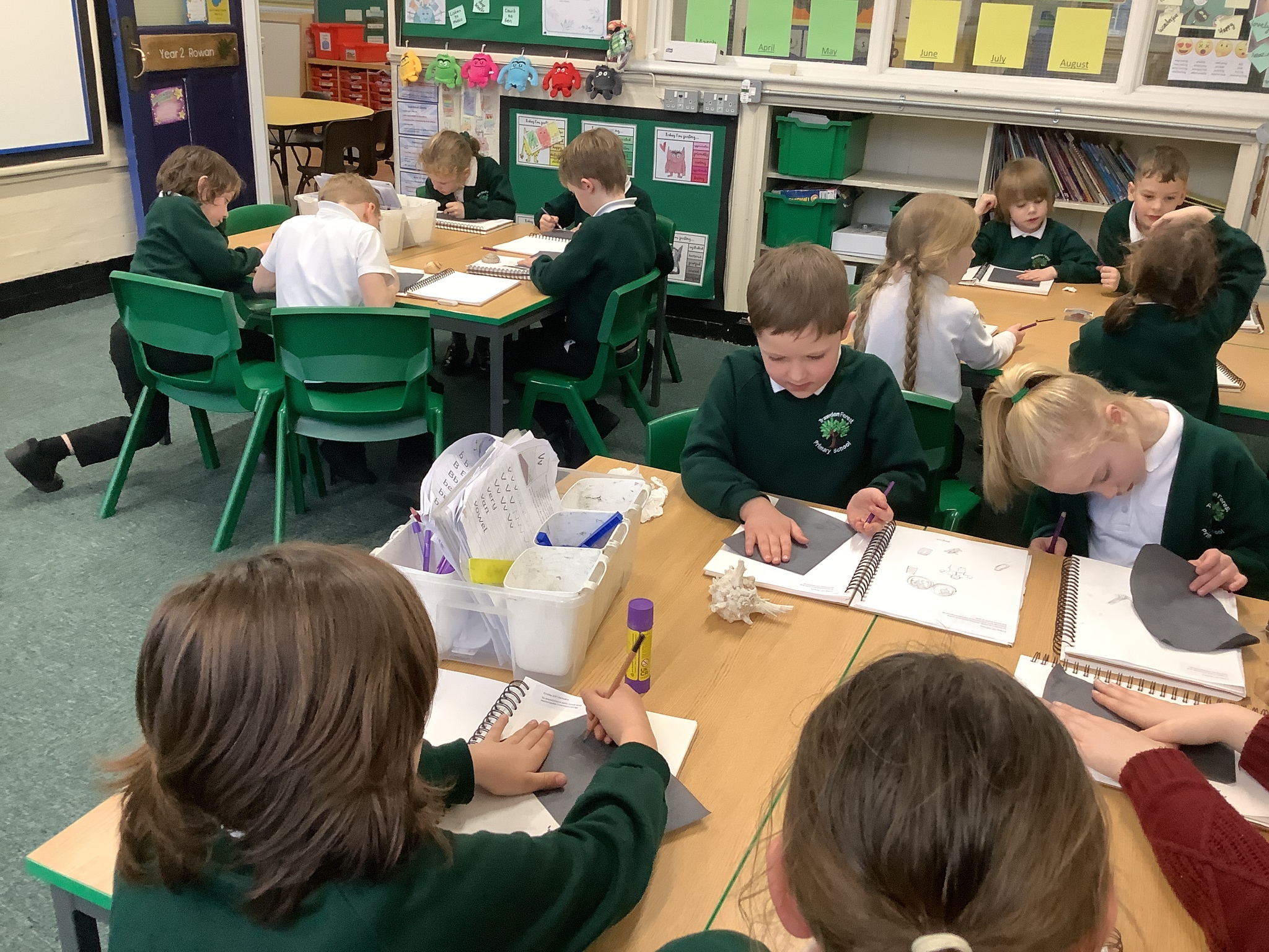This afternoon, Year 2 have been busy experimenting with carbon paper monoprinting. They carefully drew shells and precious stones on carbon paper, then rubbed pastels over their prints to add beautiful colour and texture.