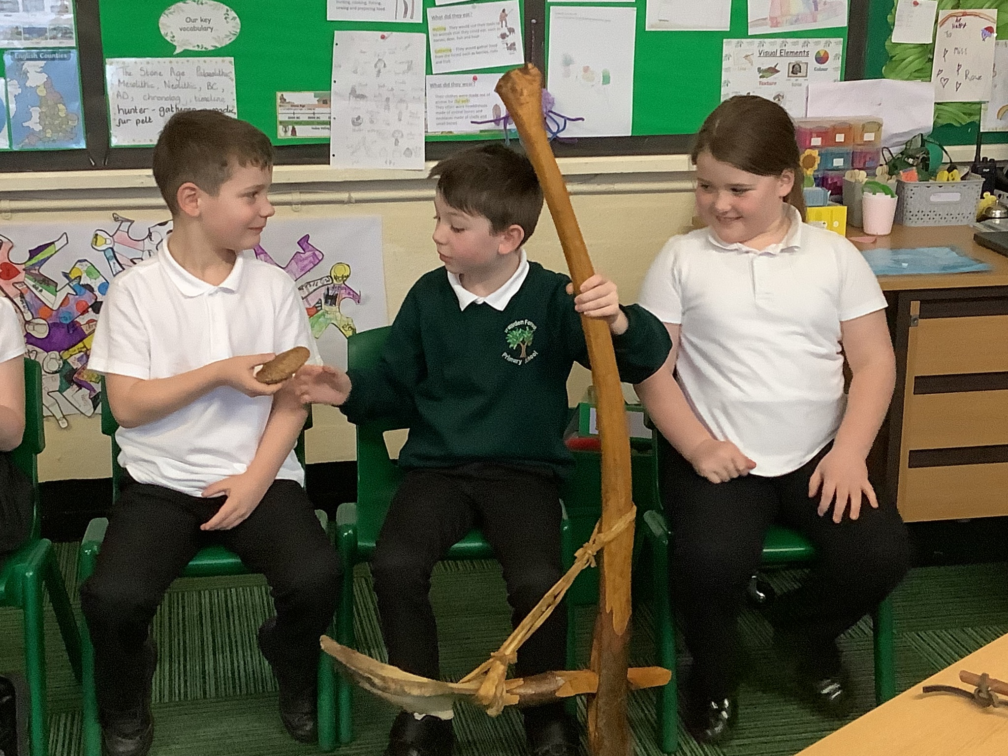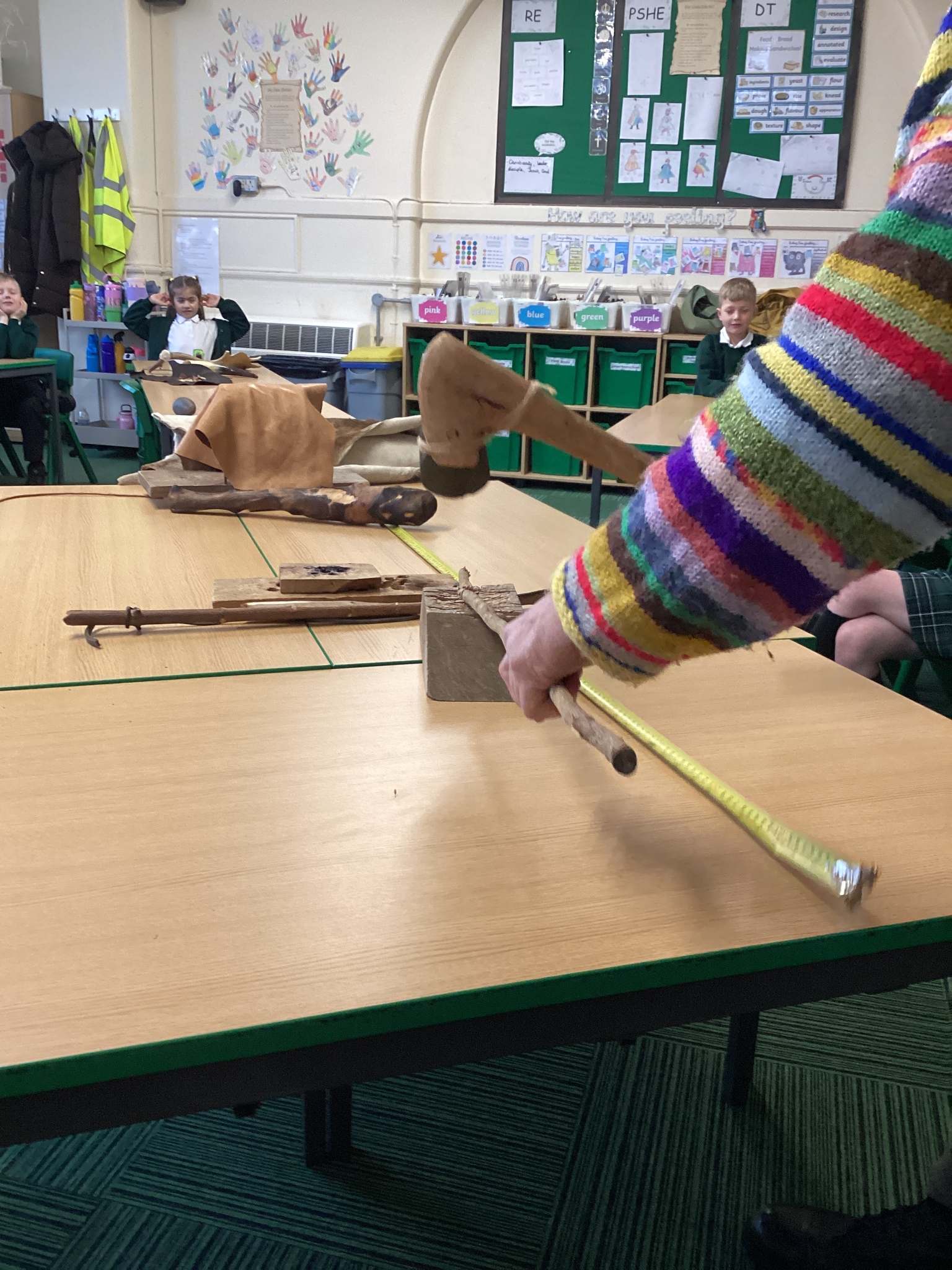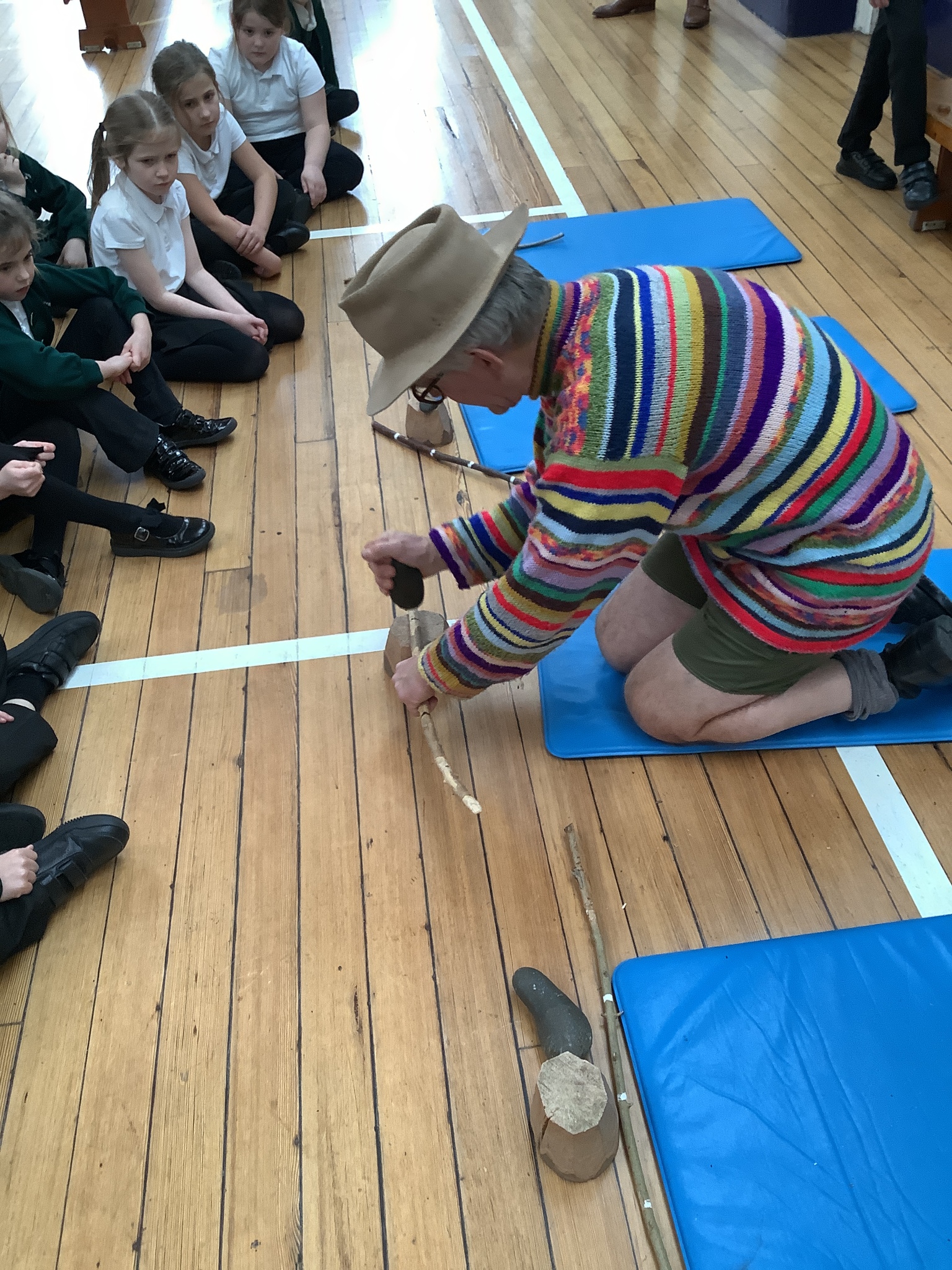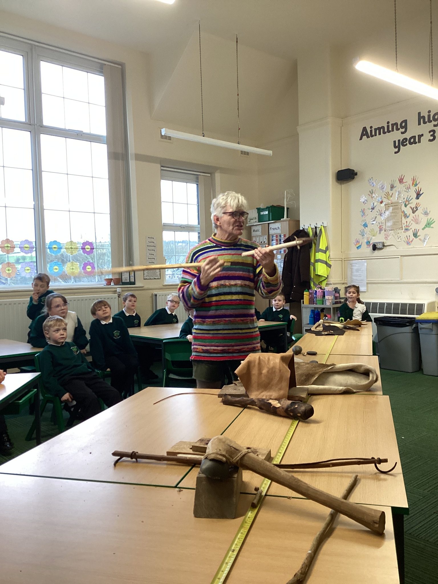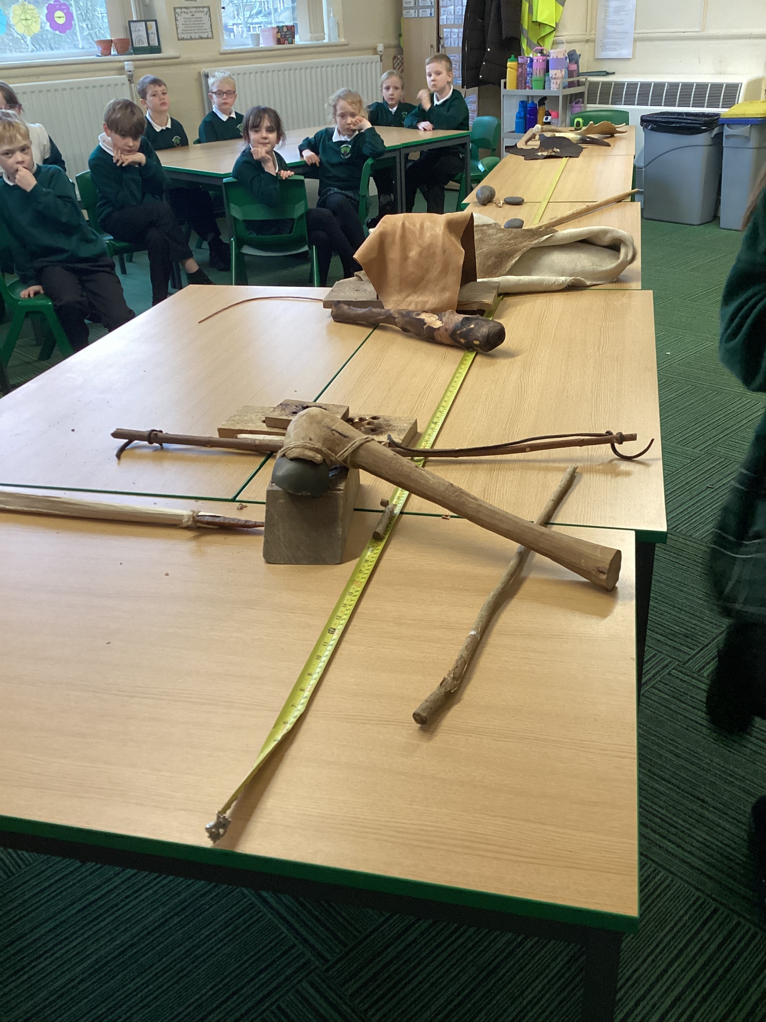 Today, we had a fantastic visit from 'the History Man' who took us on a journey back in time to the Stone Age. The children were fascinated to learn more about what life was like in the Stone Age and build upon the learning they are doing in History.