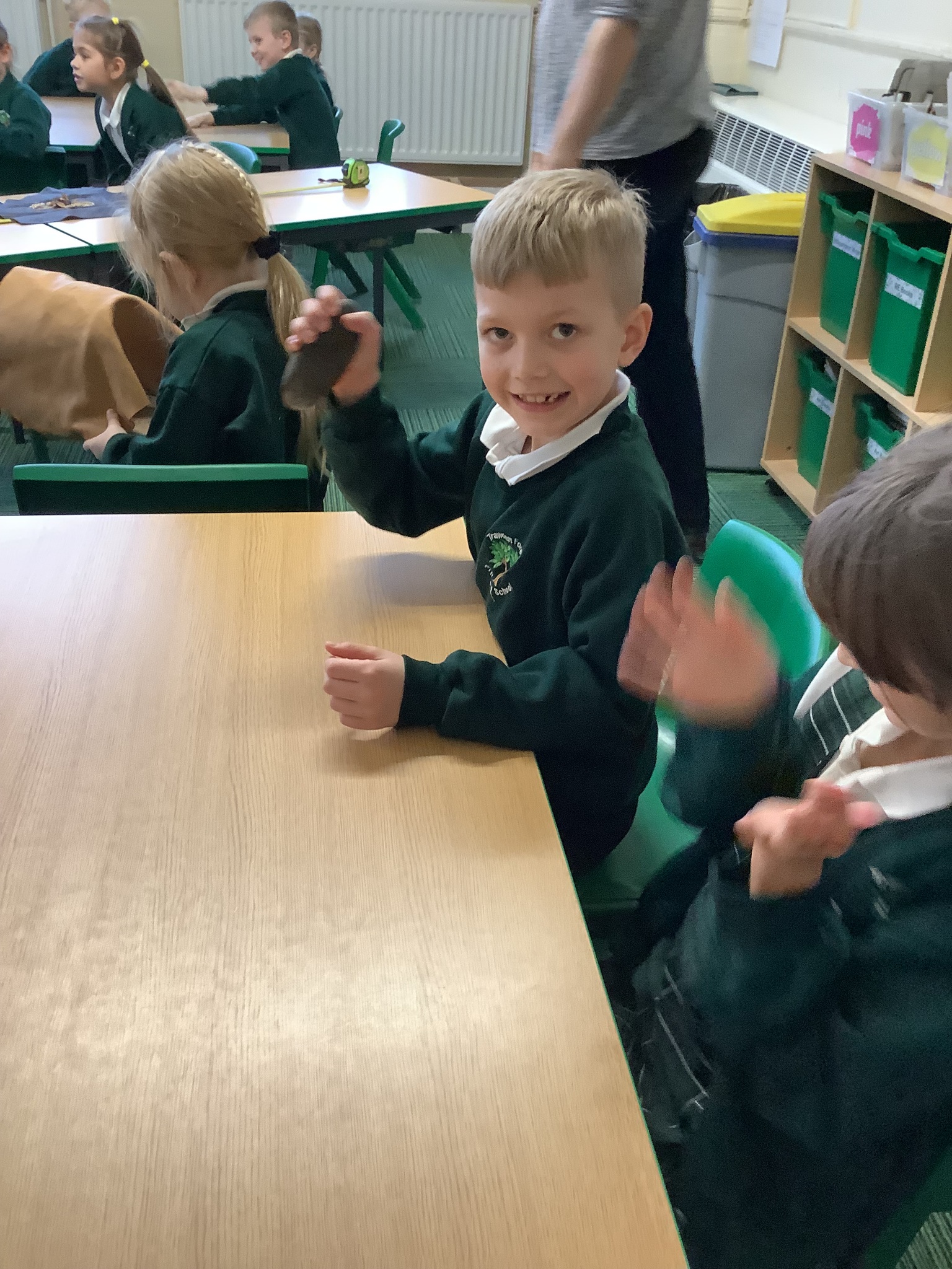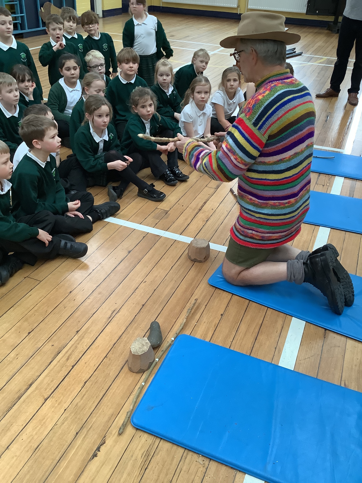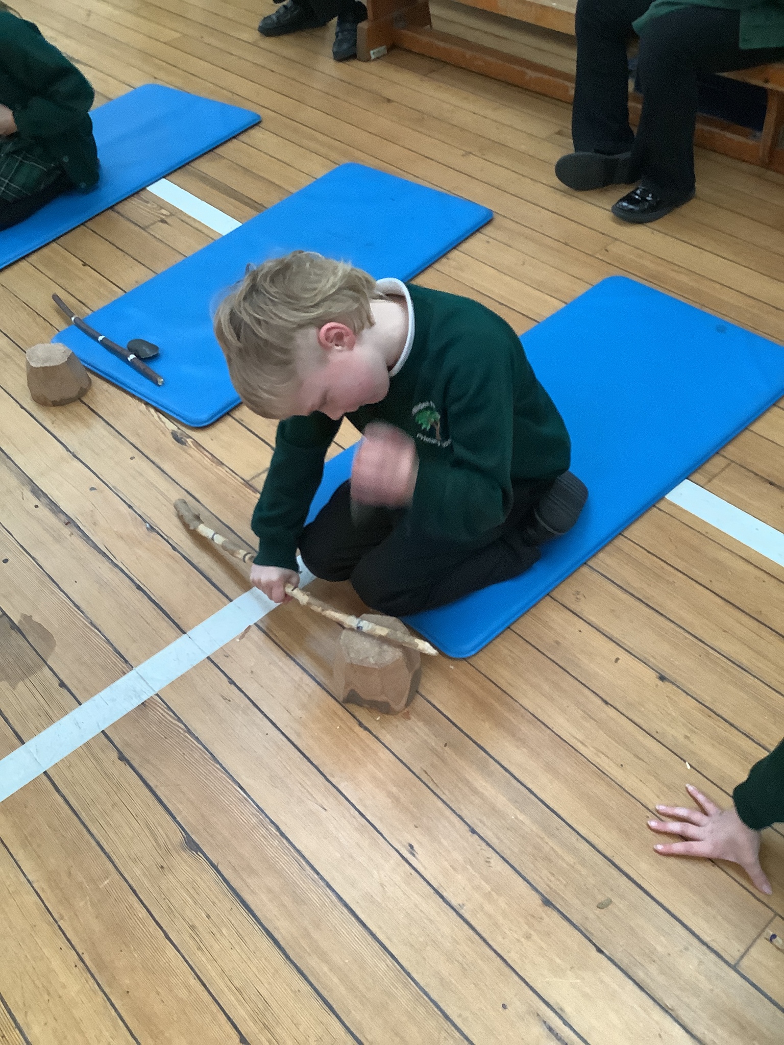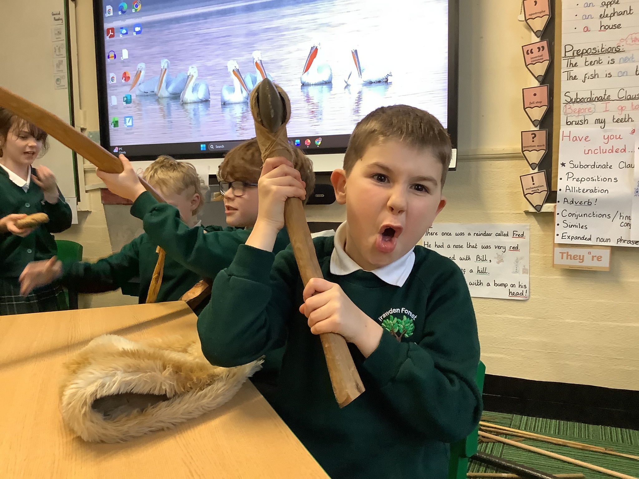 Today, we had a fantastic visit from 'the History Man' who took us on a journey back in time to the Stone Age. The children were fascinated to learn more about what life was like in the Stone Age and build upon the learning they are doing in History.