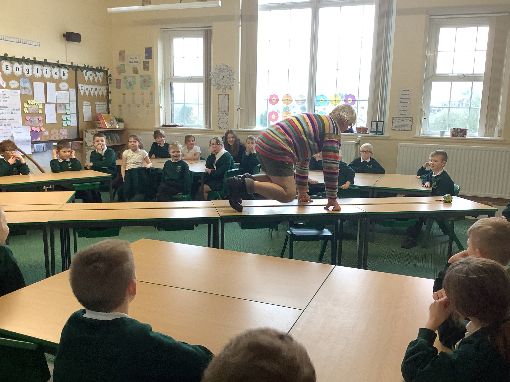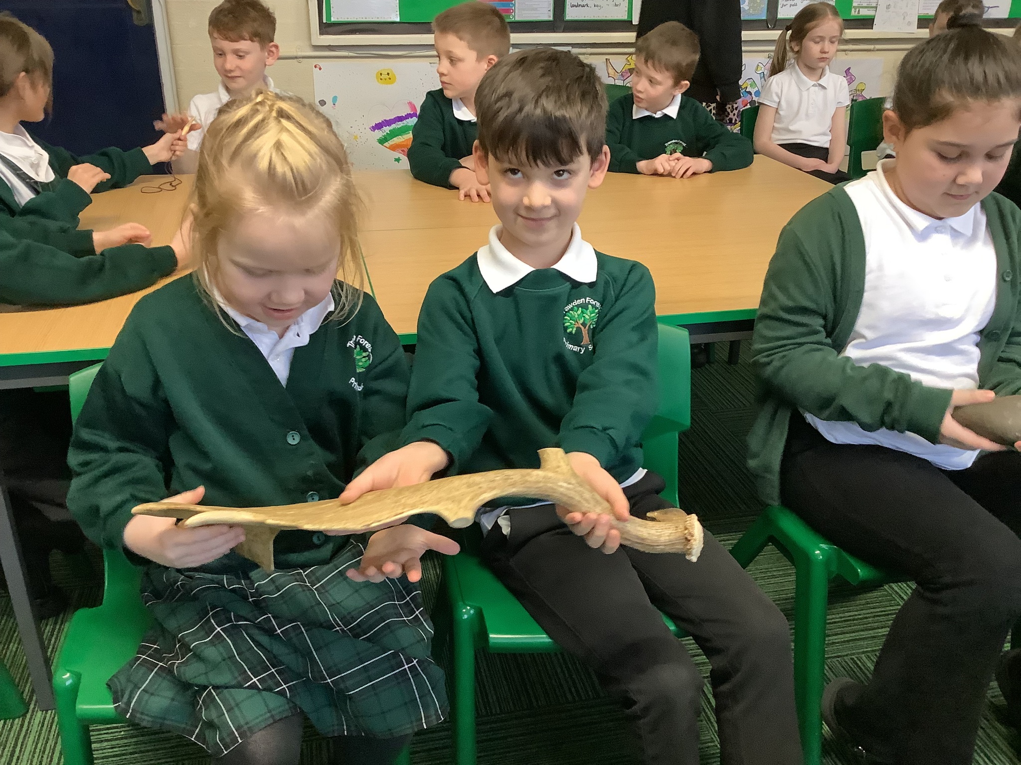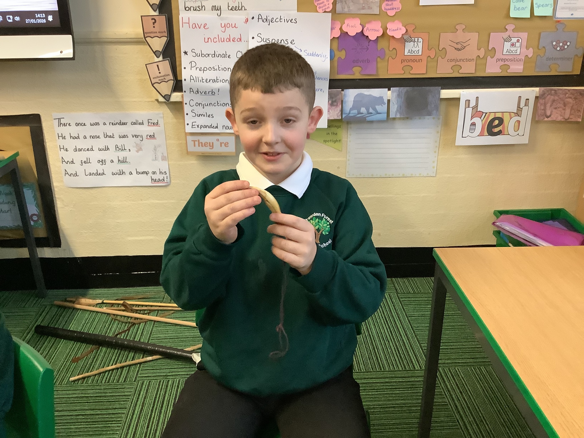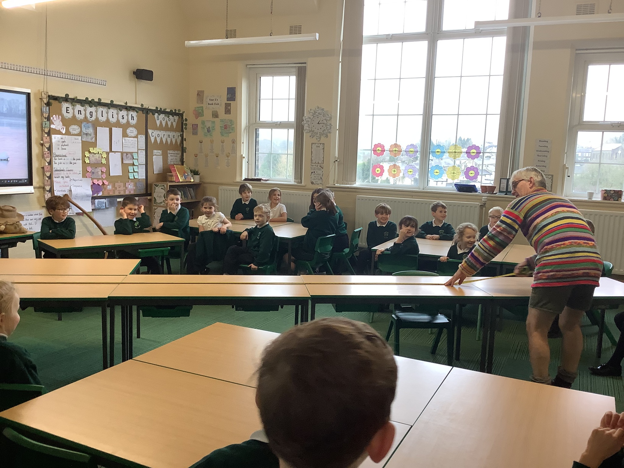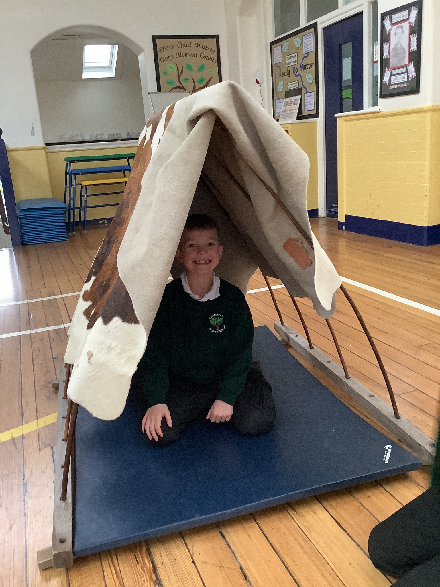 Today, we had a fantastic visit from 'the History Man' who took us on a journey back in time to the Stone Age. The children were fascinated to learn more about what life was like in the Stone Age and build upon the learning they are doing in History.