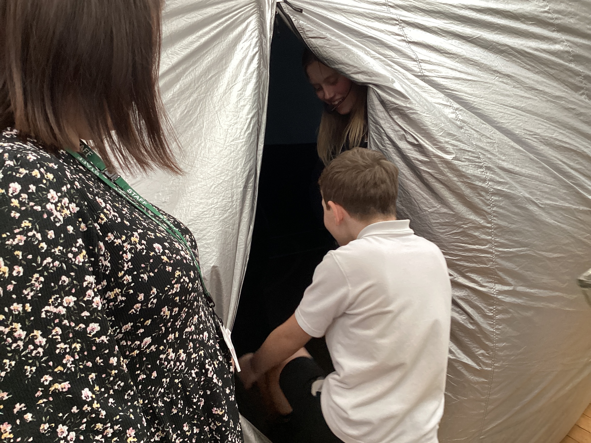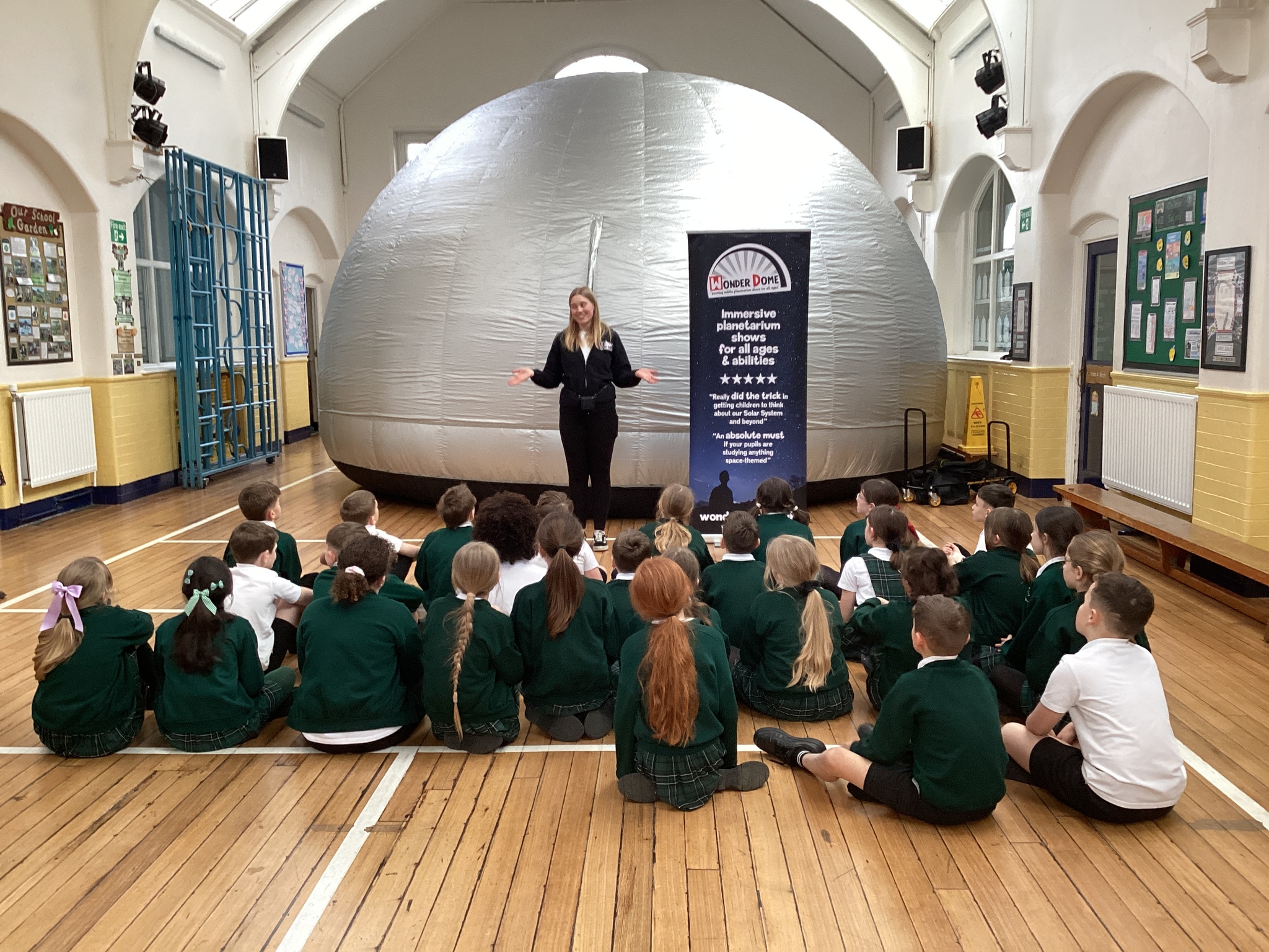 Yesterday, Year 5 were lucky enough to take part in a truly out-of-this-world experience. A portable planetarium landed in the school hall and Year 5 were invited into the WonderDome!