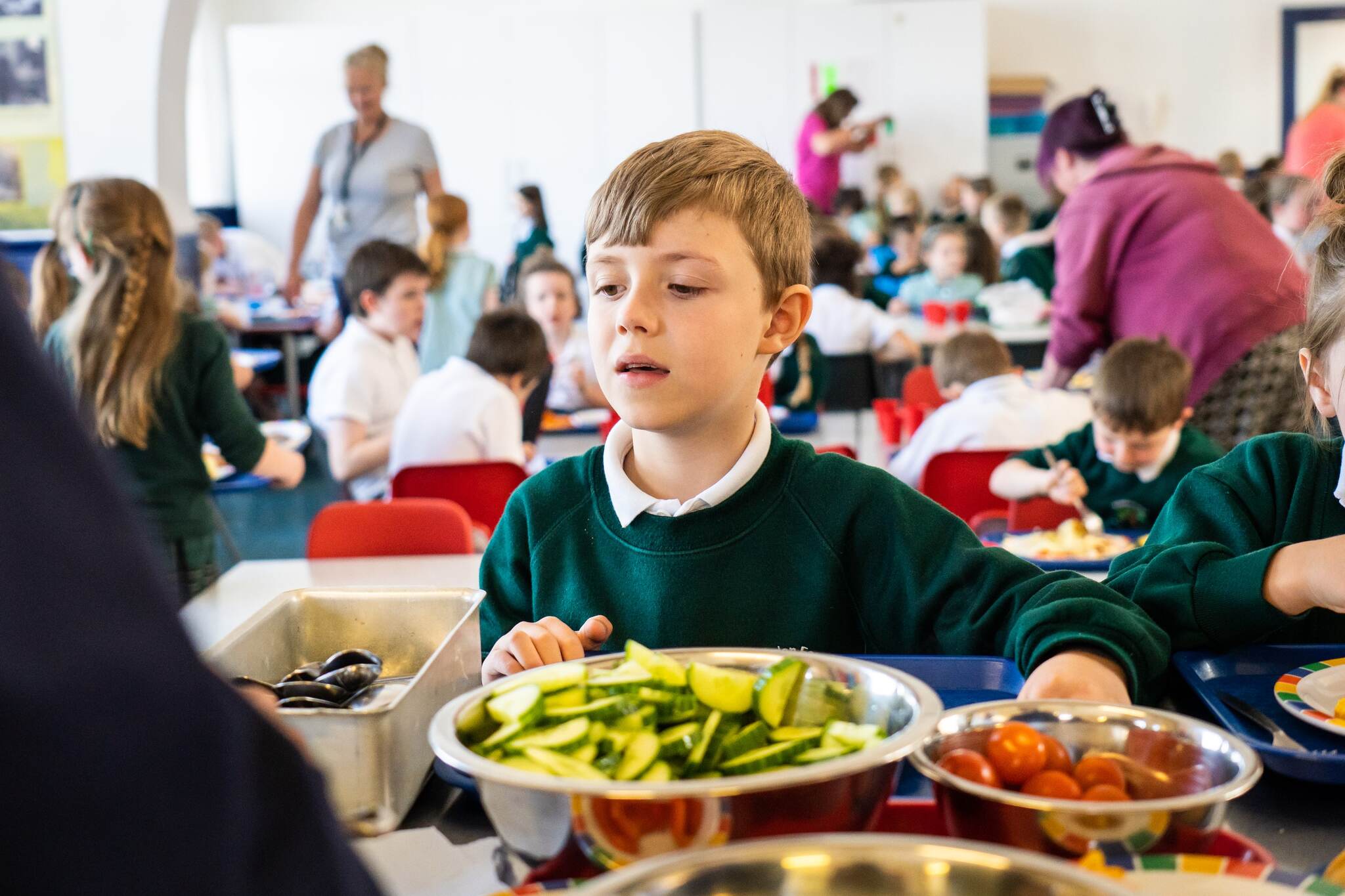 Children in Years R, 1 & 2 receive a universal free school meal funded by the government since September 2014.