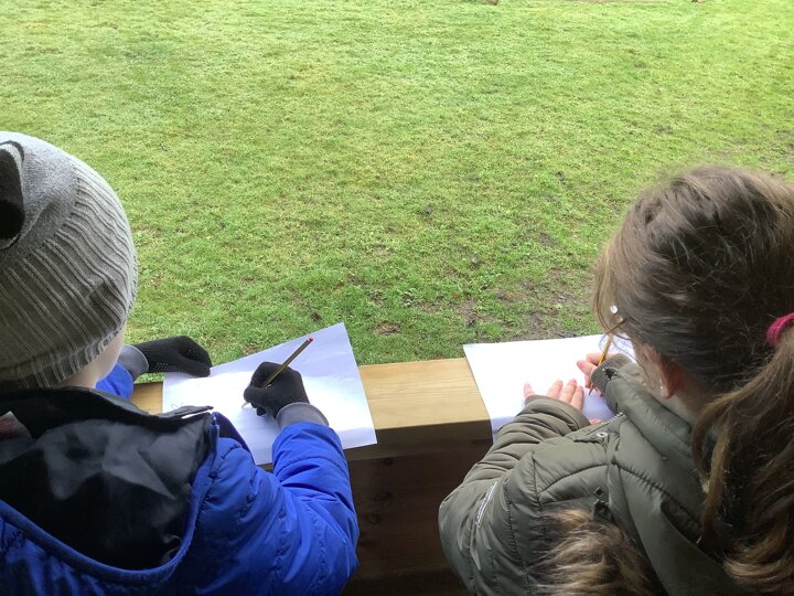 Year 5 Forest School whittling and environmental drawings