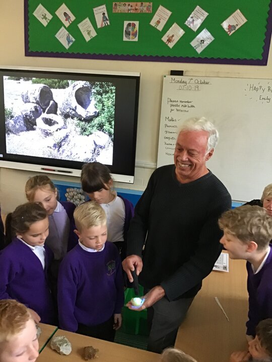 On Monday year three were lucky enough to have a rocks and fossil expert come and speak to us! He answered lots of our questions and even brought some glow in the dark rocks to show us! We learnt about how crystals are formed and how big they can be and the children loved discovering how fossils are formed. He showed us lots of pictures of where he has been on his adventures to find the rocks and fossils and we now have some budding paleontologist in year three.