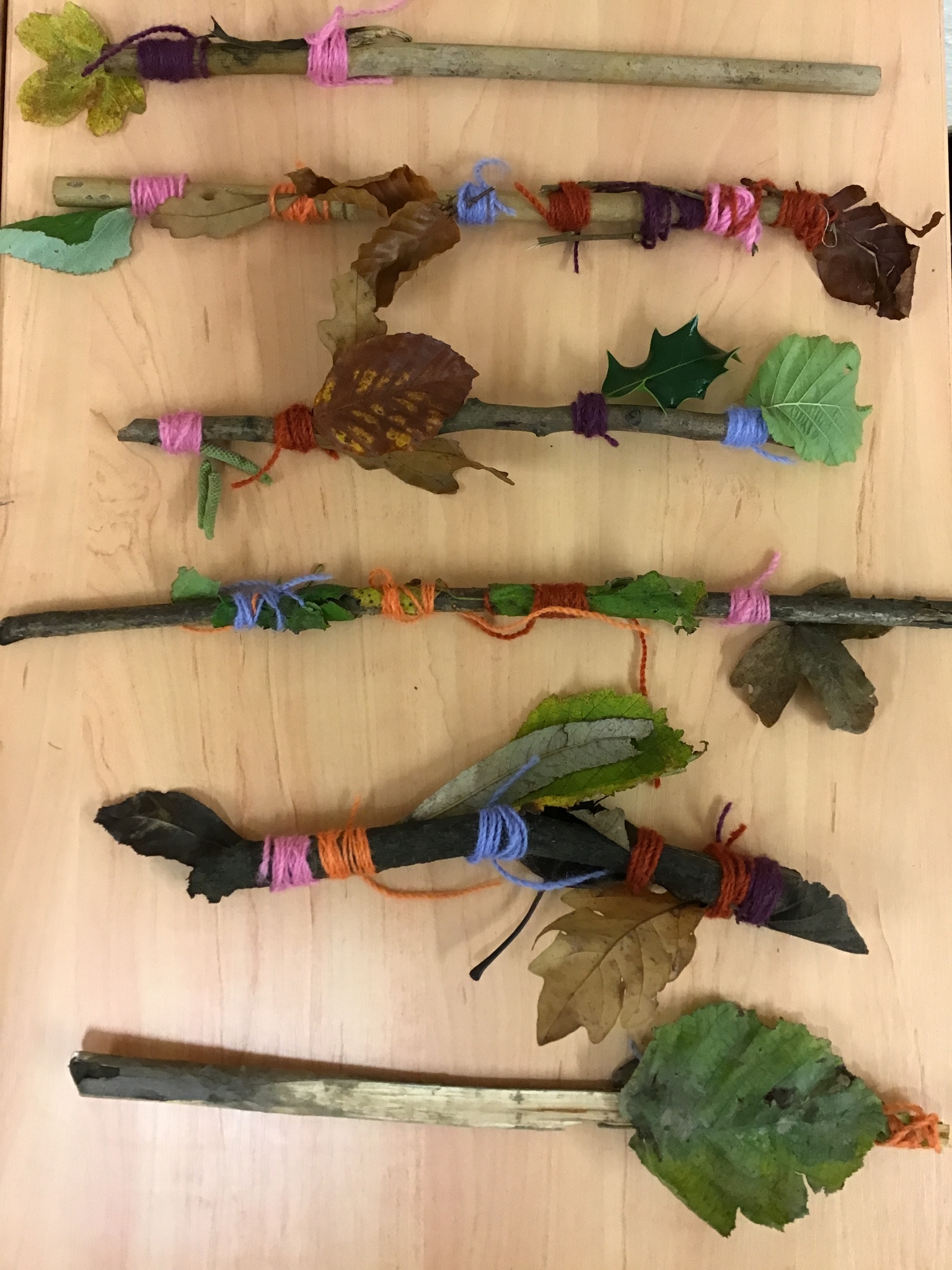 Year 6 enjoyed creating story sticks based on the WW2 story Goodnight Mr Tom. The children used a variety of natural materials to represent parts of the story.