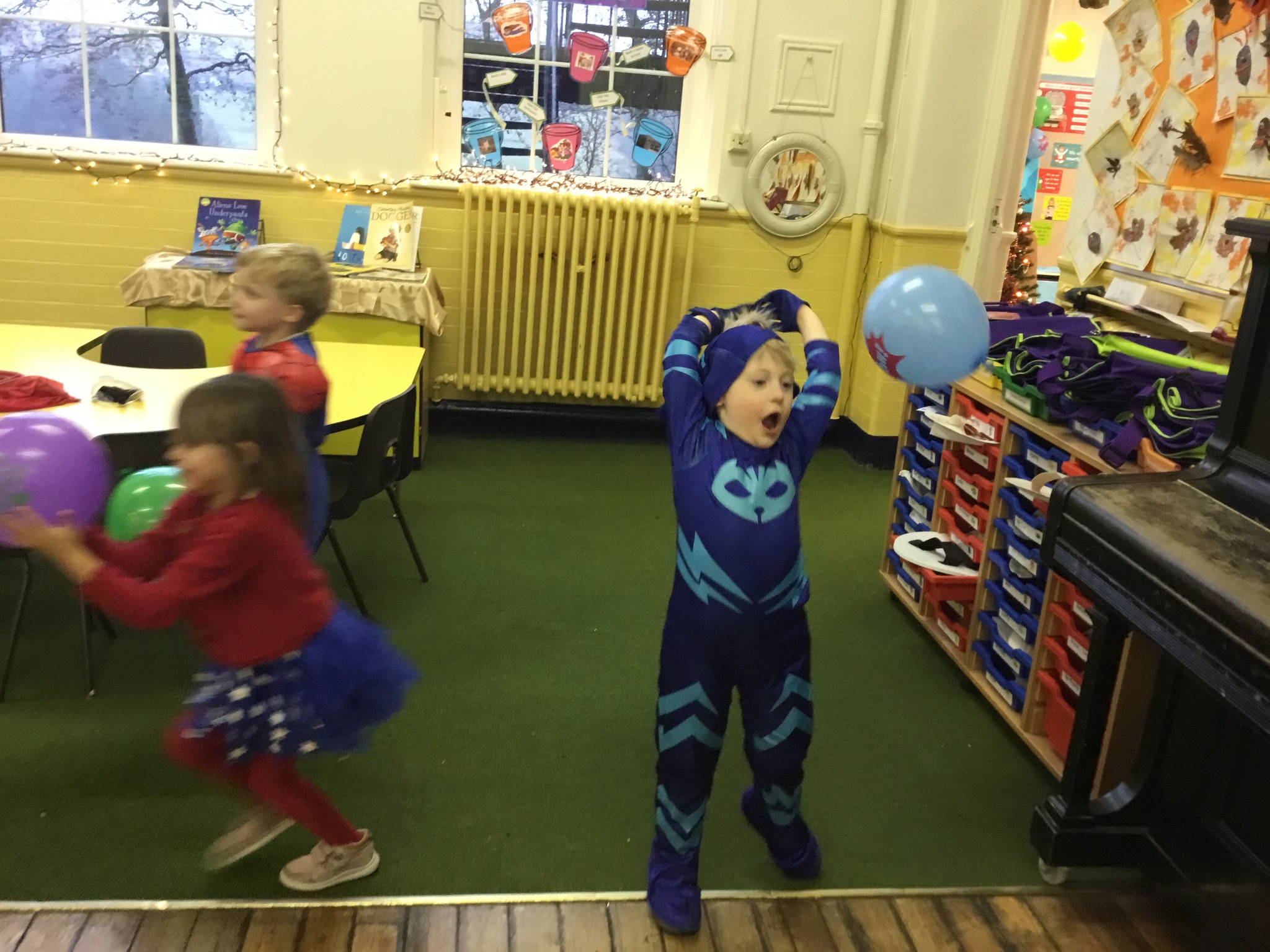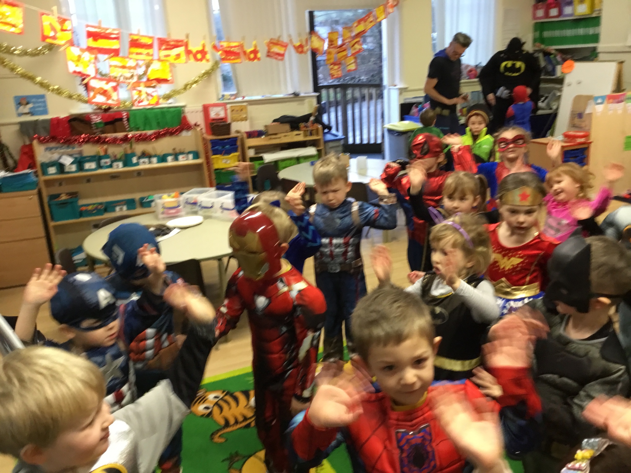 In the afternoon we had a superhero party and played super pass the parcel, superhero statues and superhero corners. We then tucked into our party food which we had made using superhero powers such as melting and freezing.