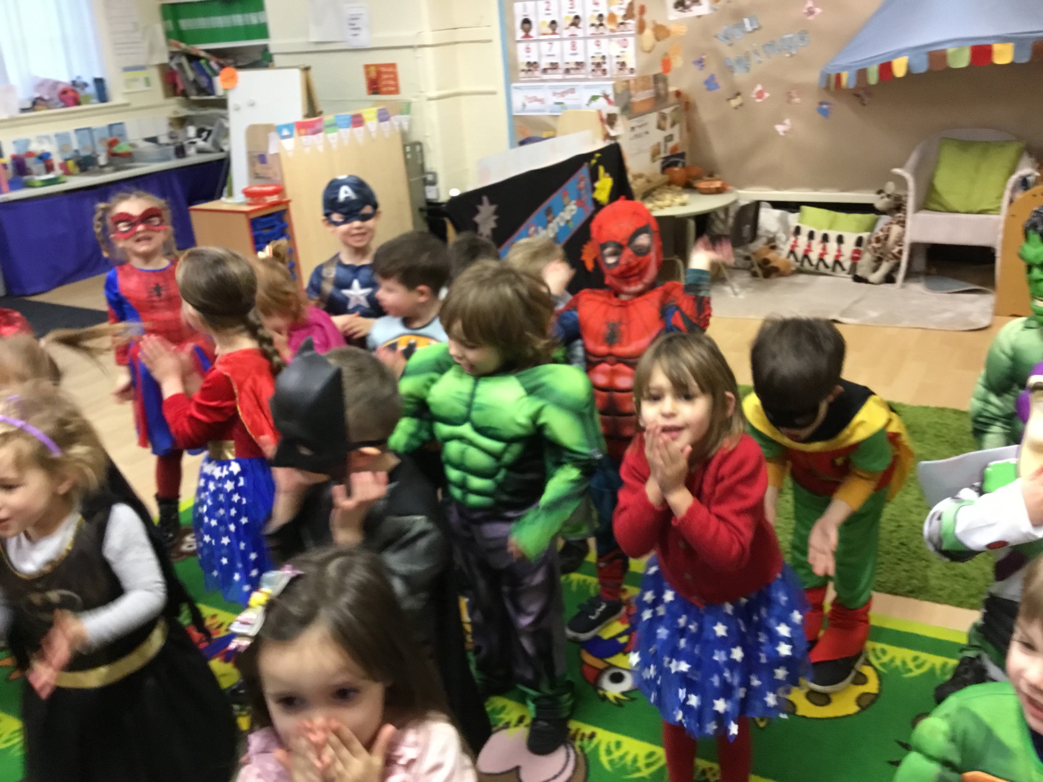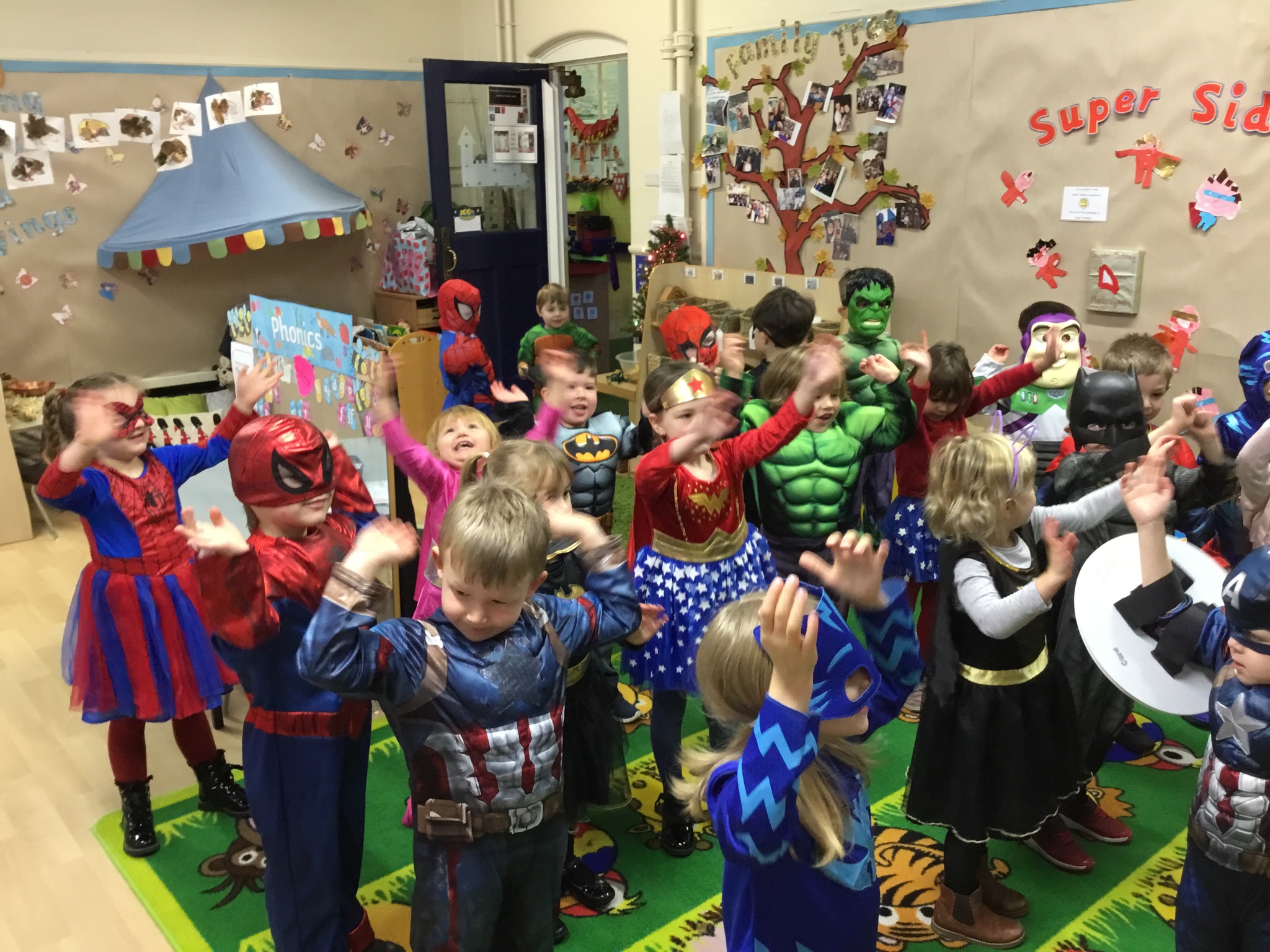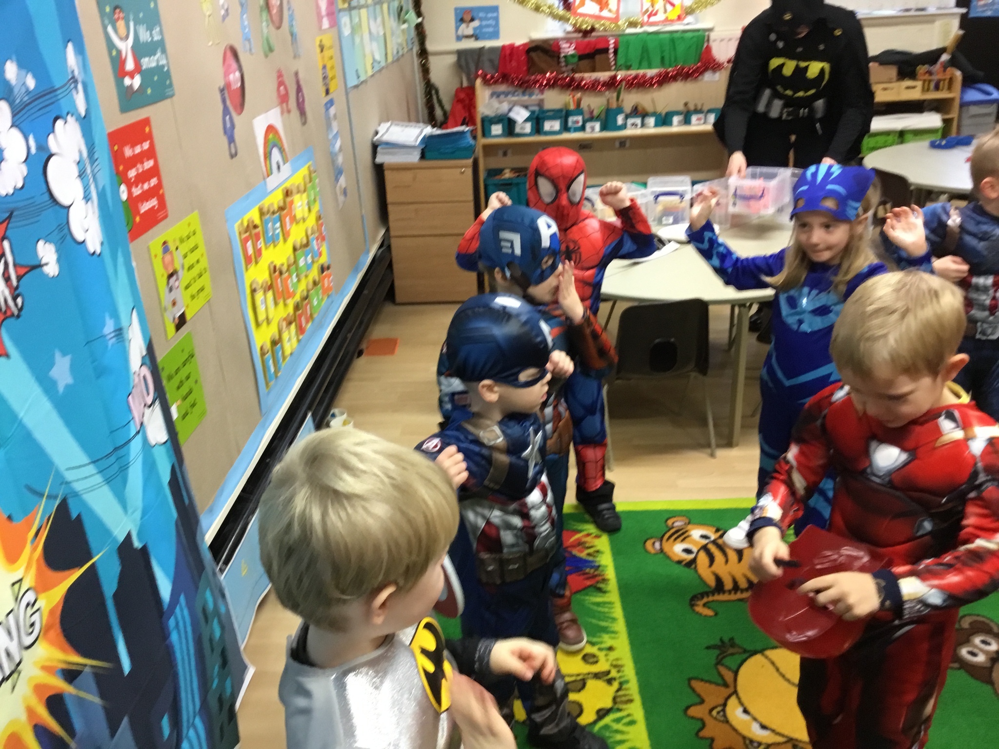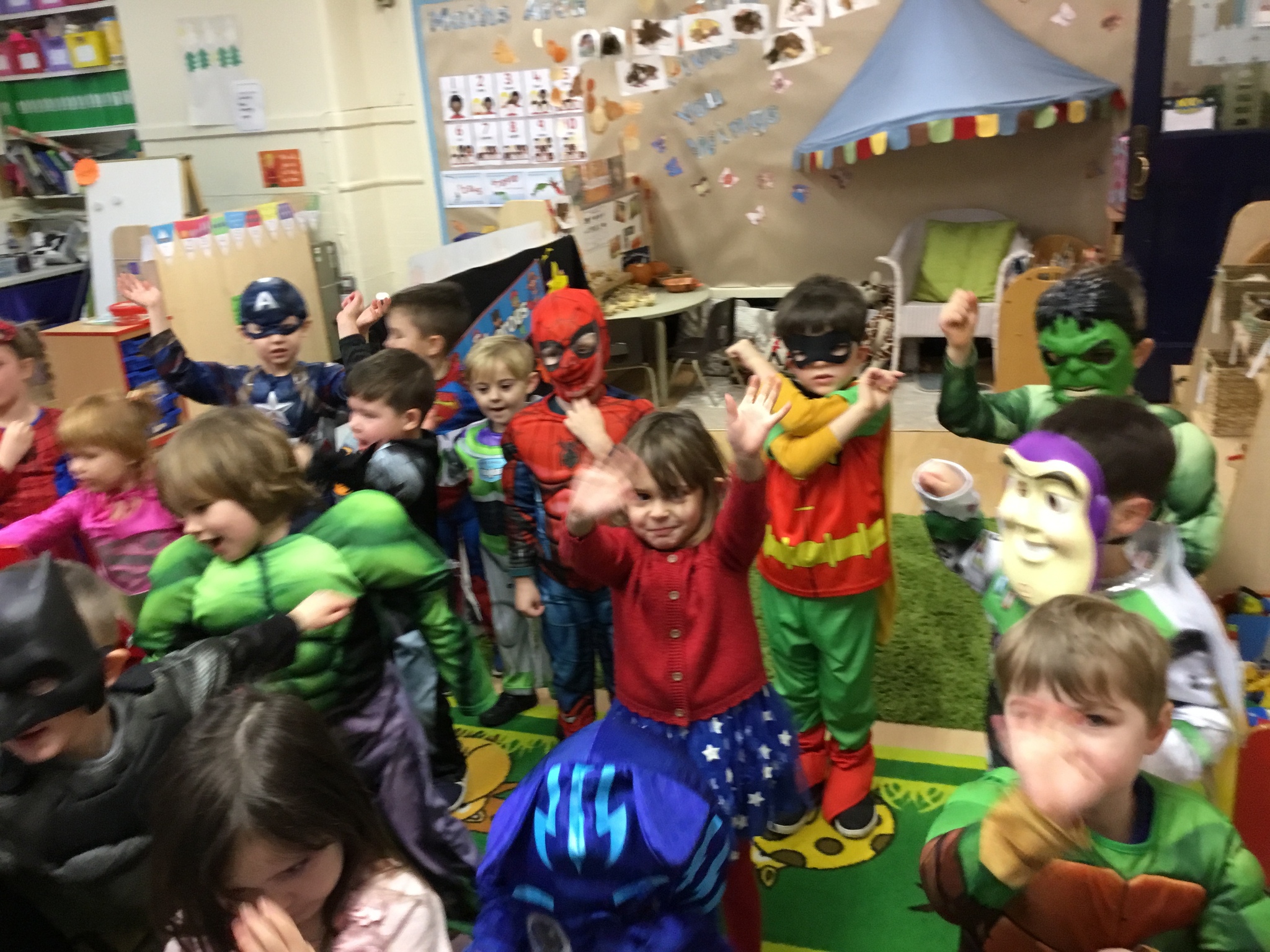 Reception had an out-of-this-world Superhero day today to celebrate their topic. Everyone came dressed as their favourite superhero. We made superhero shields and lolly stick heroes and completed a tricky obstacle course as part of our superhero training. We also learned a Superman dance with lots of actions.