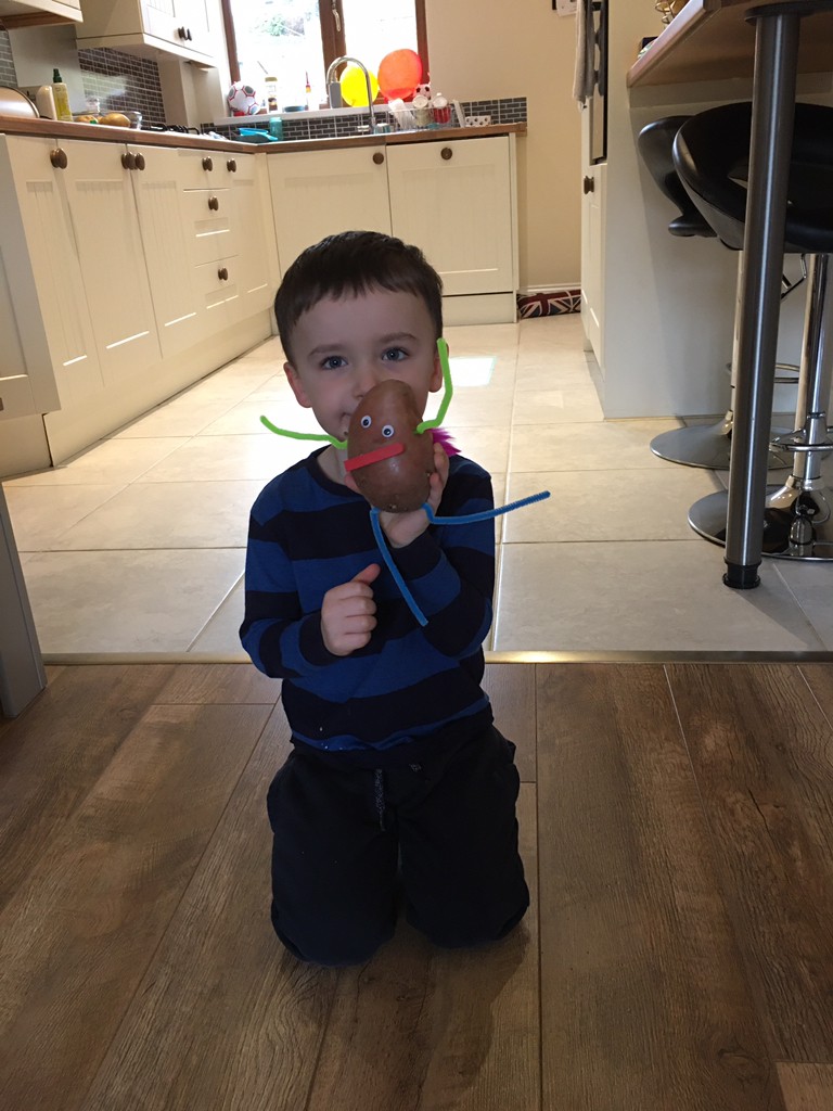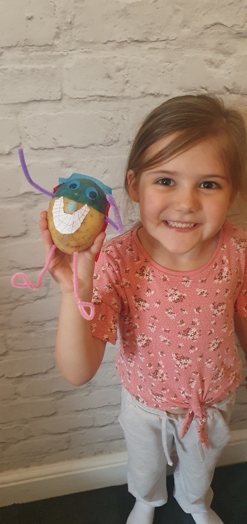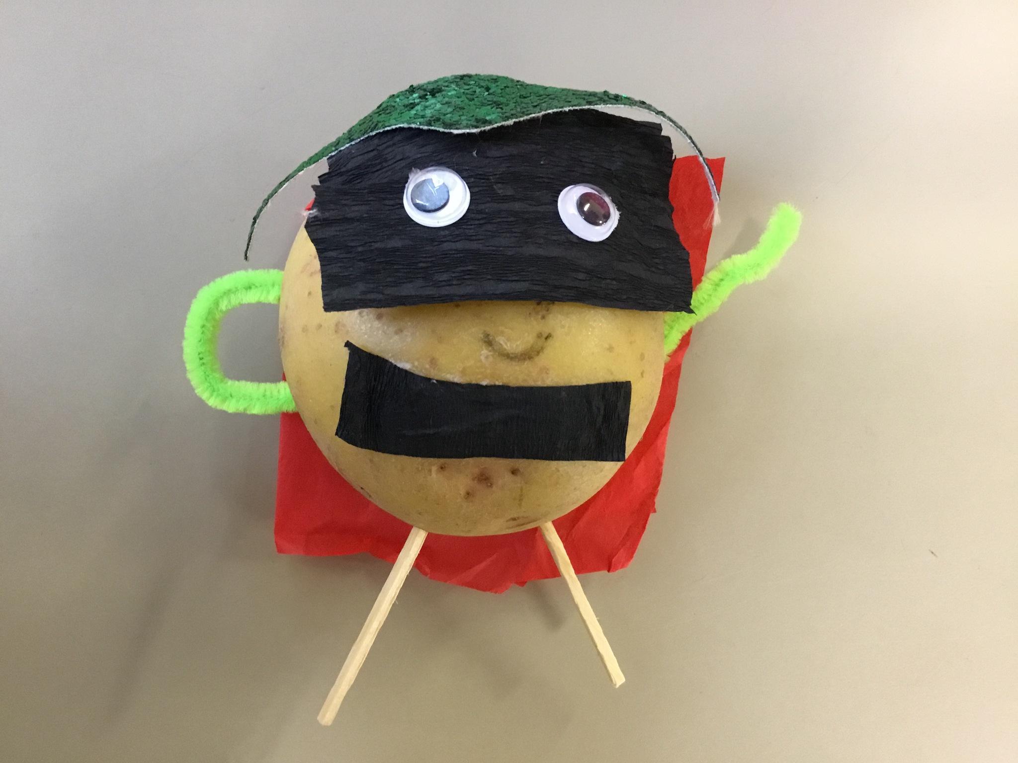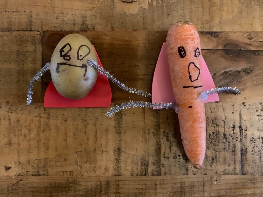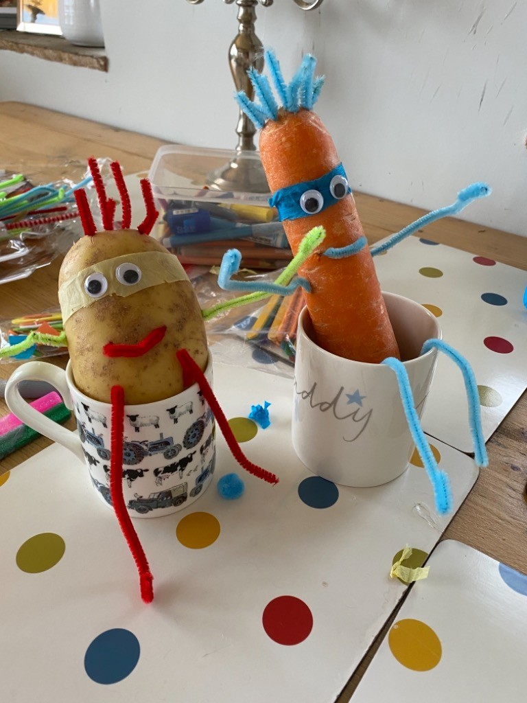 This week we have been reading Supertato about some very special vegetables and one very naughty pea. We enjoyed the story so much we made our own super veg. I think they are SUPER!