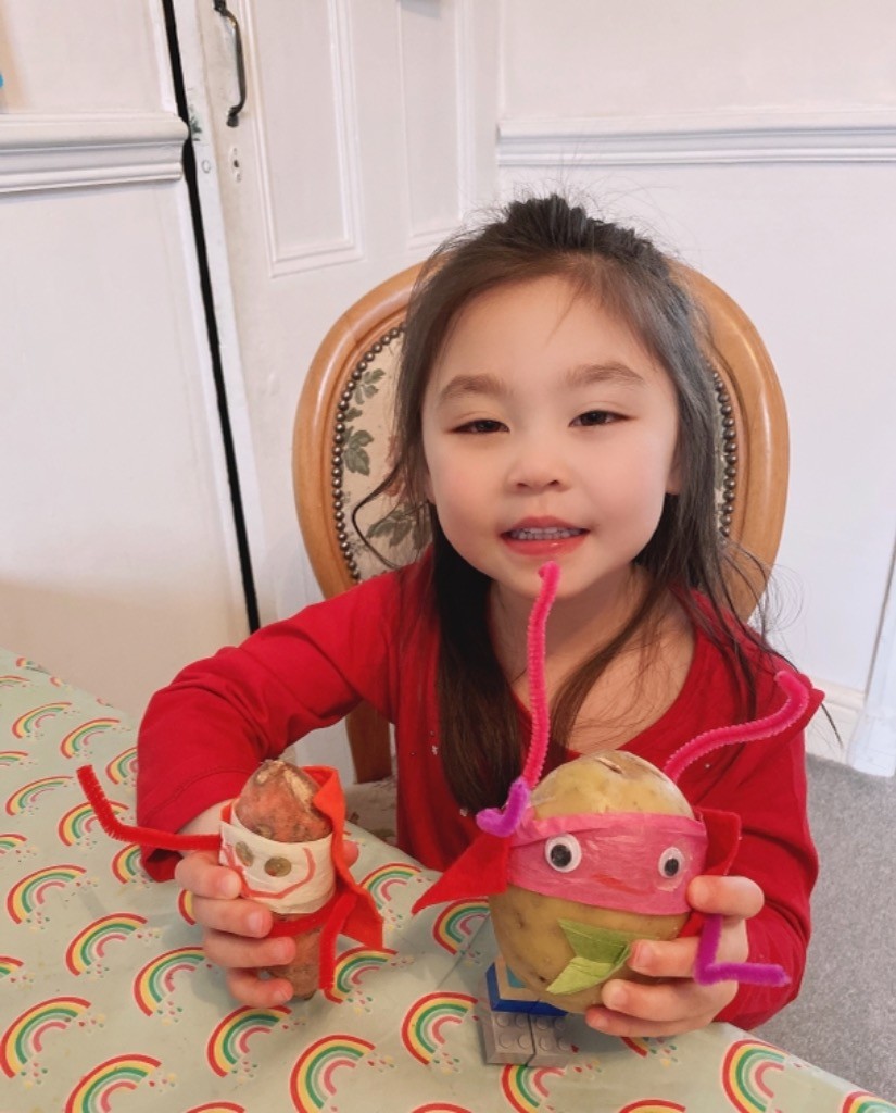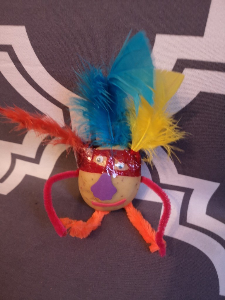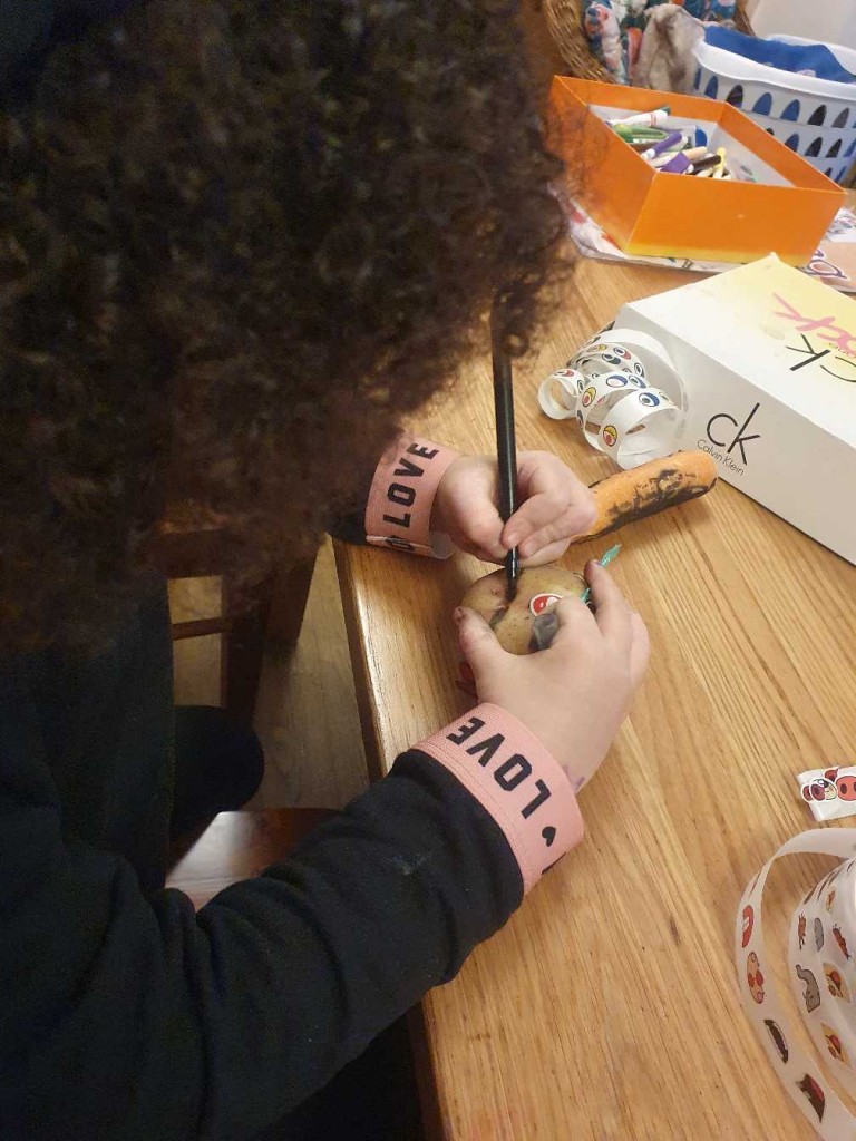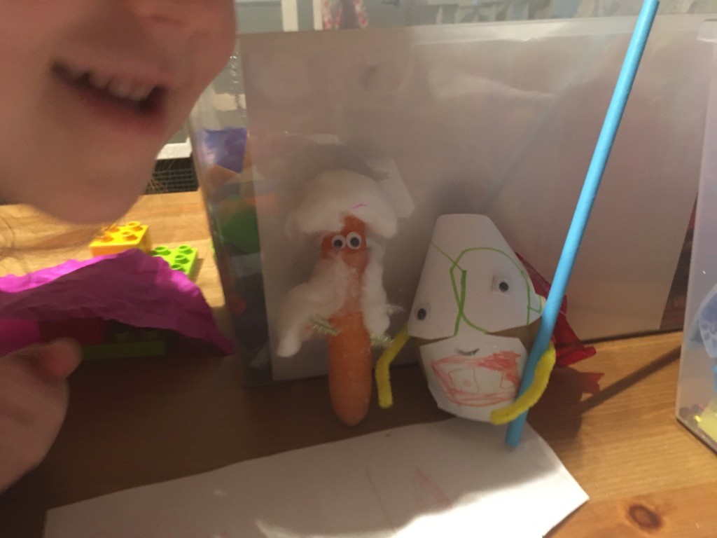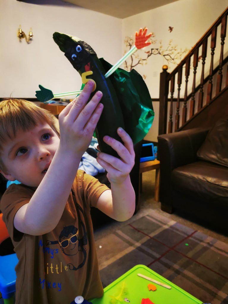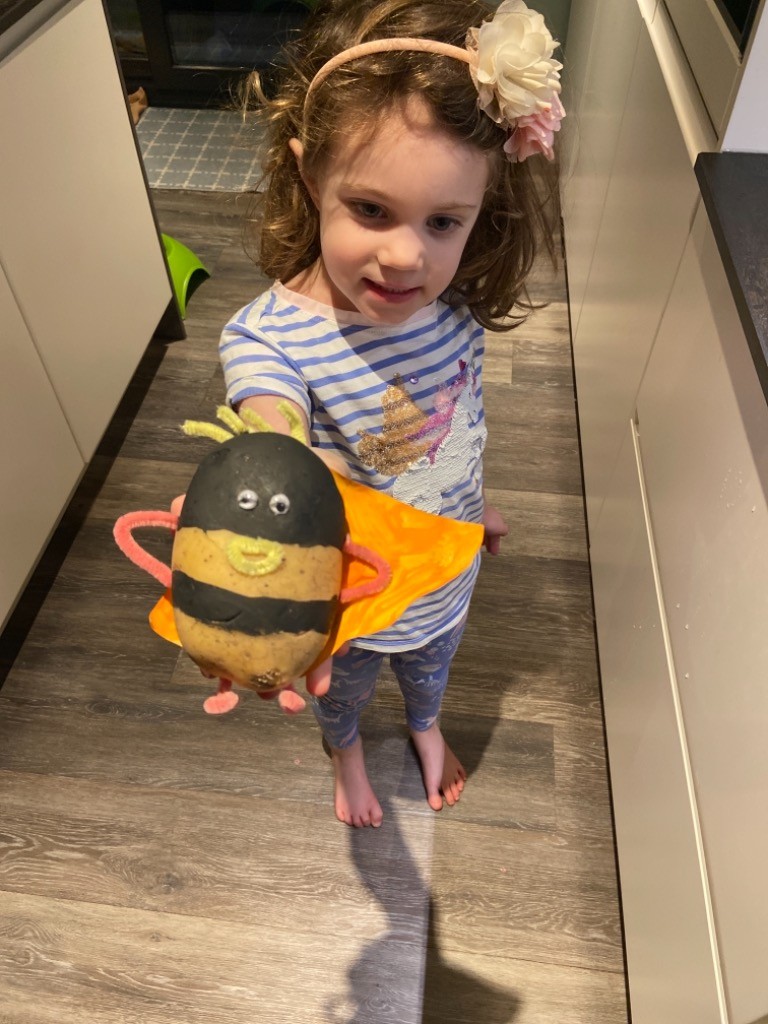 This week we have been reading Supertato about some very special vegetables and one very naughty pea. We enjoyed the story so much we made our own super veg. I think they are SUPER!