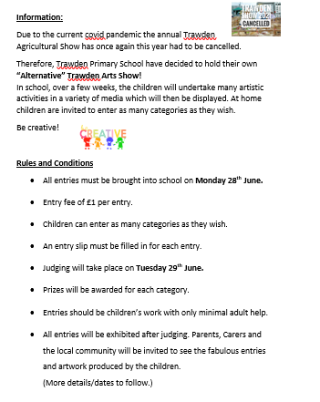 Unfortunately, we will not be able to invite parents in to view the entries but will post pictures on the website instead.