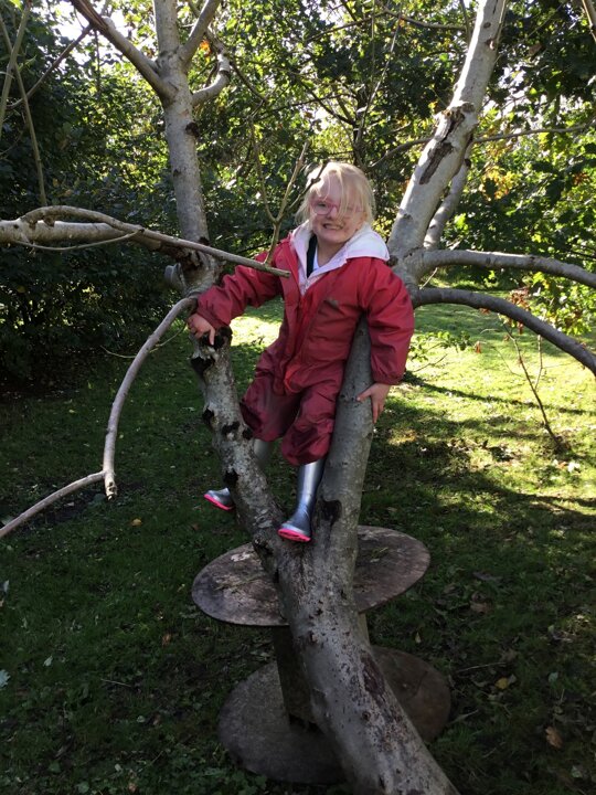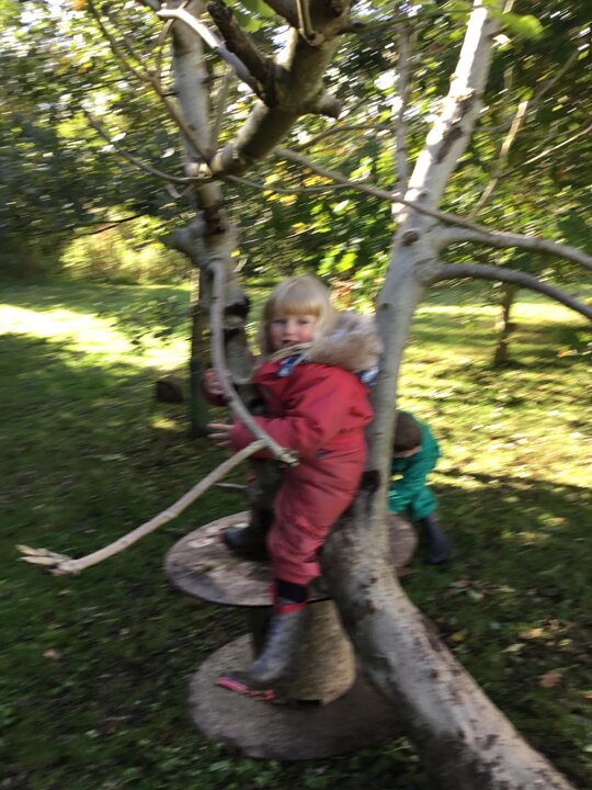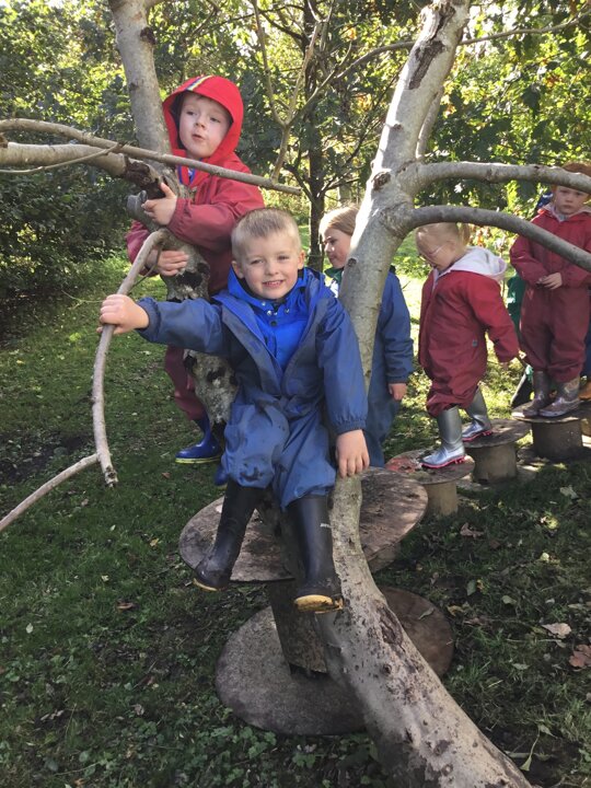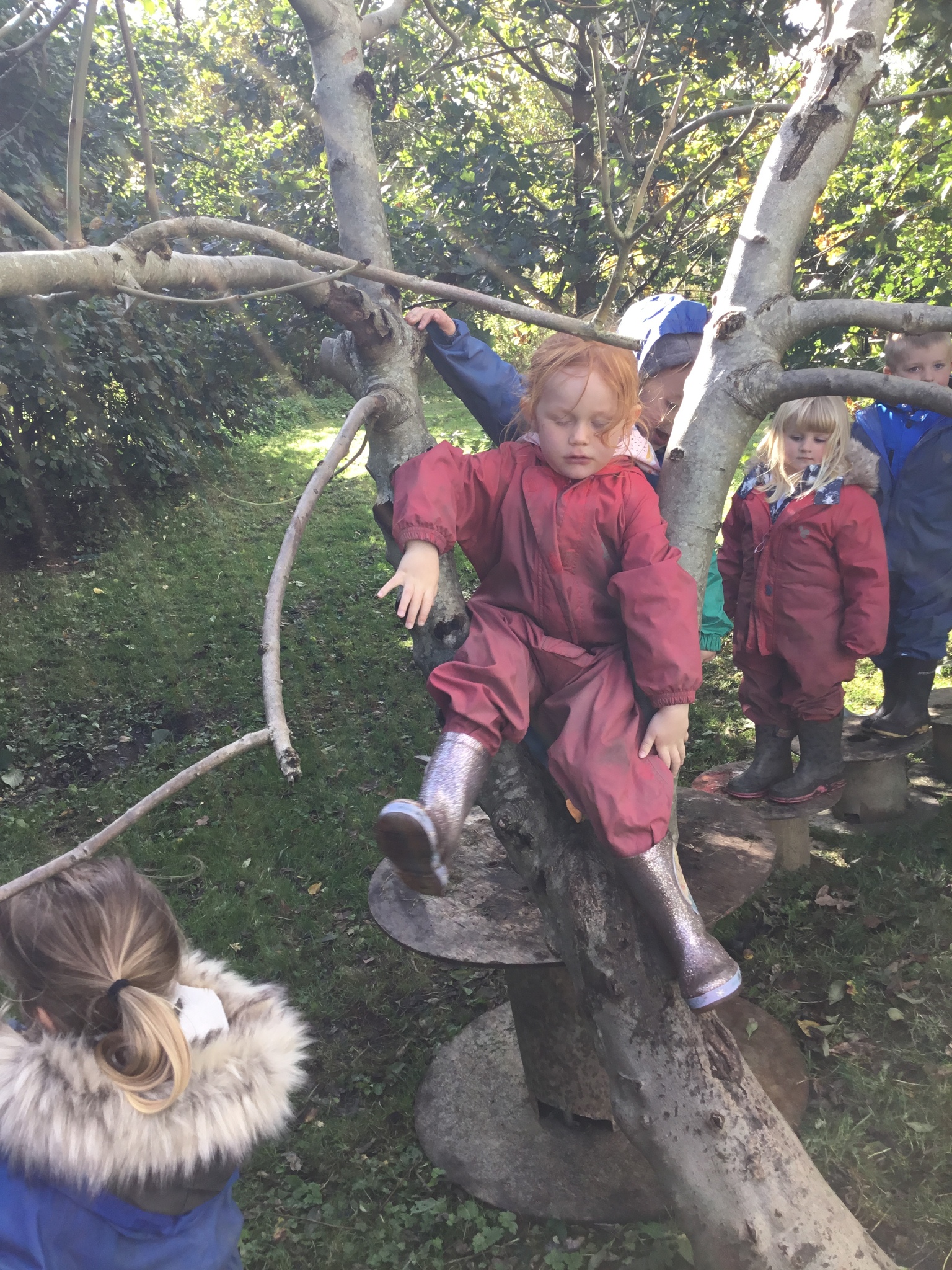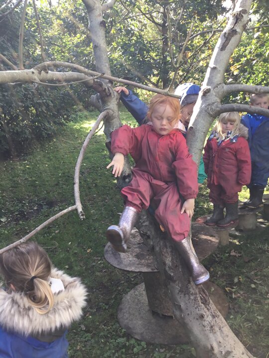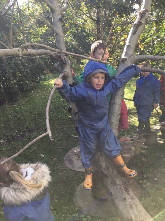 We looked at the dragon and some boys decided it was hungry so made lots of food in the mud kitchen. Other children created a slide in one of the trees and we all had lots of fun until...