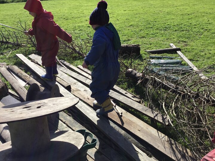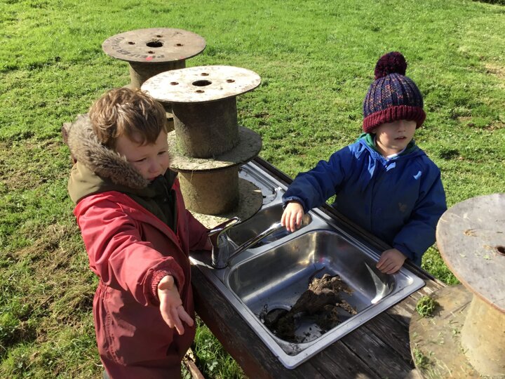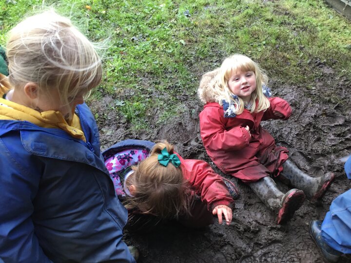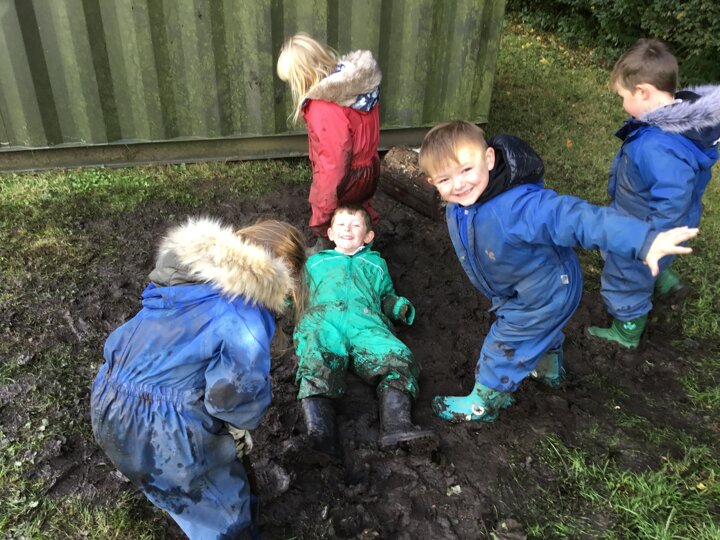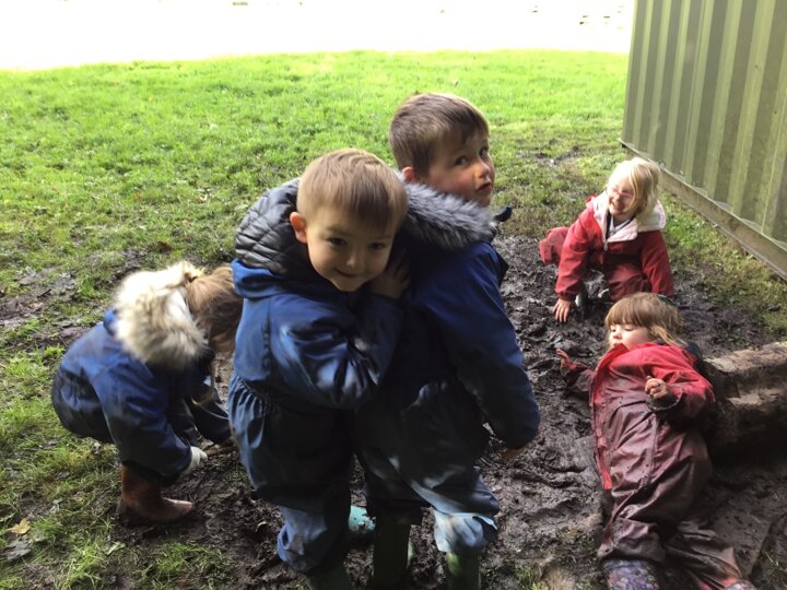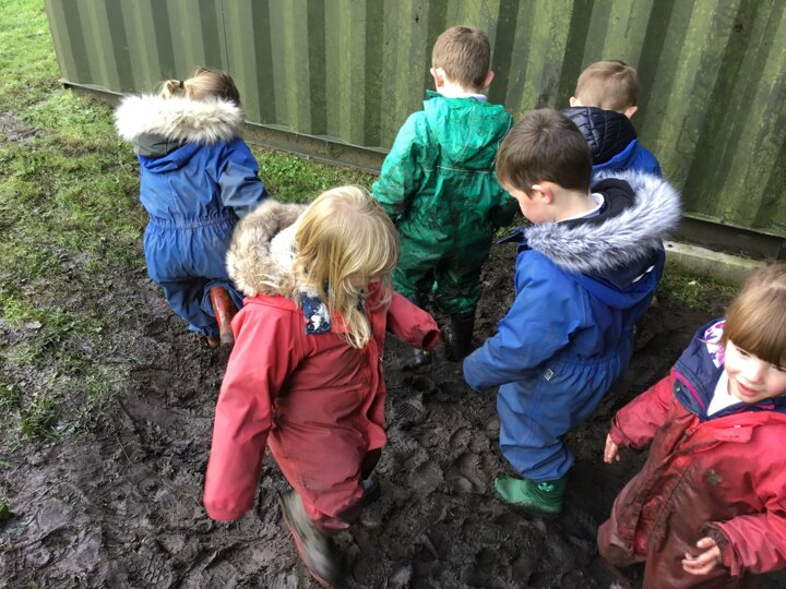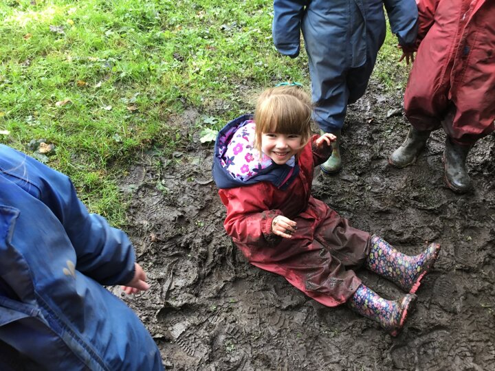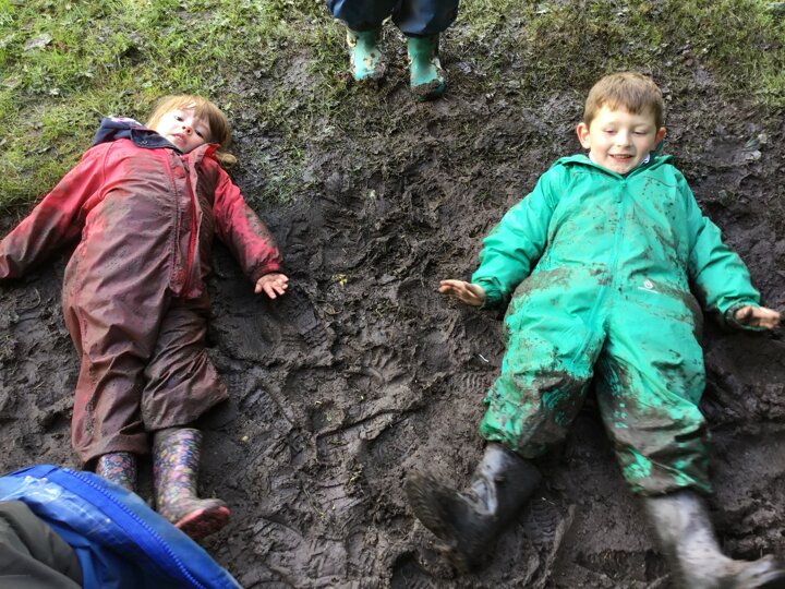 We looked at the dragon and some boys decided it was hungry so made lots of food in the mud kitchen. Other children created a slide in one of the trees and we all had lots of fun until...