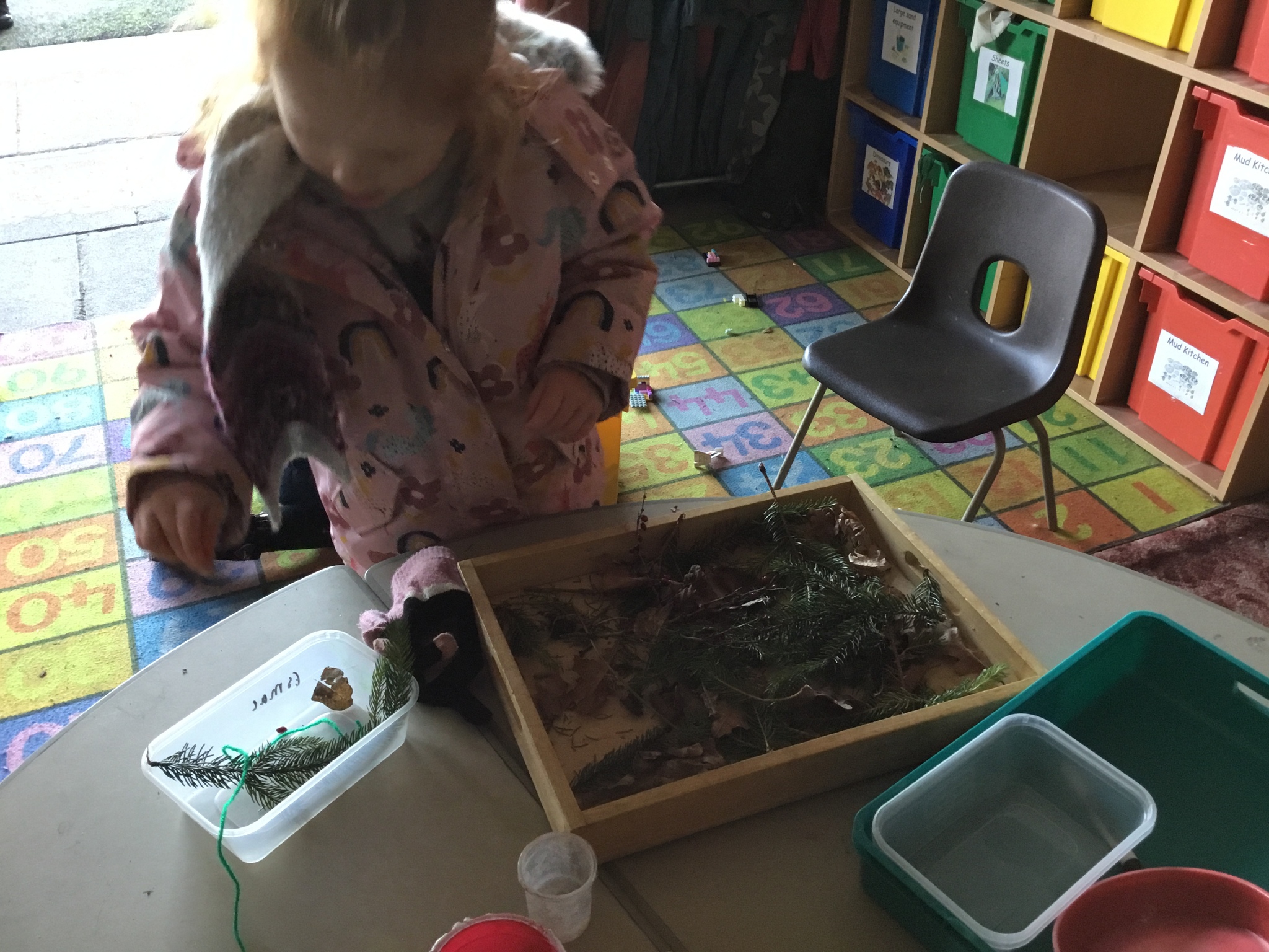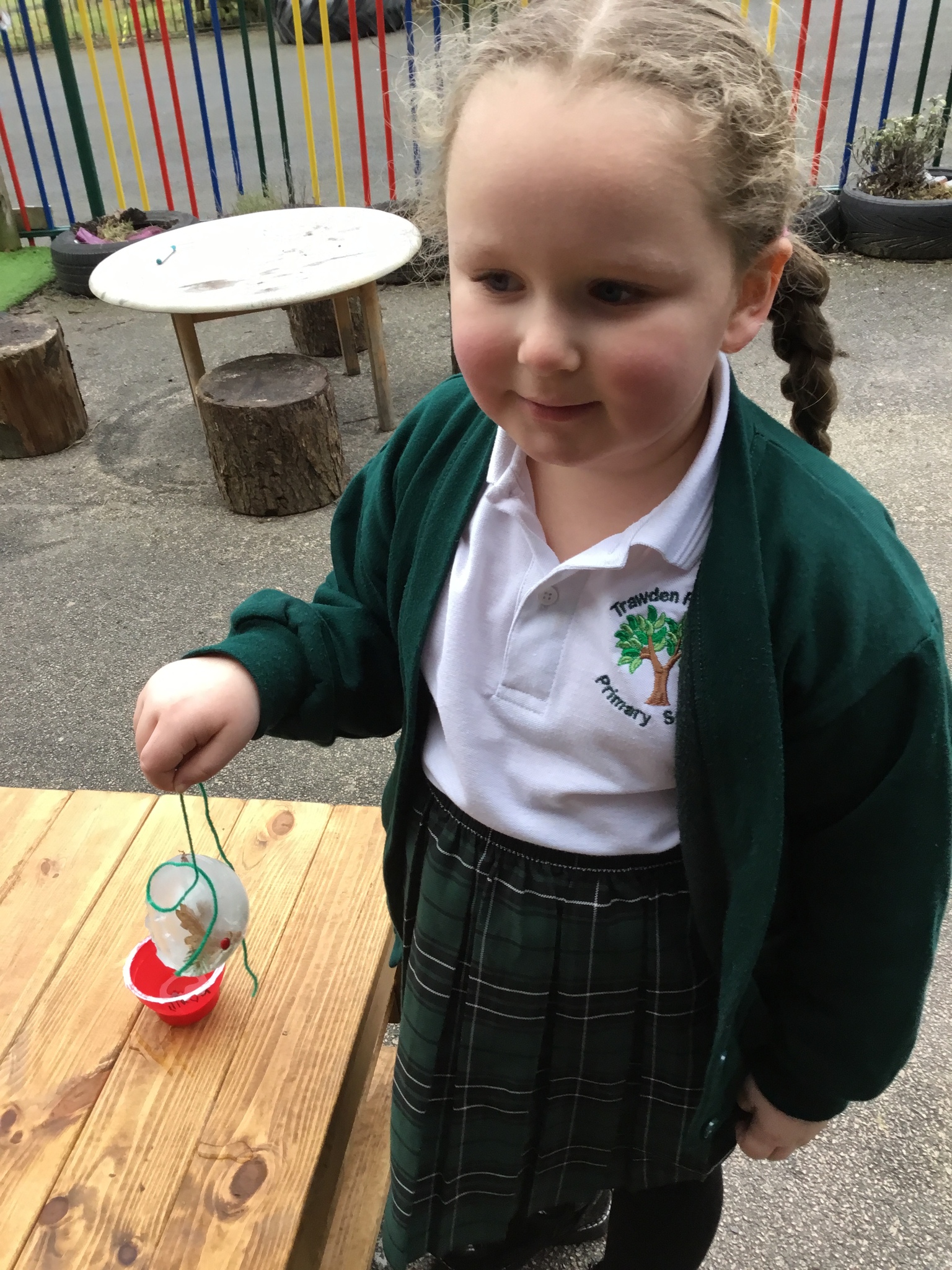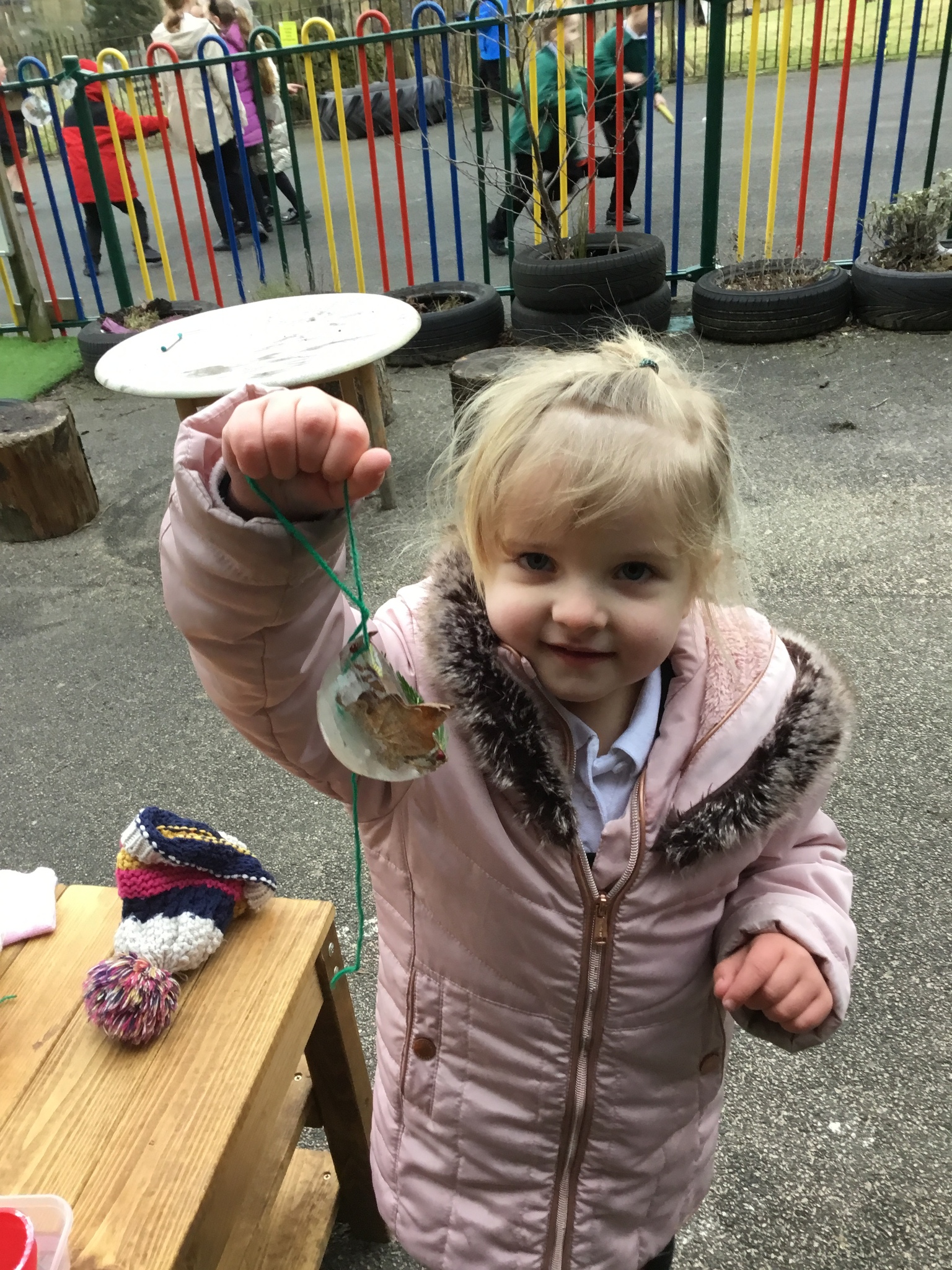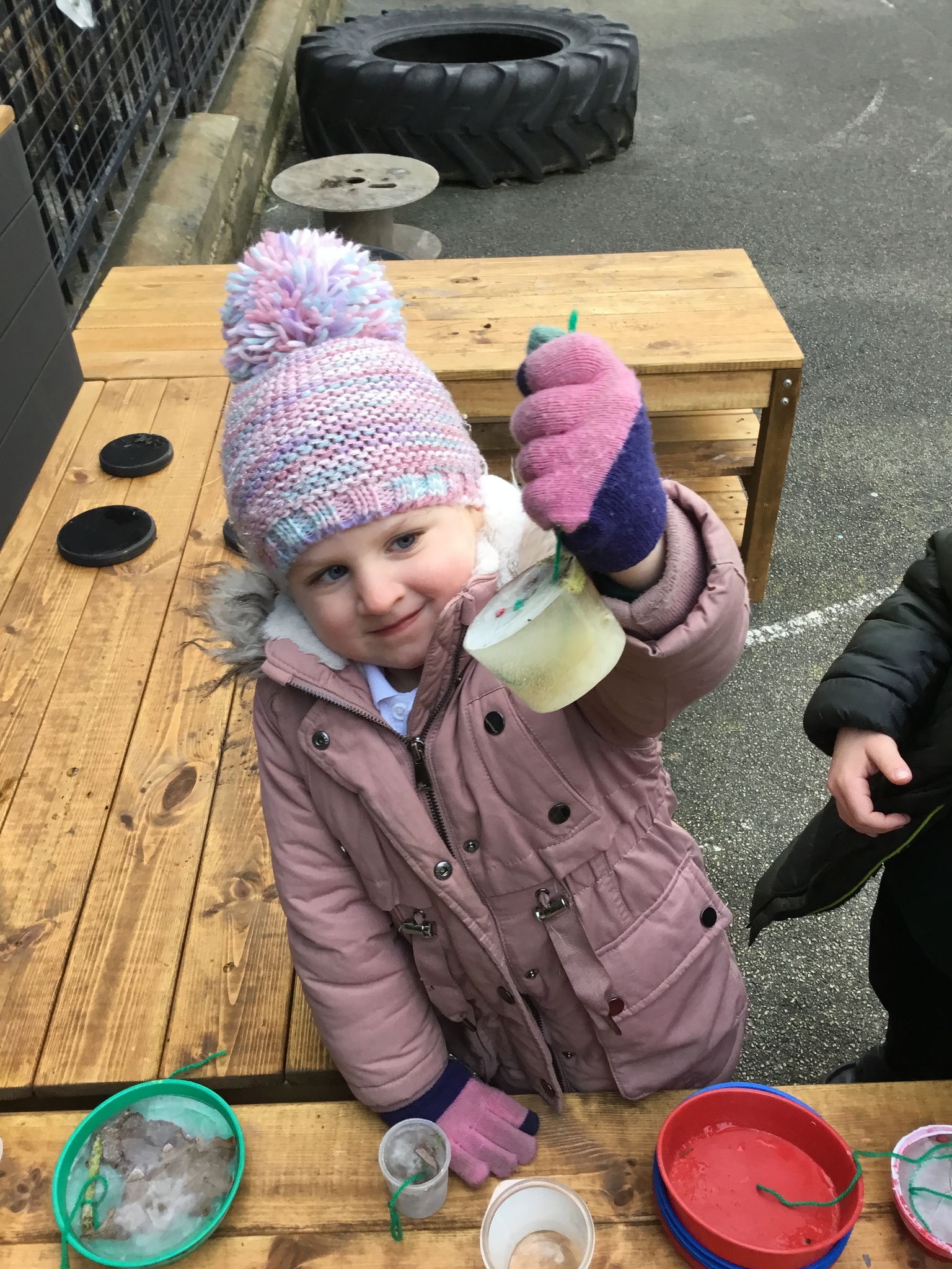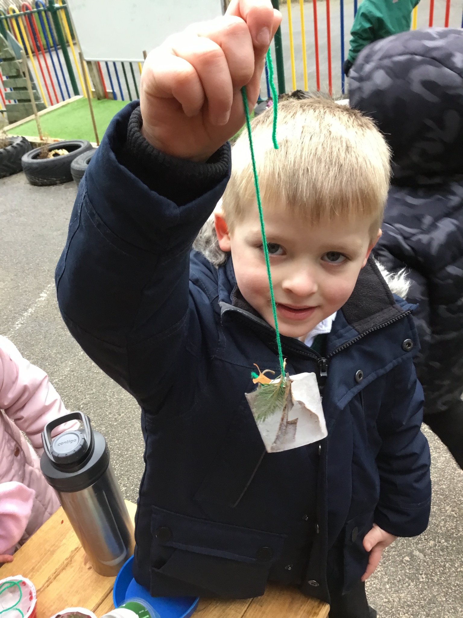 To link Forest School with our ice topic we made some pieces of ice art. We collected interesting natural items from the forest then added water and froze them.
