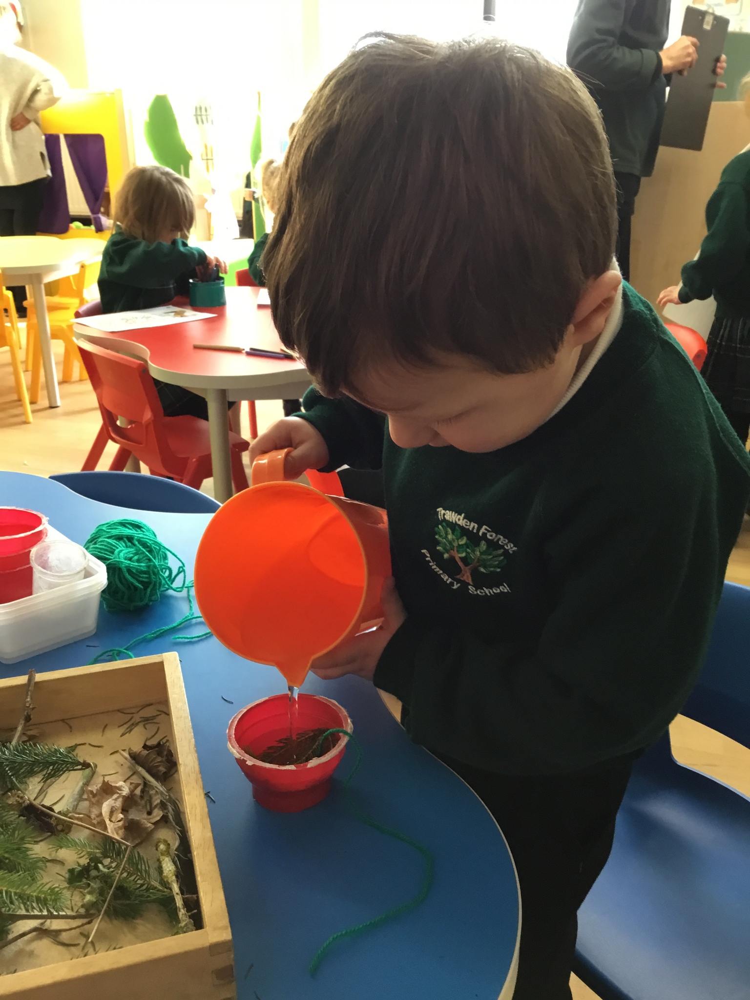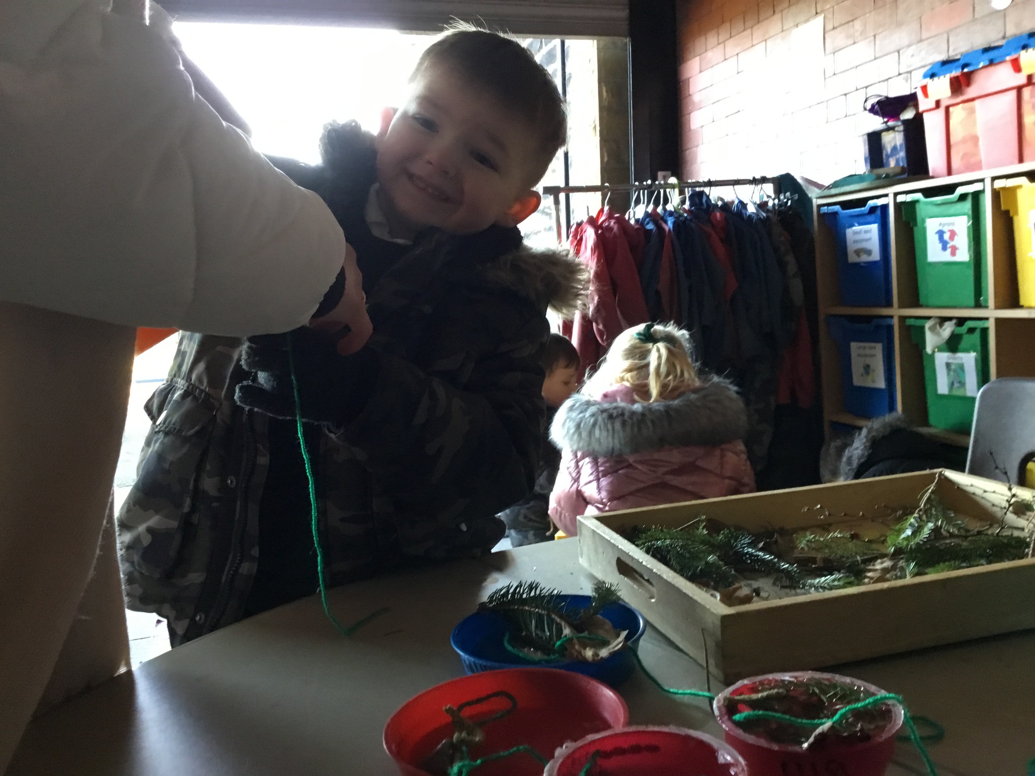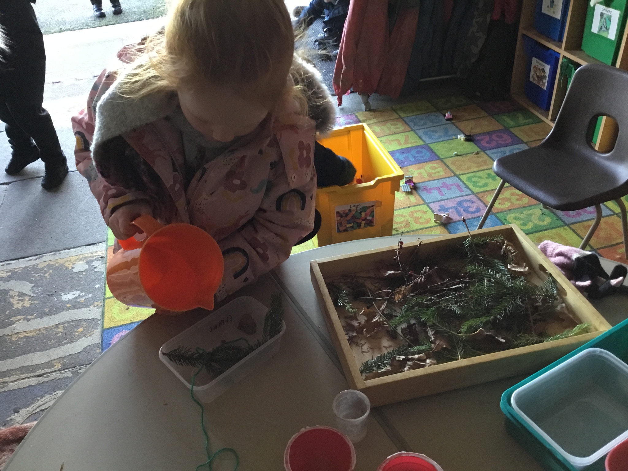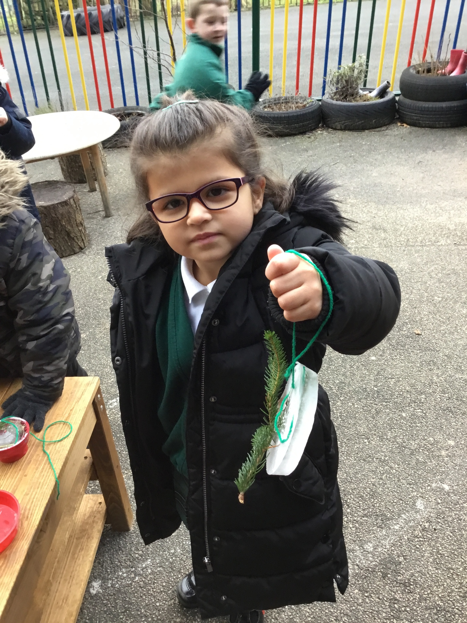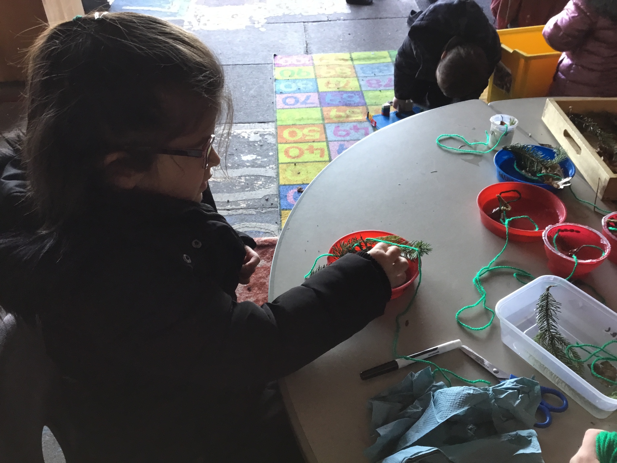 To link Forest School with our ice topic we made some pieces of ice art. We collected interesting natural items from the forest then added water and froze them.