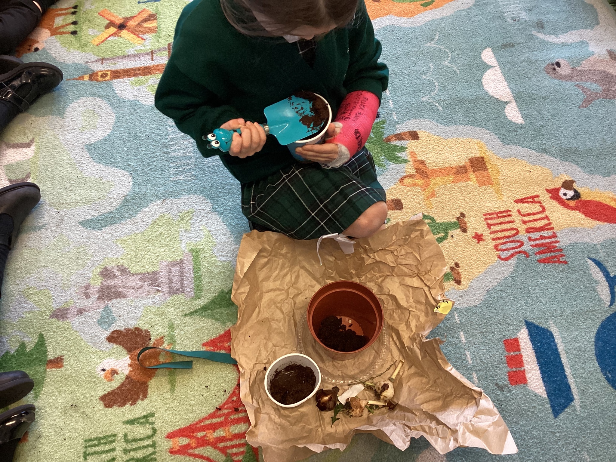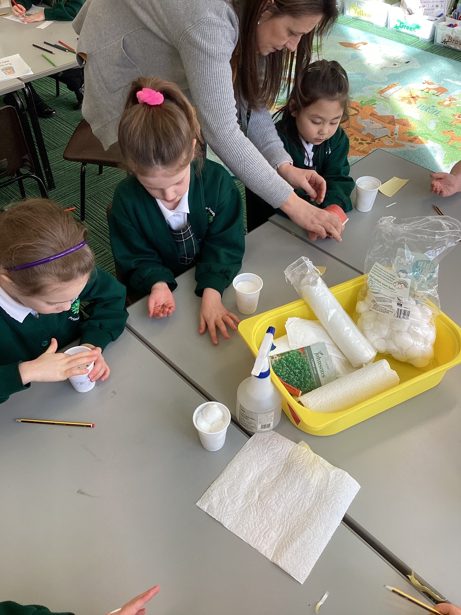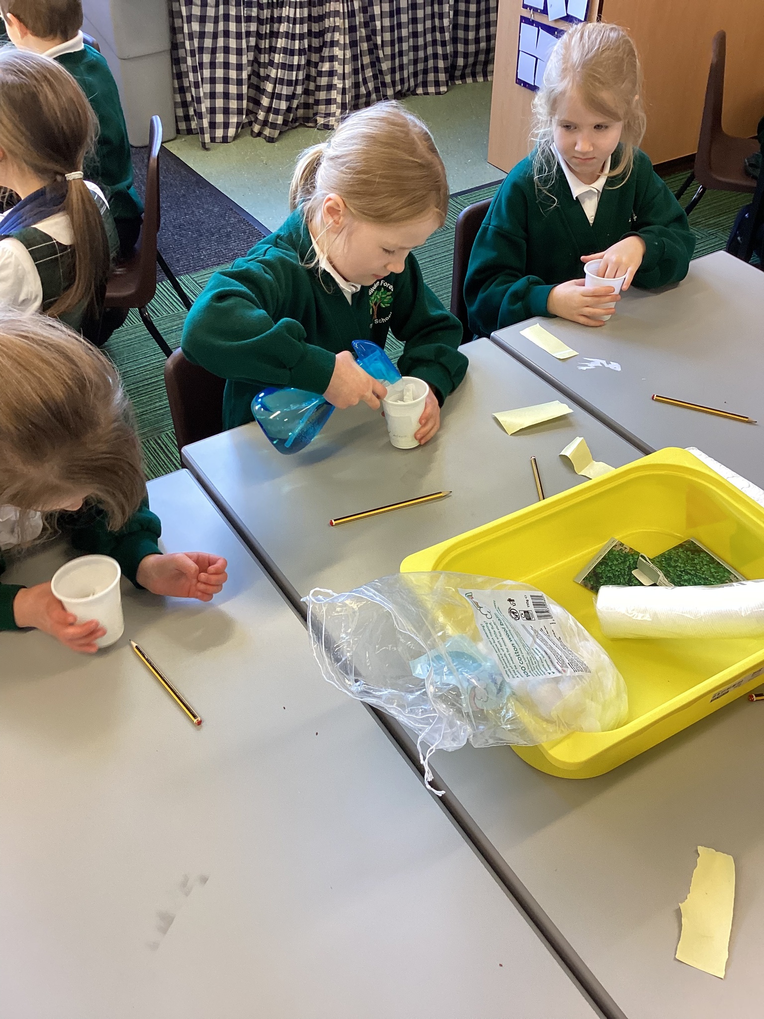 We have enjoyed our first lesson about plants. We have planted a variety of seeds and bulbs including some cress seeds in our very own cress pot. We will be watching how they grow over the next few weeks and then we will bring them home to taste!
