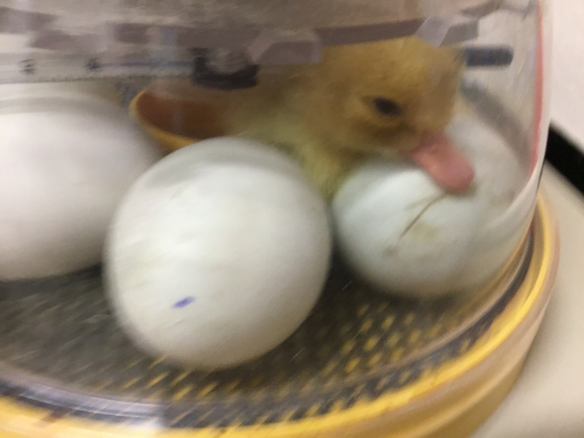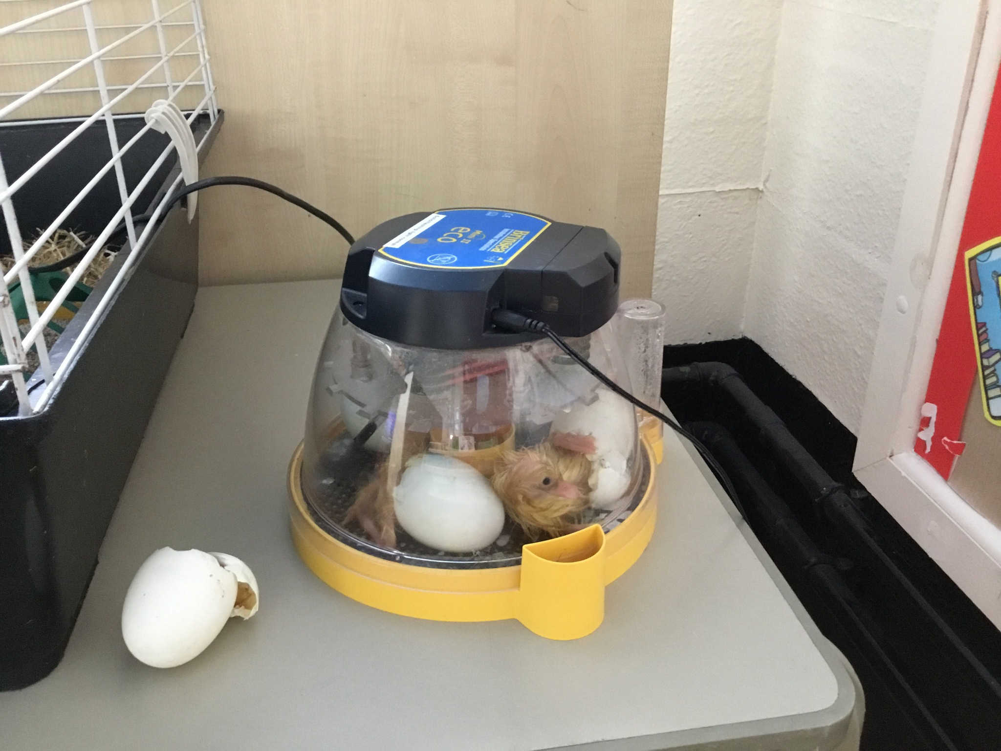 On Tuesday Reception were very 'eggcited' when they received a special delivery of an incubator and six eggs. We predicted what might hatch out of them but didn't have long to wait as our first yellow duckling hatched the very next morning.