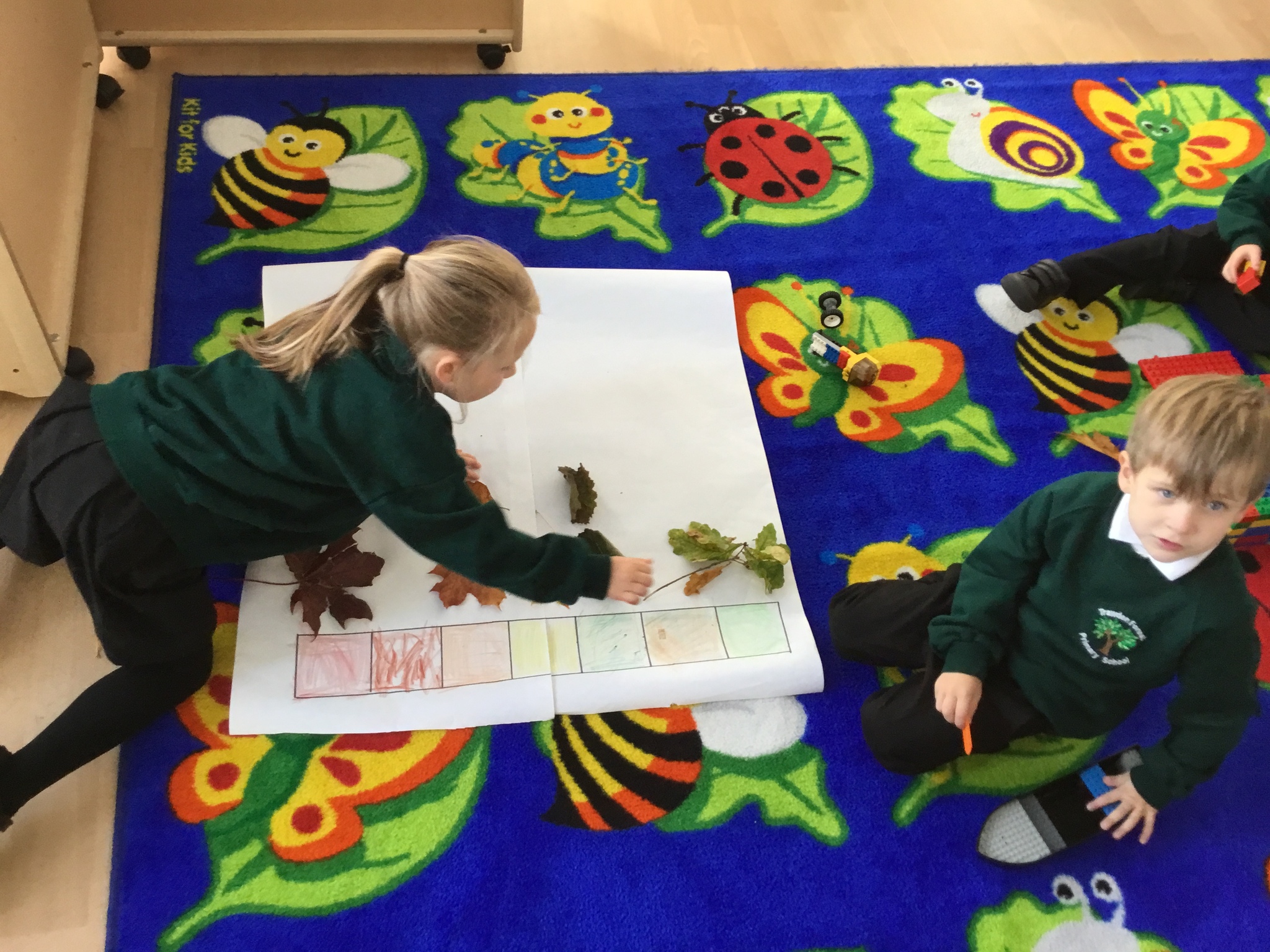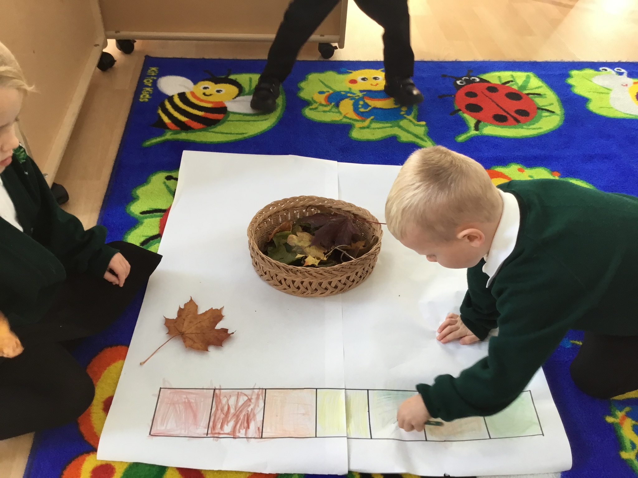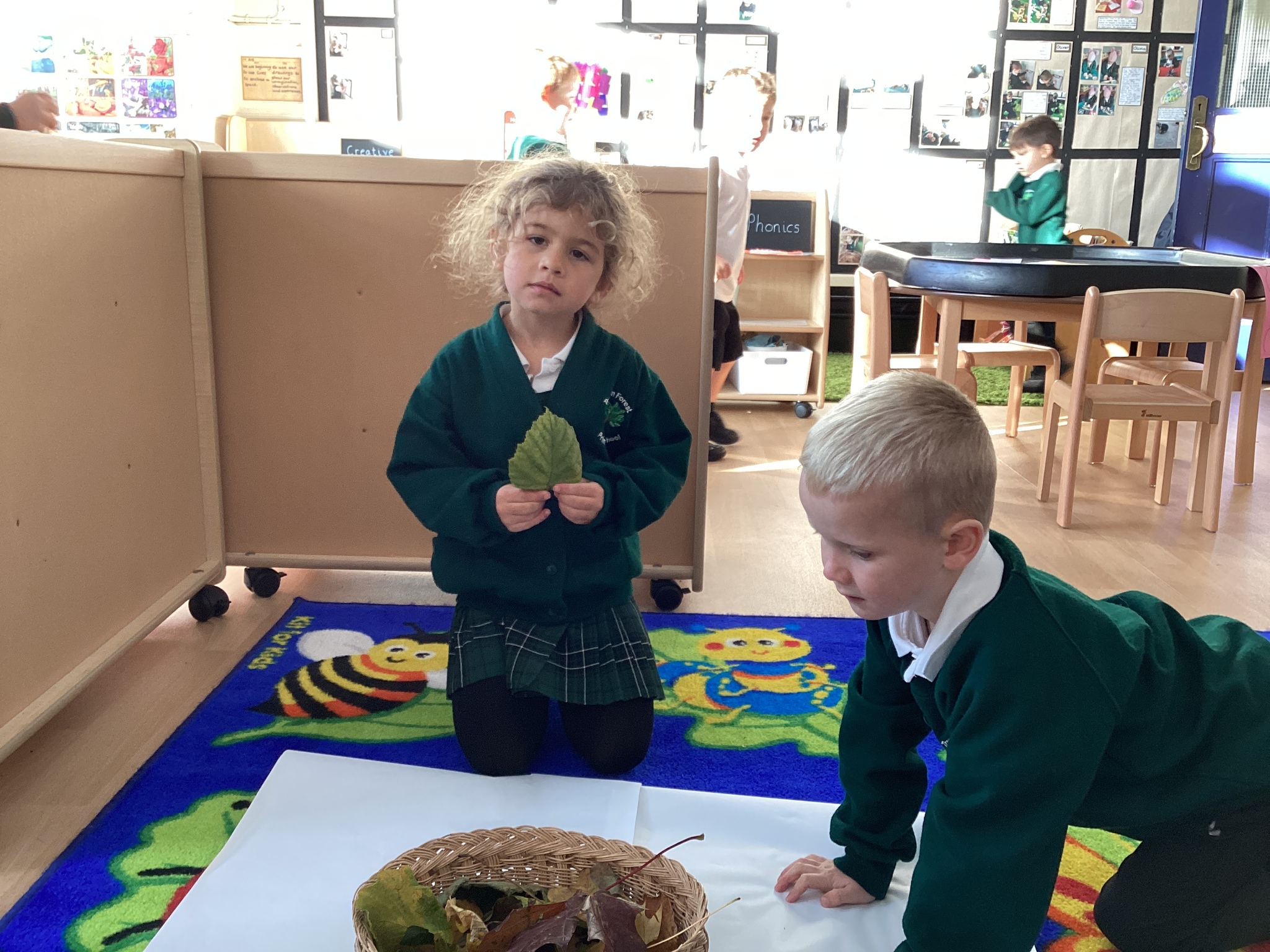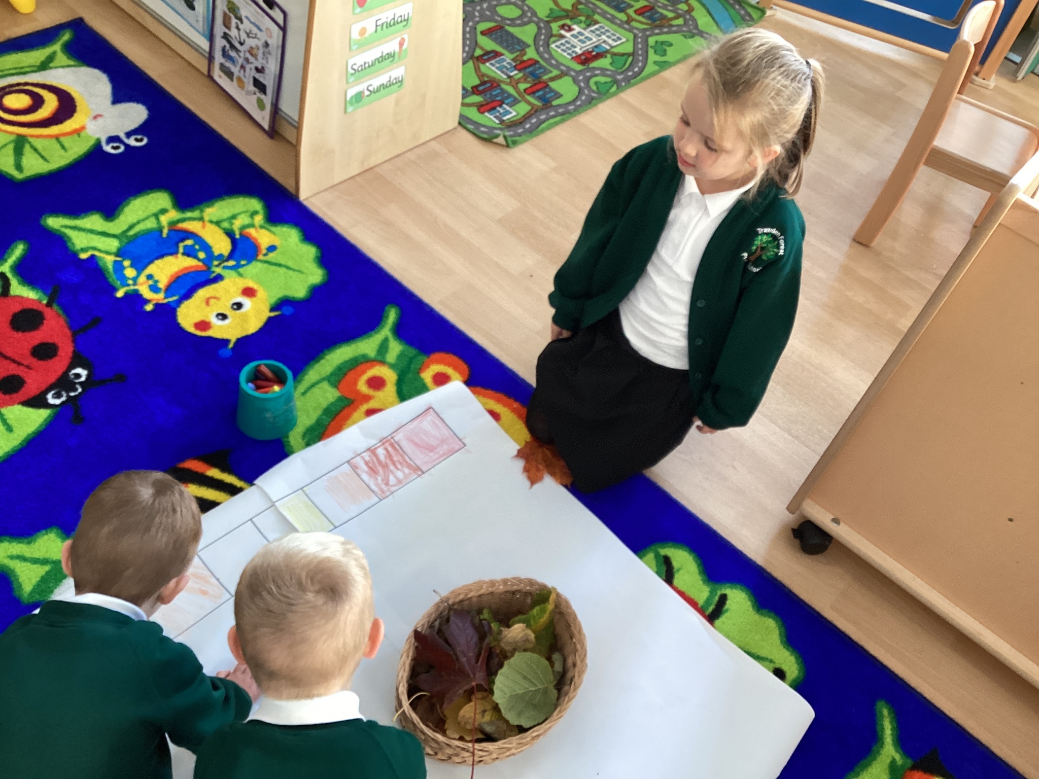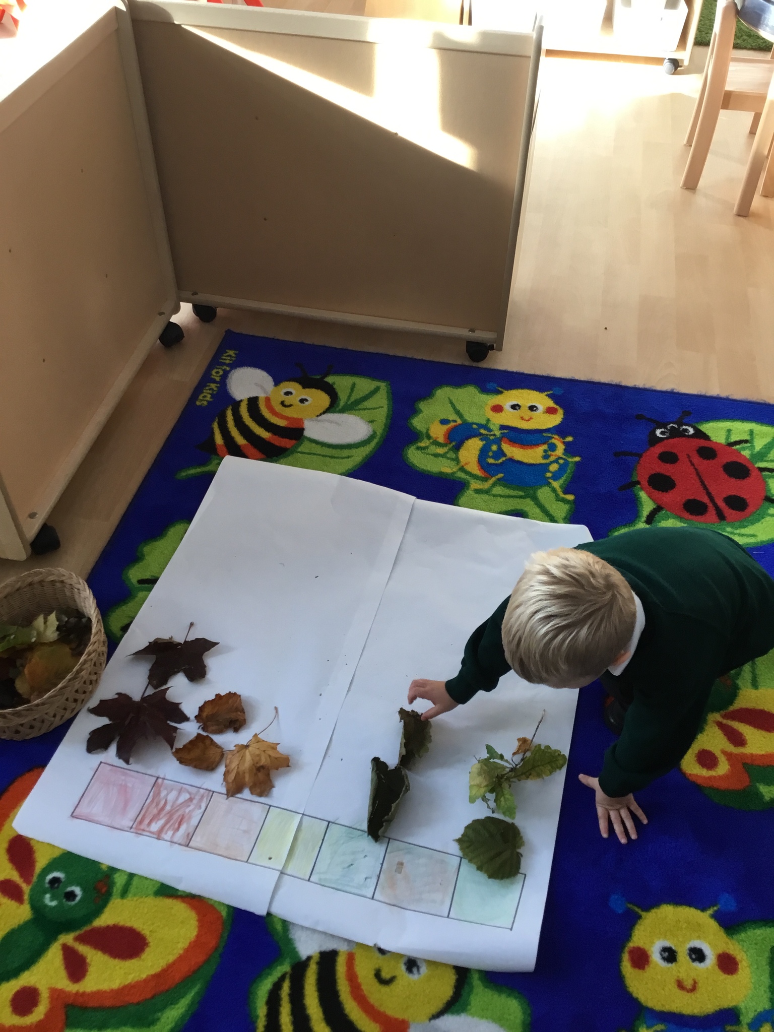 Yesterday we gathered lots of leaves on the field during our Forest School session to add to the collection the children brought in. We did lots of sorting activities using the leaves including sorting into different colours. We have also been practising our sounds and blending them together to read words. We have had lots of fun this week and can’t wait to see what tomorrow brings!