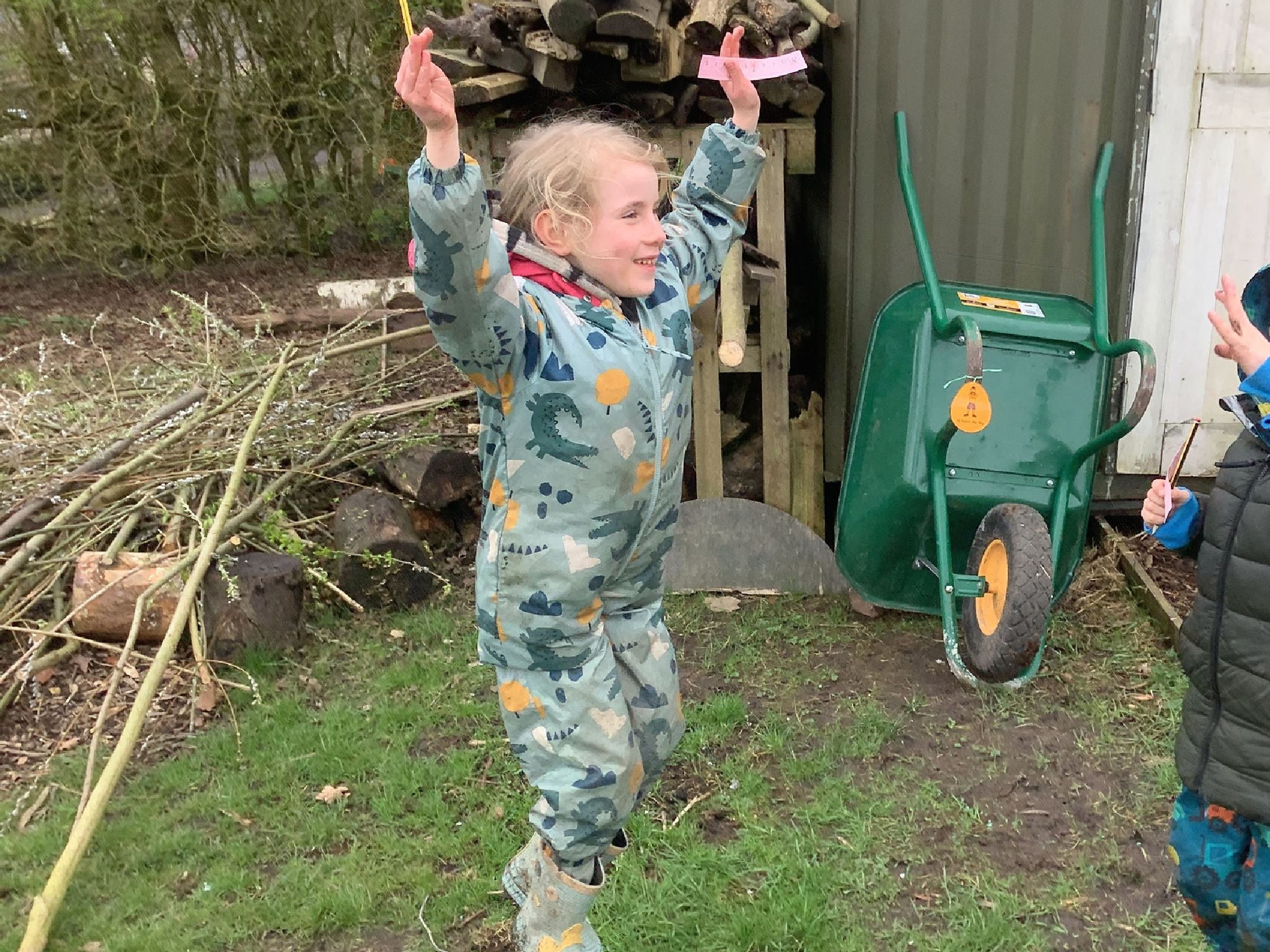 Willow class had an egg-citing Forest School session today. The children had to hunt for printed eggs hidden all over our Forest School area. Some of them had an action to complete such as do 10 star jumps and others had a letter on. When the children had collected all the letters they spelled out a secret message. If the children managed to decode the message they got a share of the (chocolate) treasure.