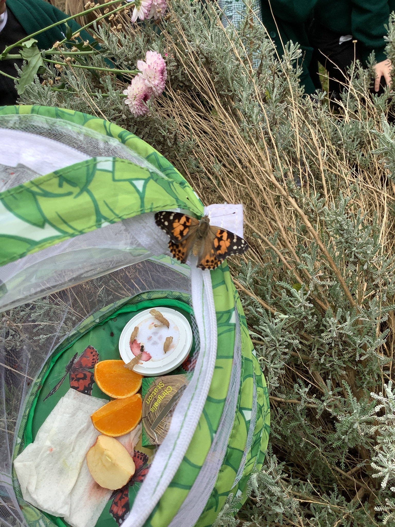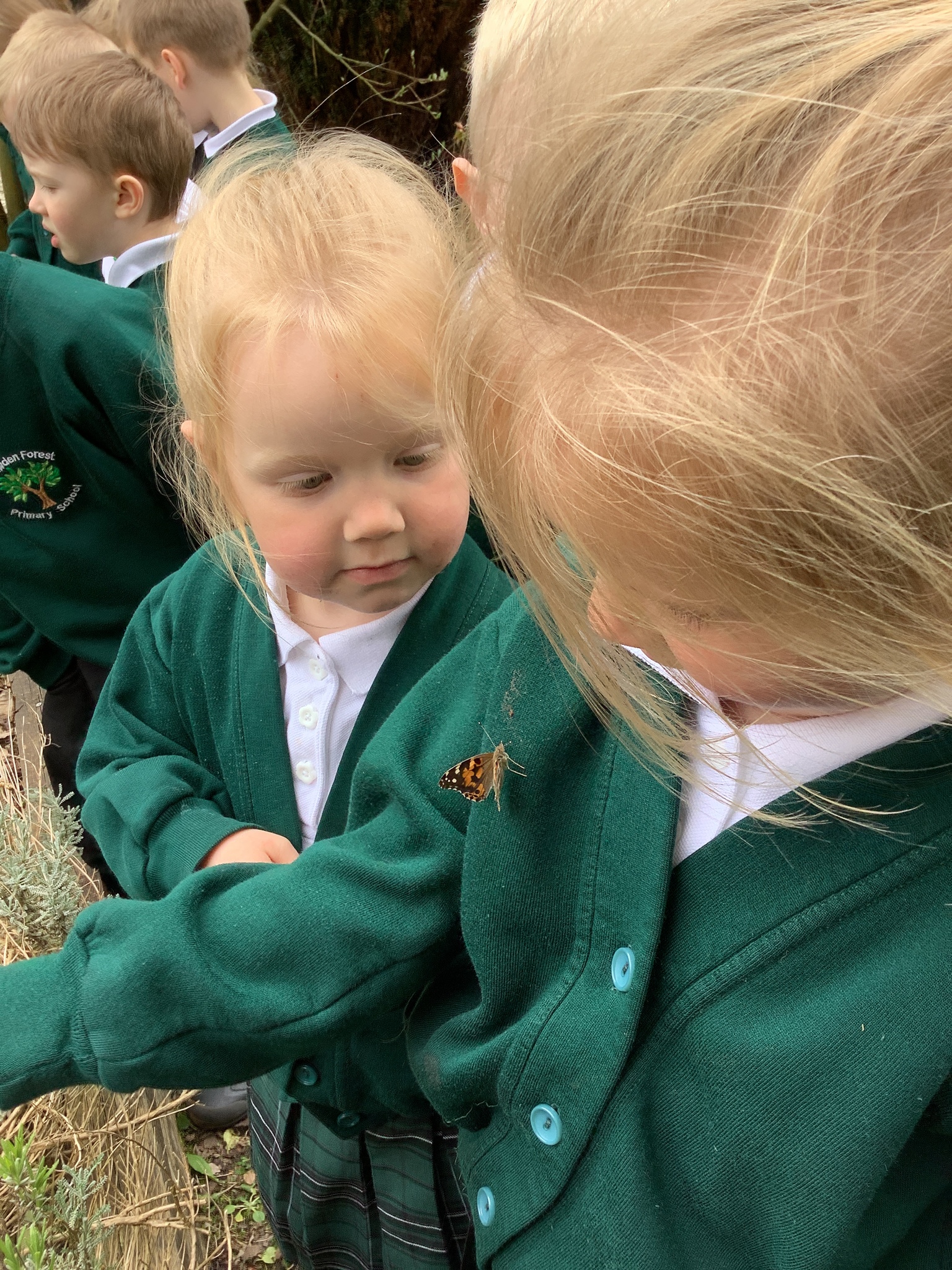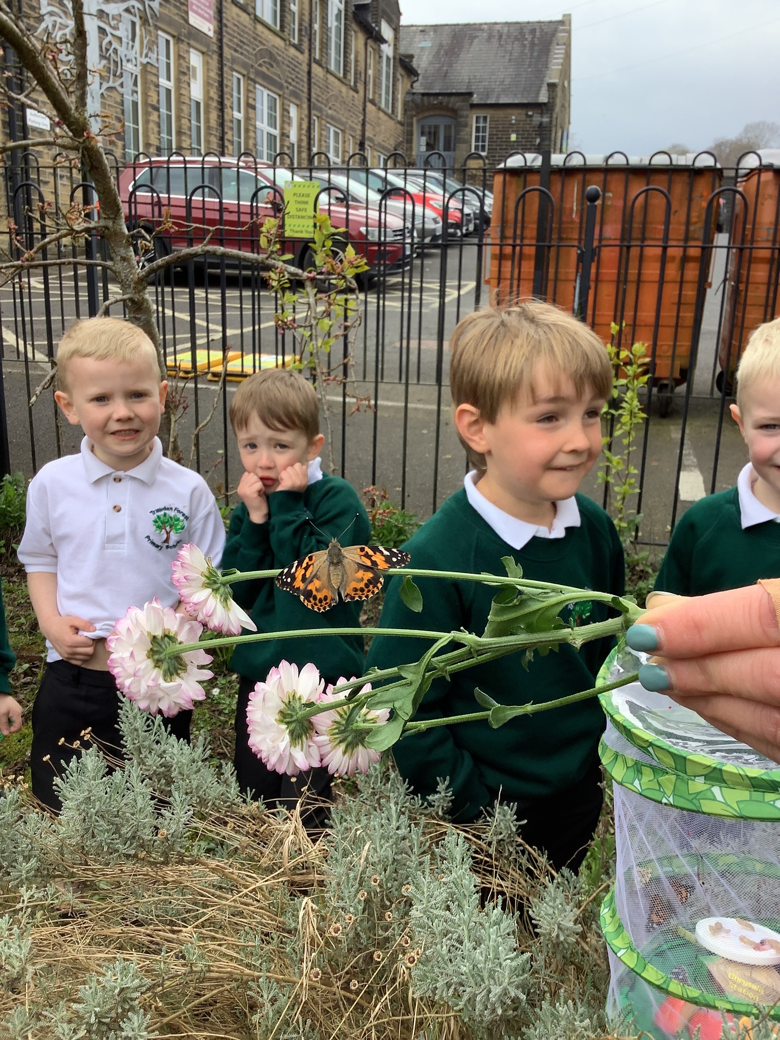 We had a very exciting day today. We retuned back to school to find that the butterflies had hatched over the Easter holidays! We all observed them and talked about how they had changed. We then took them outside into the garden to release them. However, we had obviously made too good a home for them as they did not want to leave! We watched as they flapped their wings and eventually started to fly.