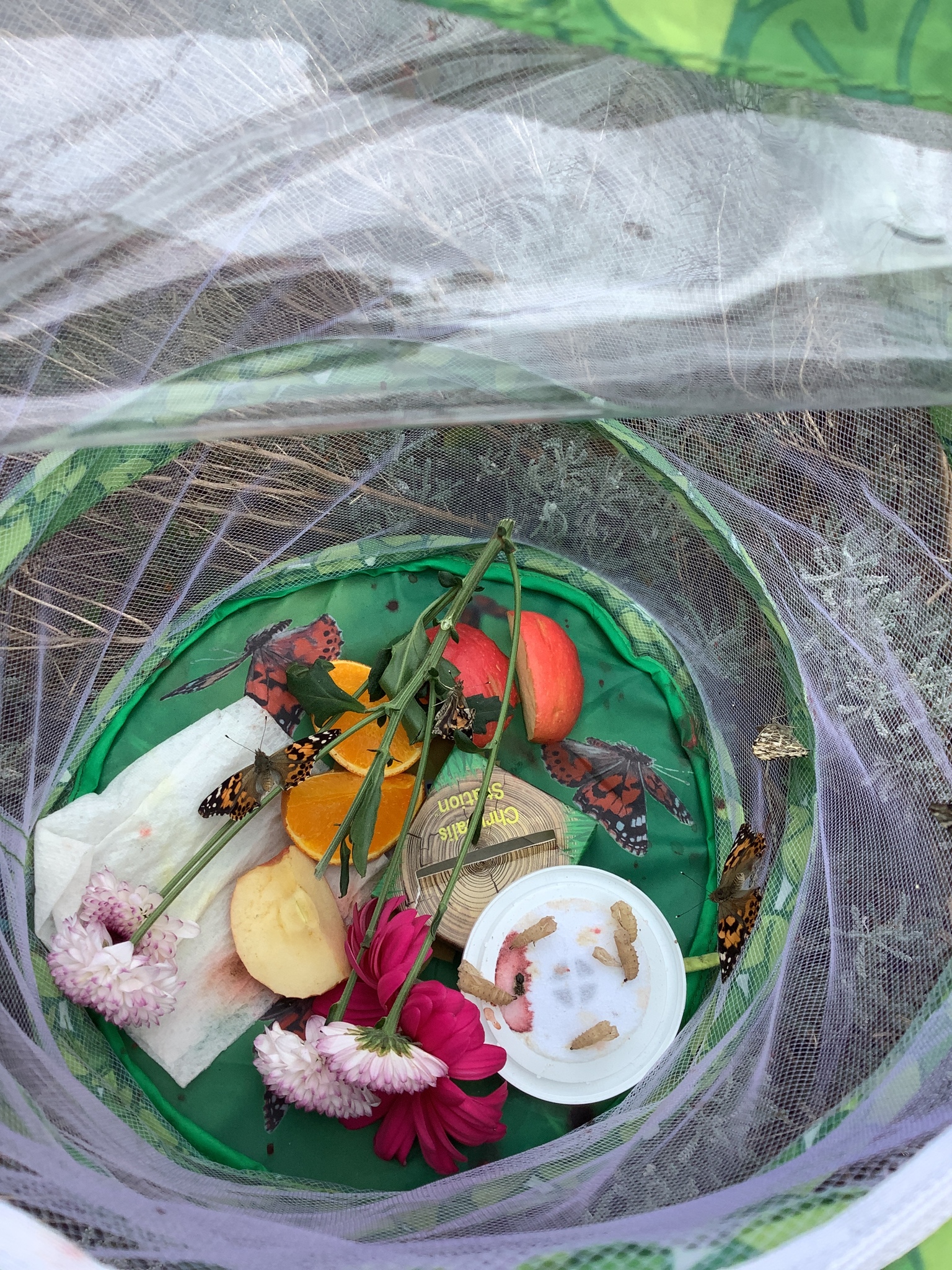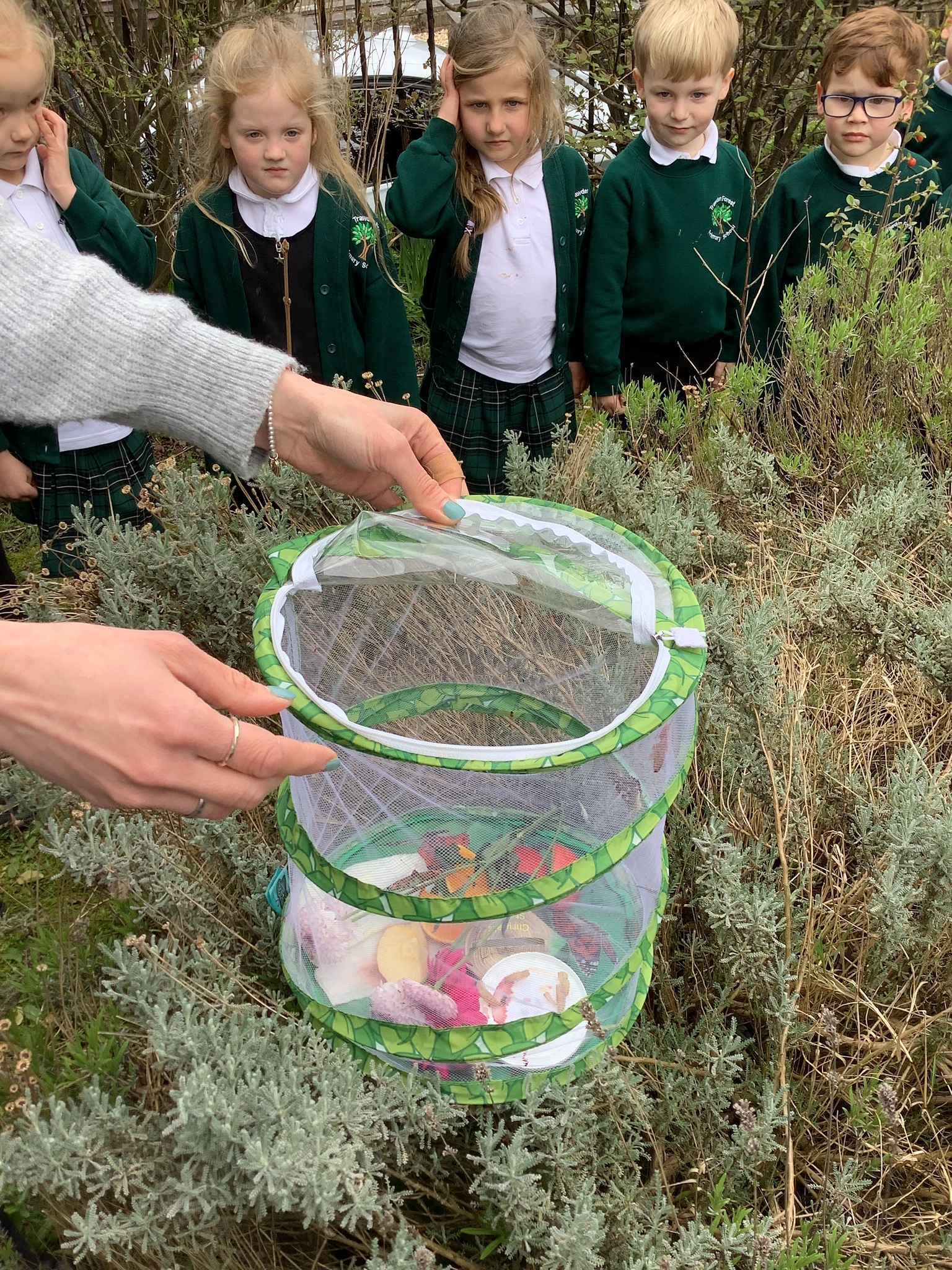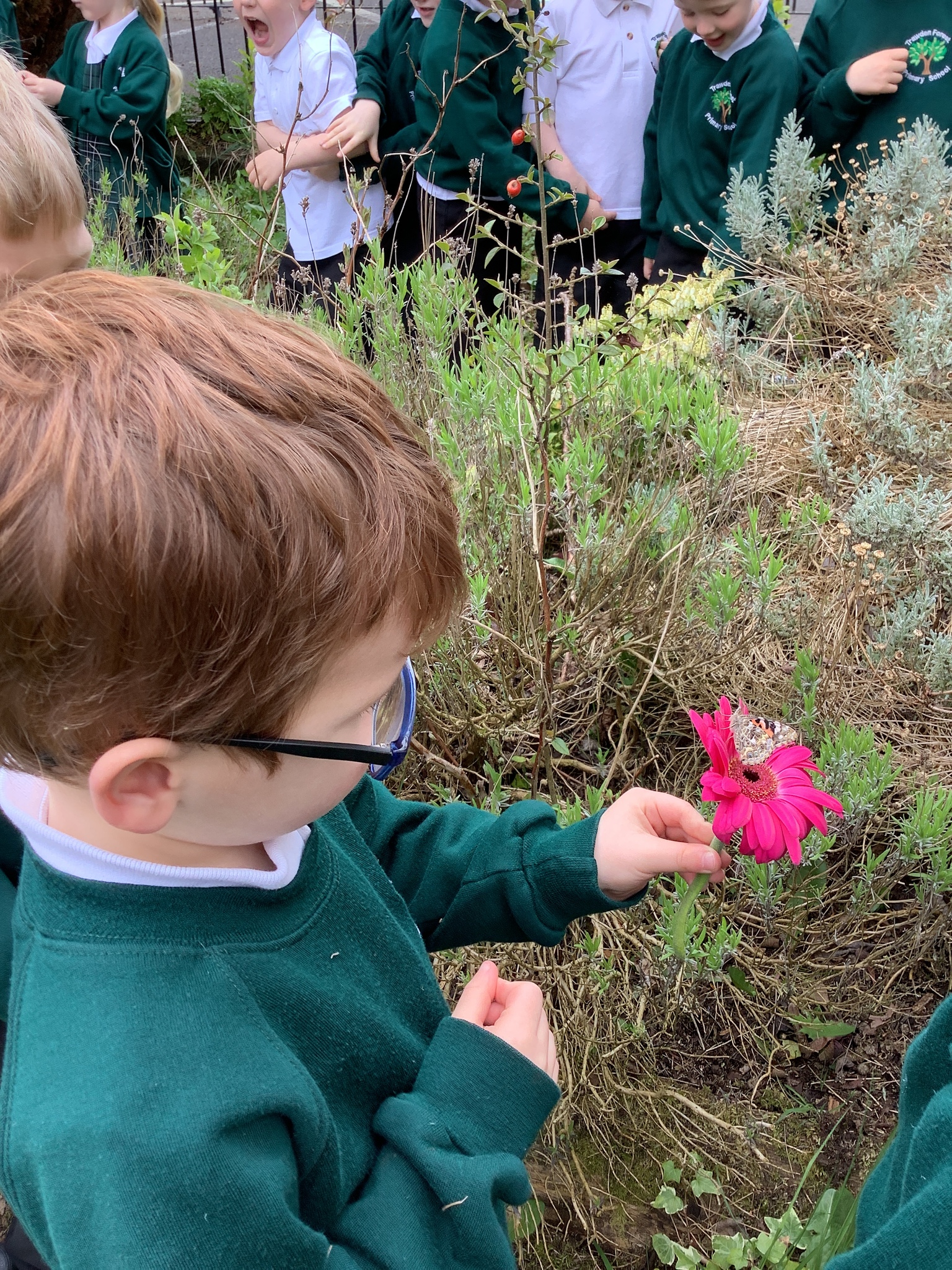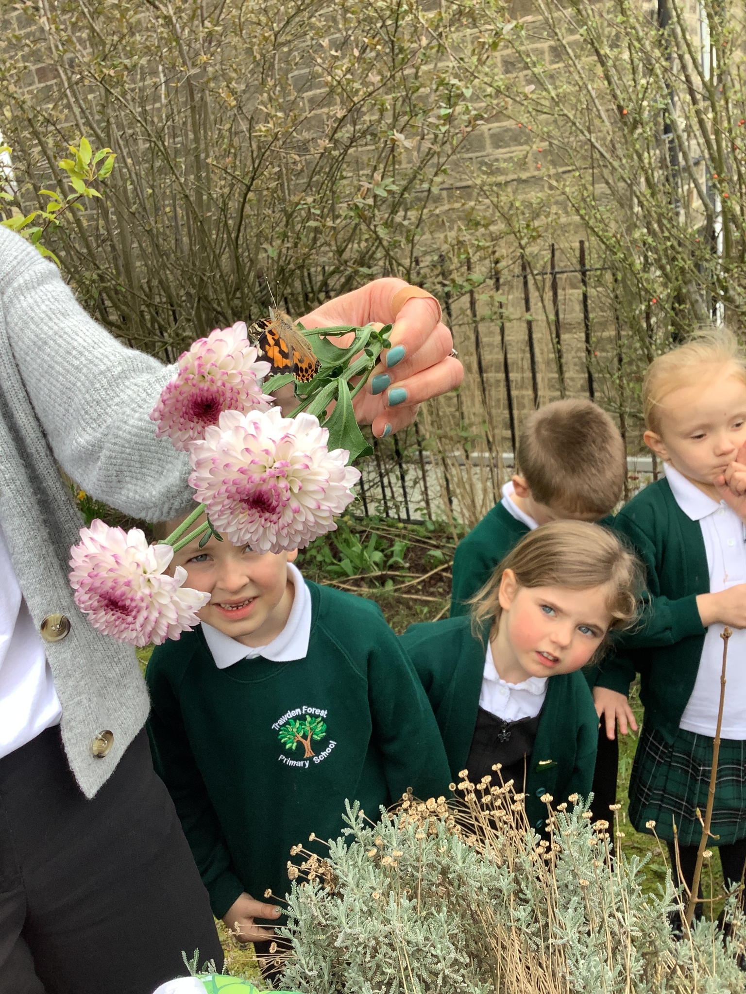 We had a very exciting day today. We retuned back to school to find that the butterflies had hatched over the Easter holidays! We all observed them and talked about how they had changed. We then took them outside into the garden to release them. However, we had obviously made too good a home for them as they did not want to leave! We watched as they flapped their wings and eventually started to fly.