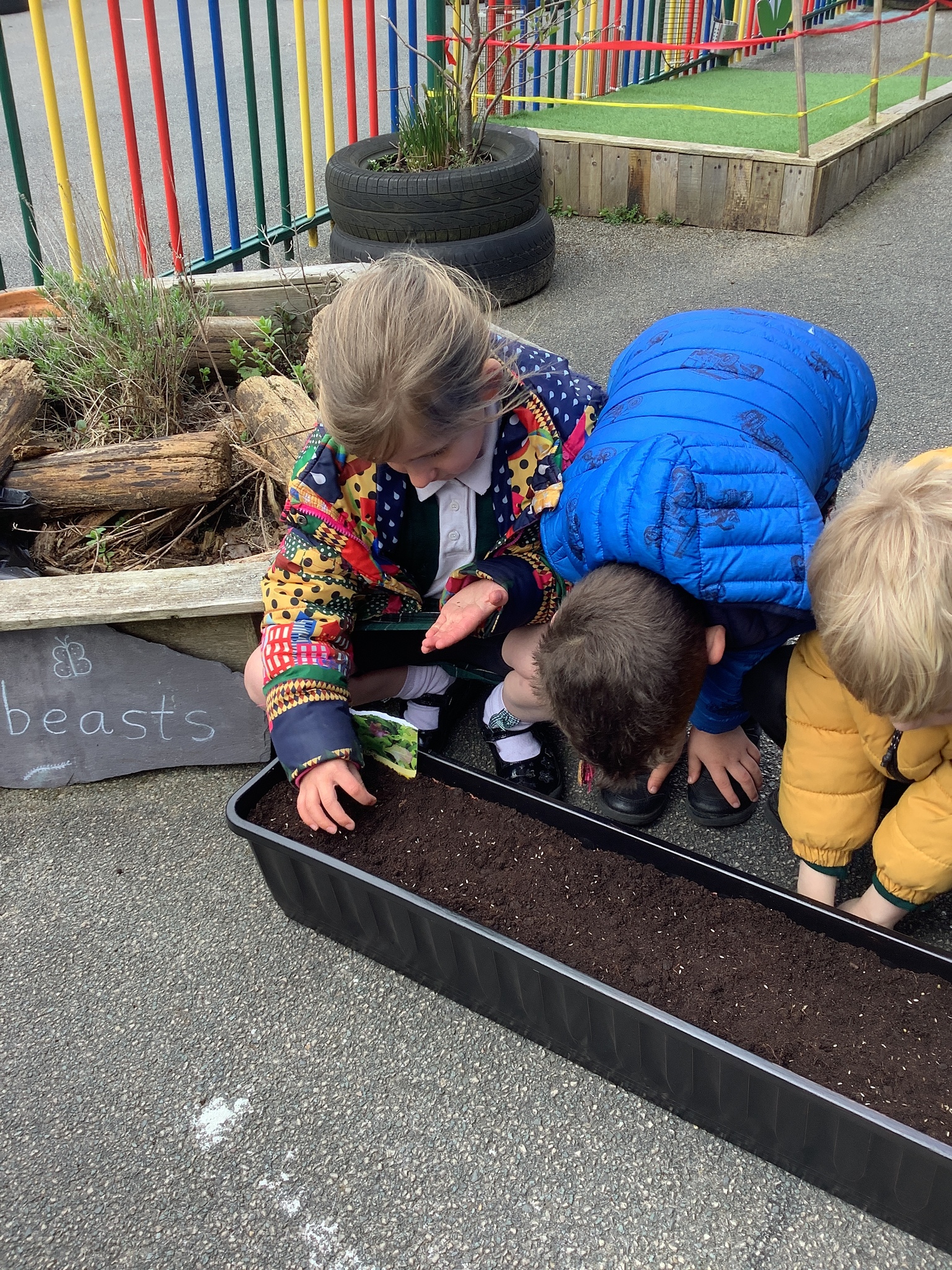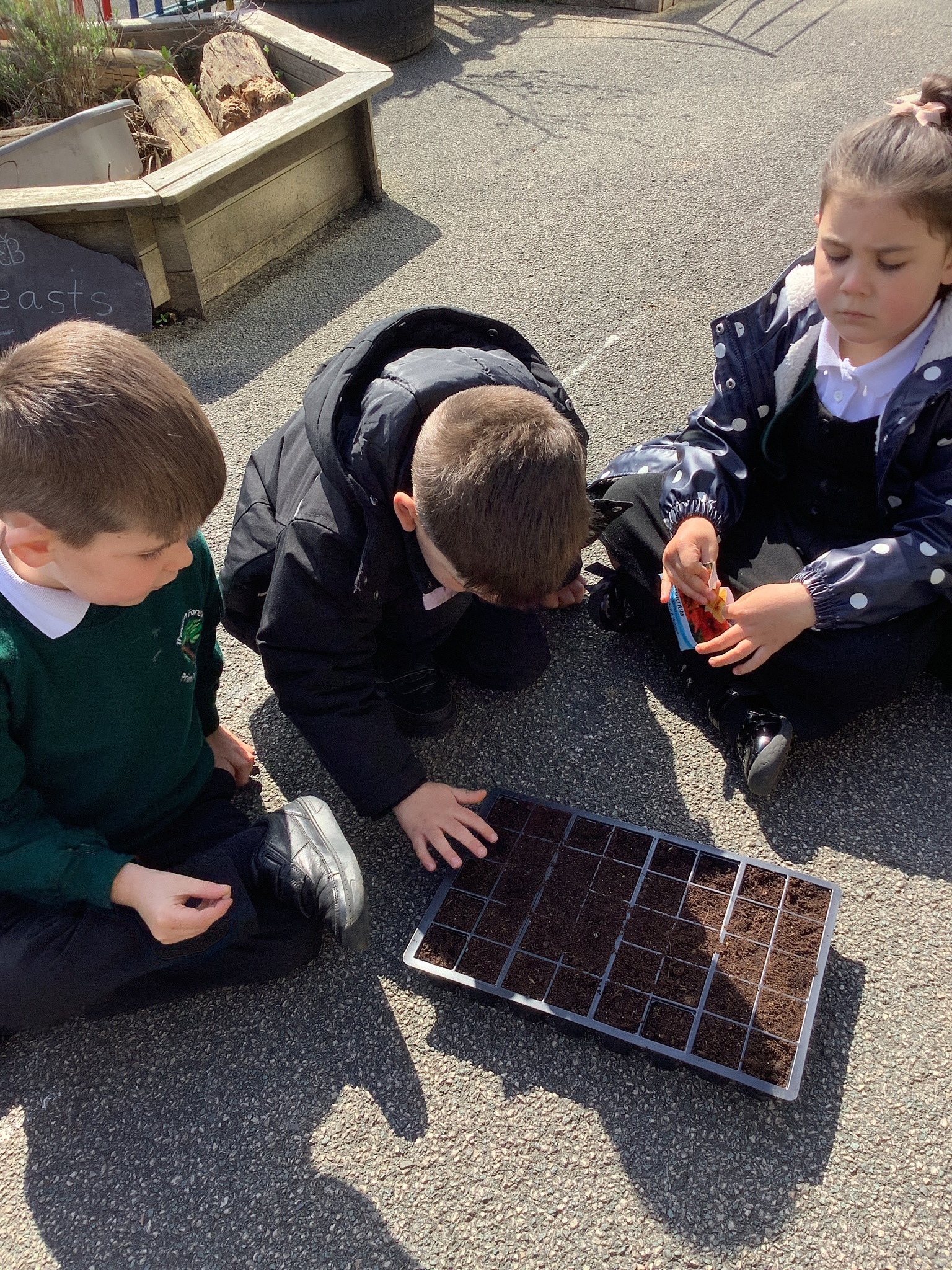 Our EYFS children have had a wonderful start to their first week back of the Summer Term. We couldn’t think of a better way to spend it than planting lots of seeds and redesigning our Minibeast Area. Every day this week, the children have been busy planting, watering and checking on some of the seeds in the polytunnel and have even entered their very own sunflower competition!