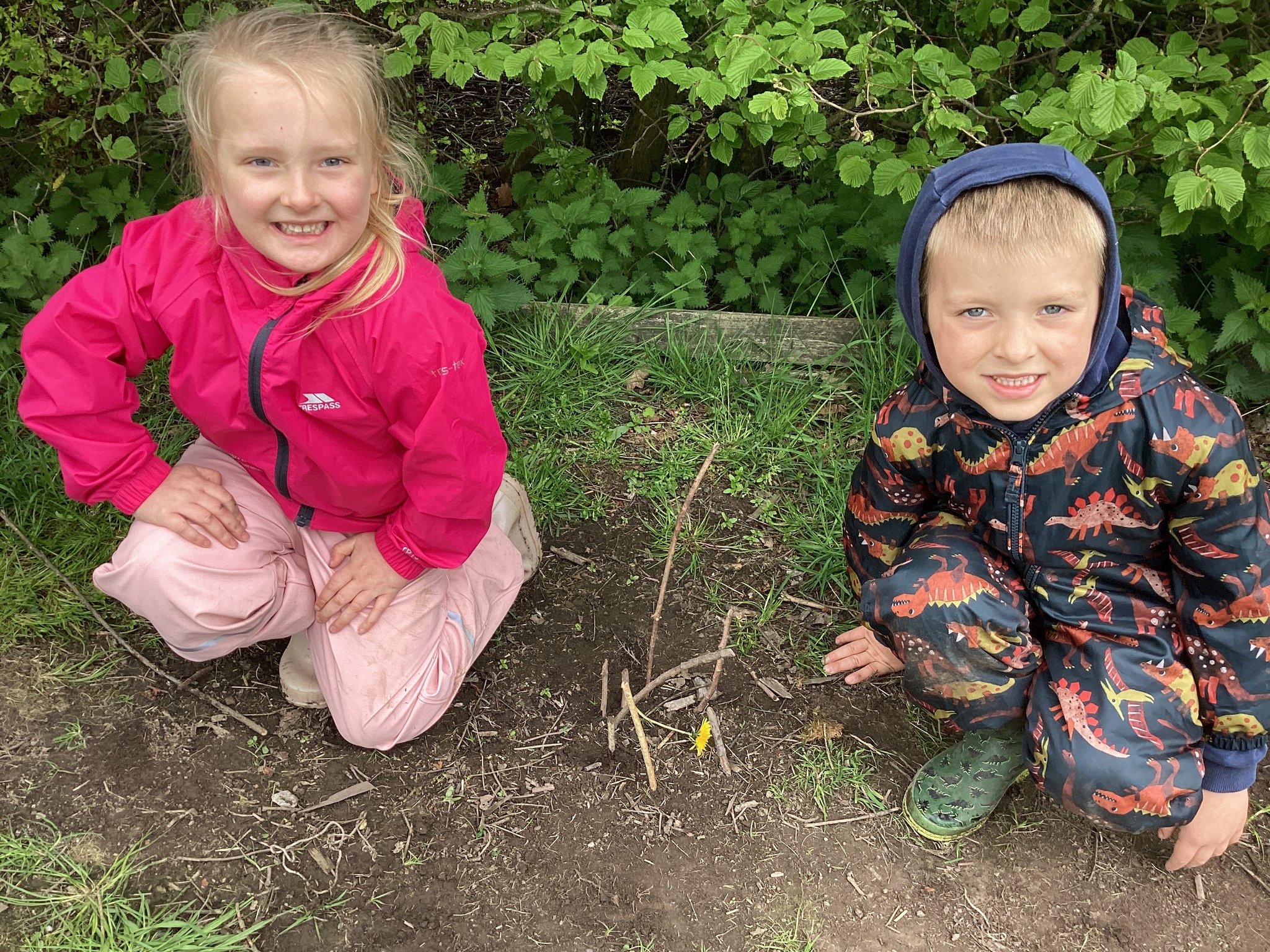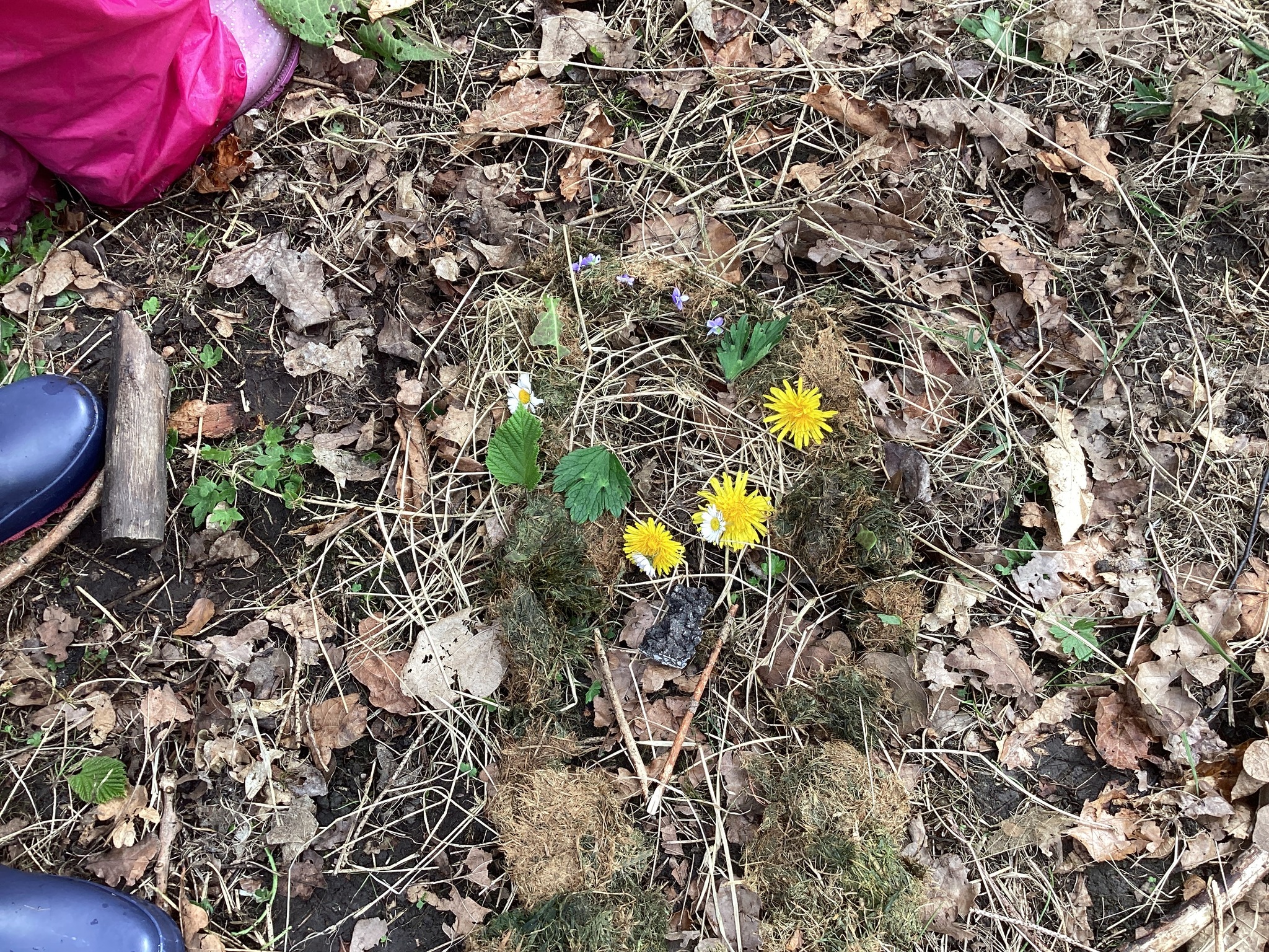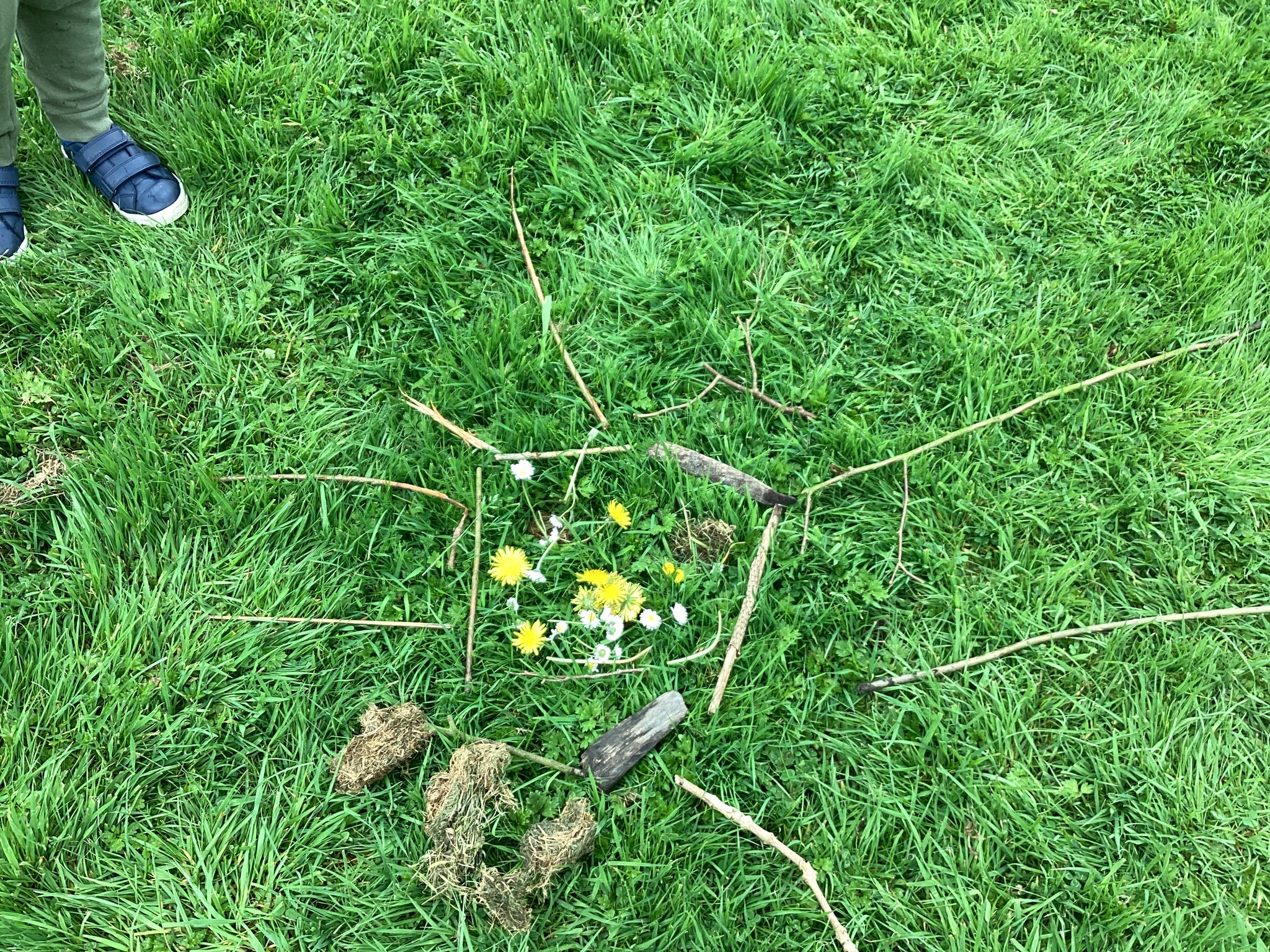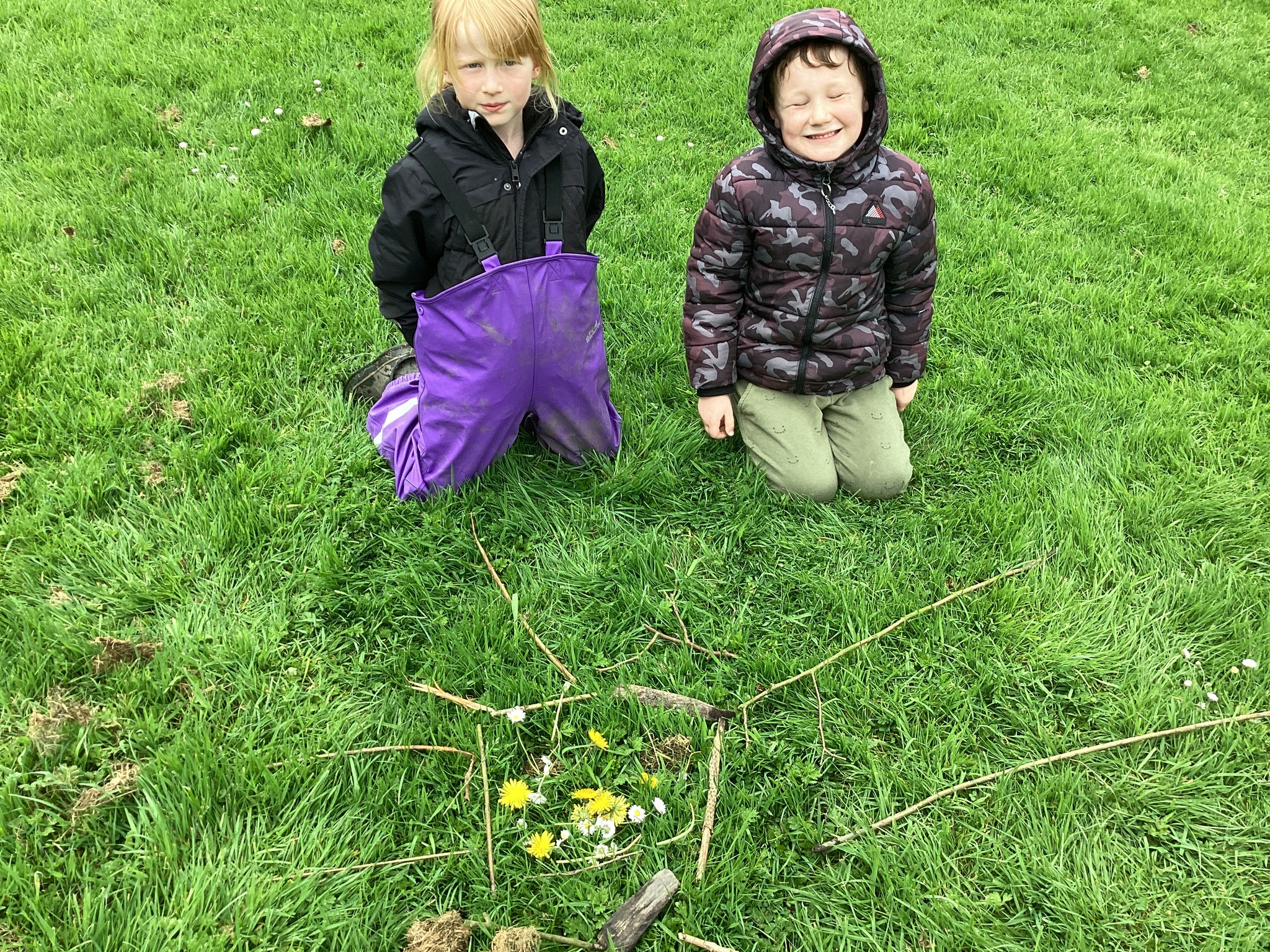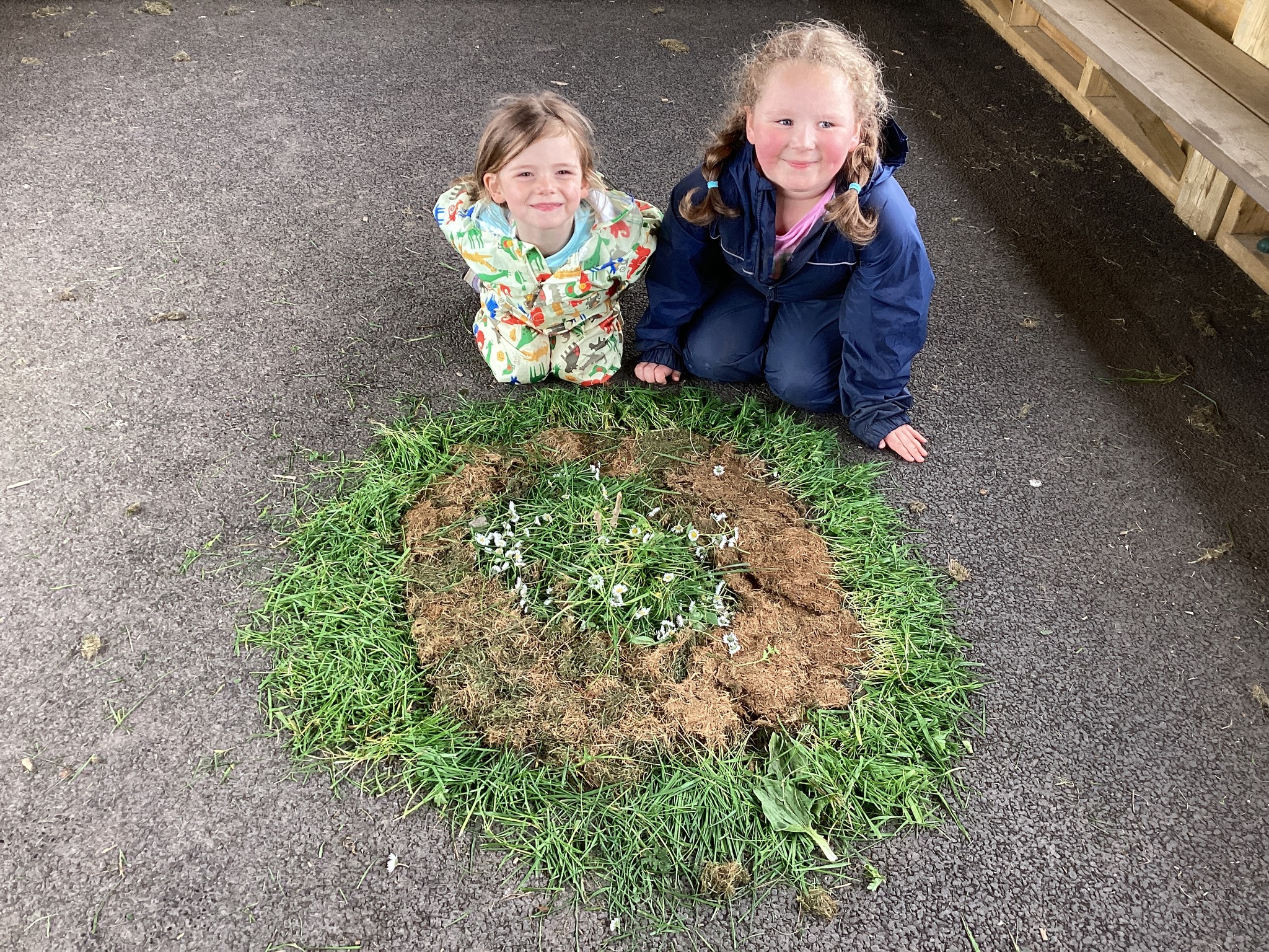 In Forest School the Year 1 children have been looking at natyral art and this week created their own landscape art using natural materials they found.