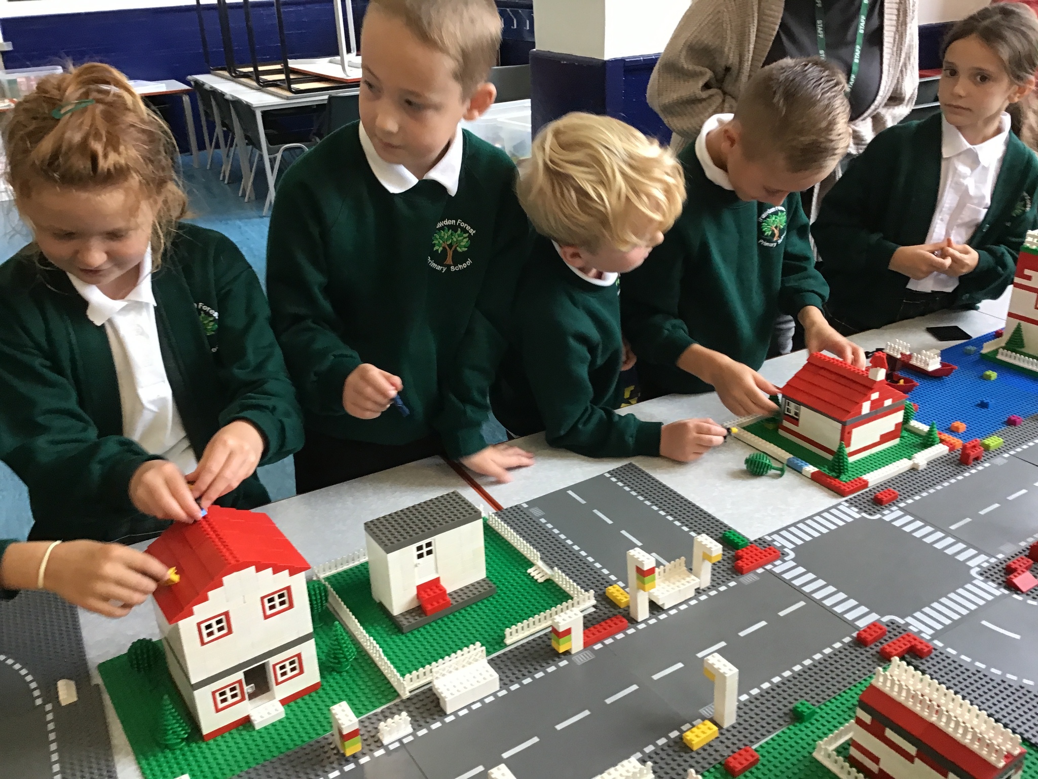 The children showed great teamwork to create their own main street, complete with street lights and benches, and enjoyed playing with their creation with some mini figures.