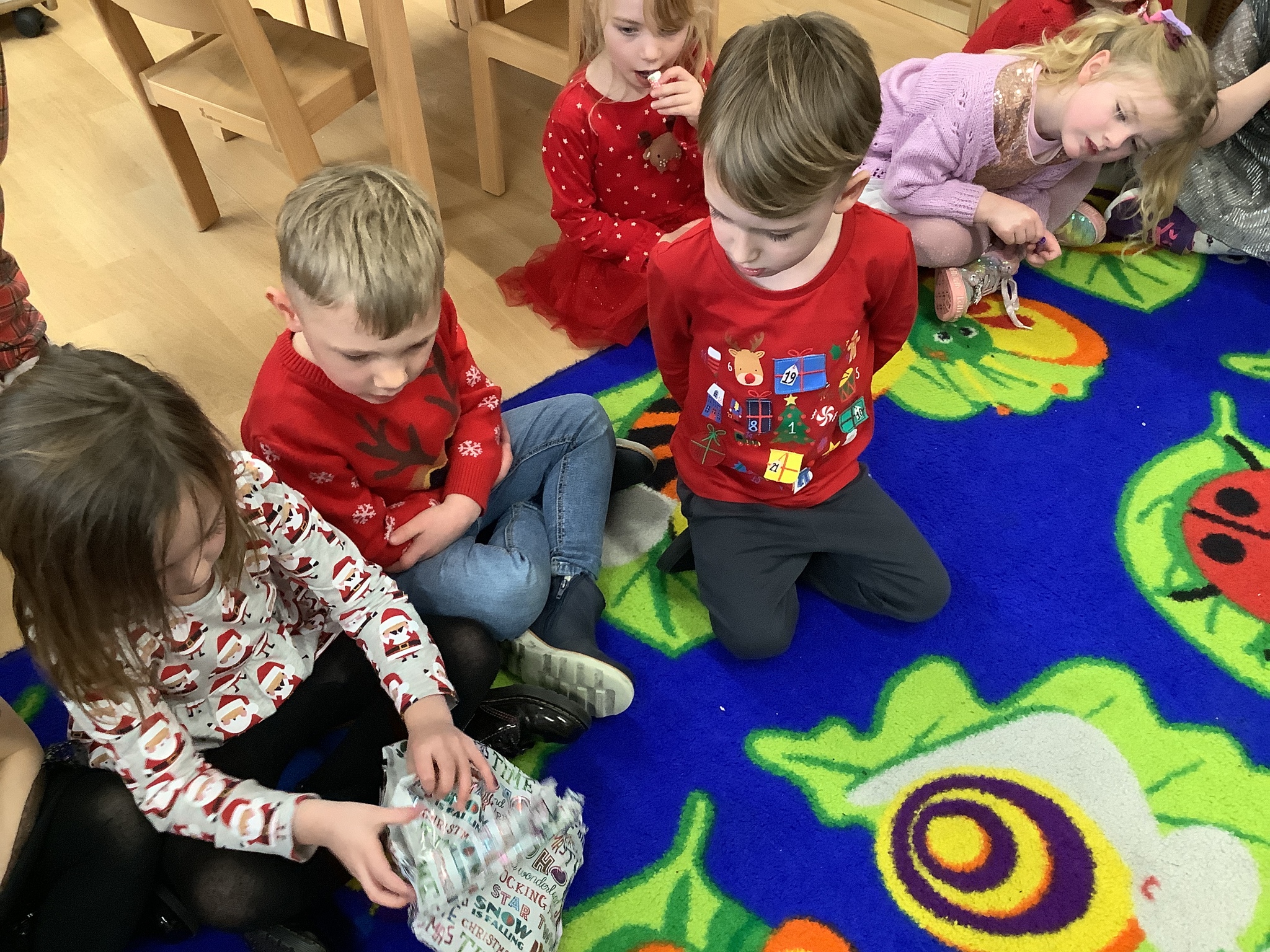 They have continued to have a week of fun and learning in class and today was the day we counted out how any baubles have been in our mystery jar - the children enjoyed making their guesses and putting them in order. The mystery amount was in fact 23!