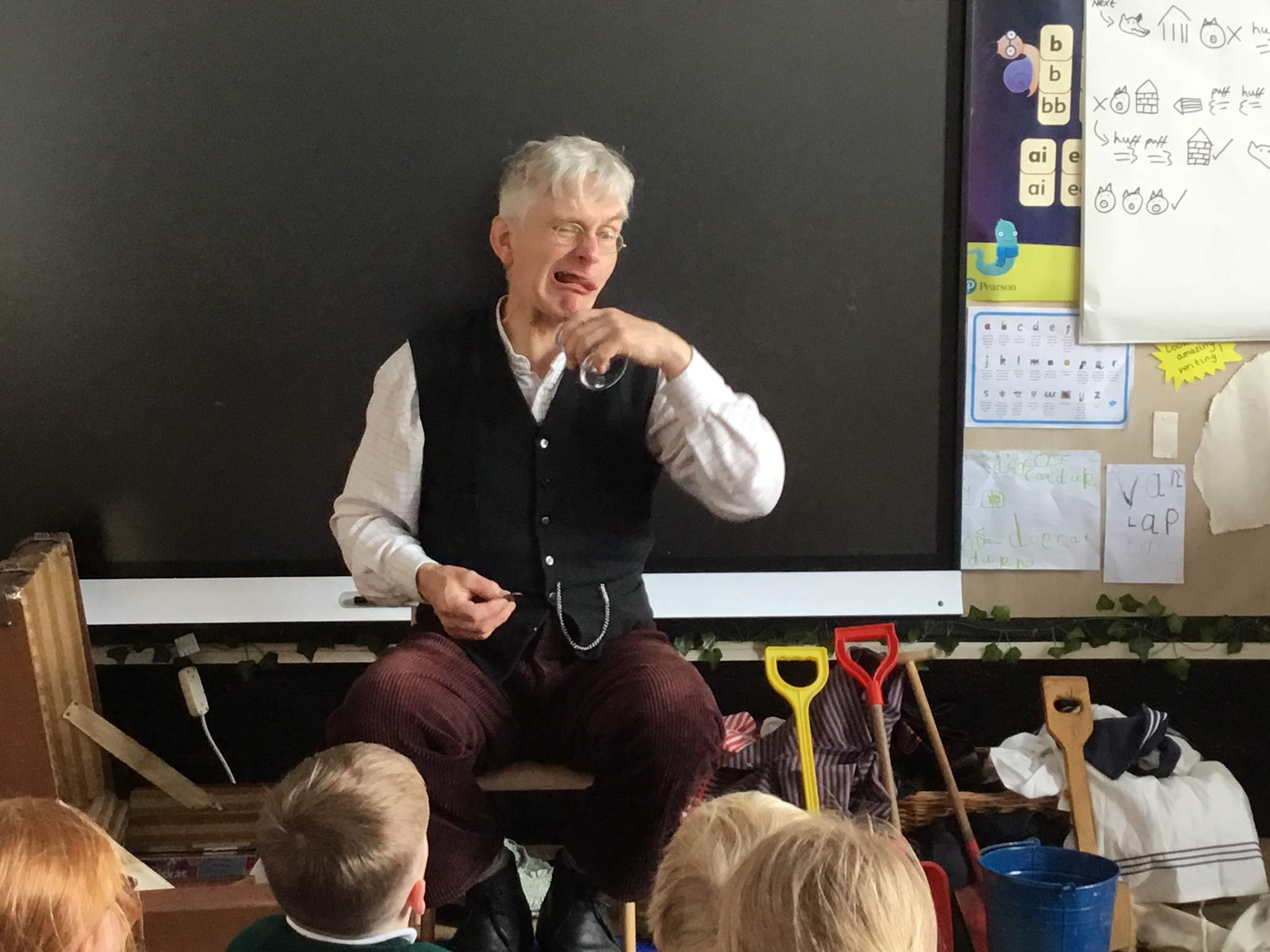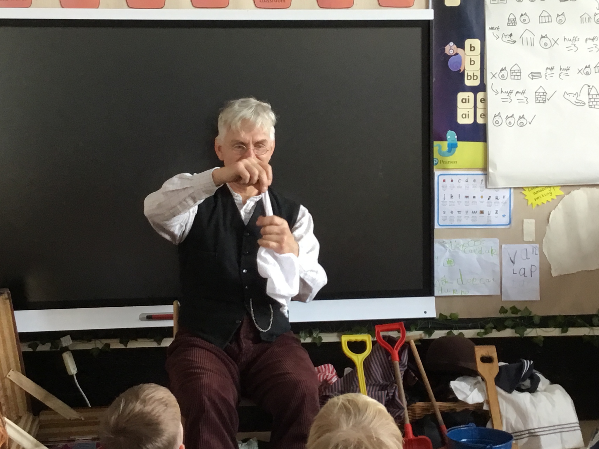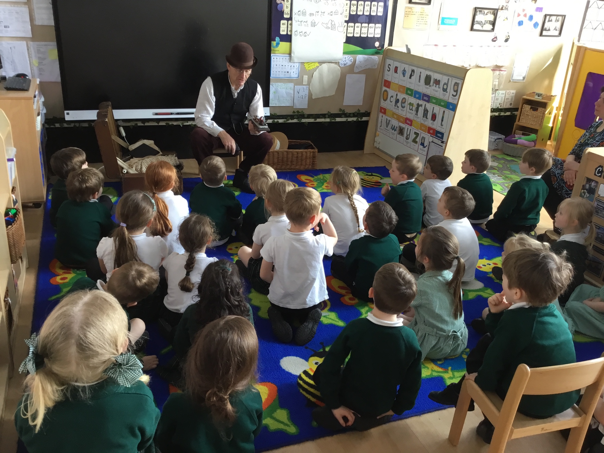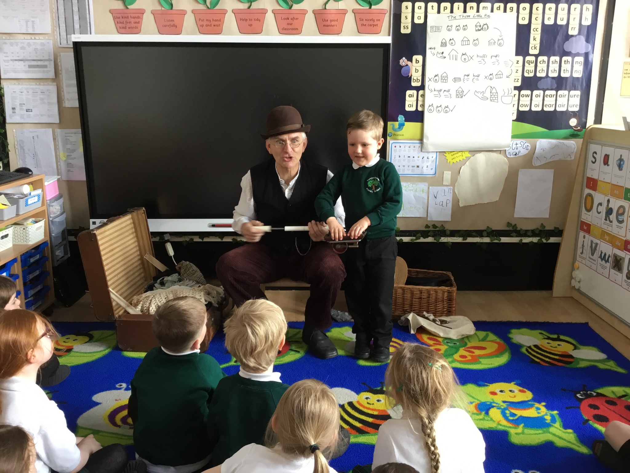 EYFS children enjoyed an afternoon with the wonderful History Man again. This time he visited us to talk about holidays from the past – specifically the seaside! The children were mesmerised with his story telling skills and enjoyed getting to try on different outfits that they would have worn to the seaside in that era. They also got to have a look at some of the toys they would have taken and what it would have been like to stay in a guest house.