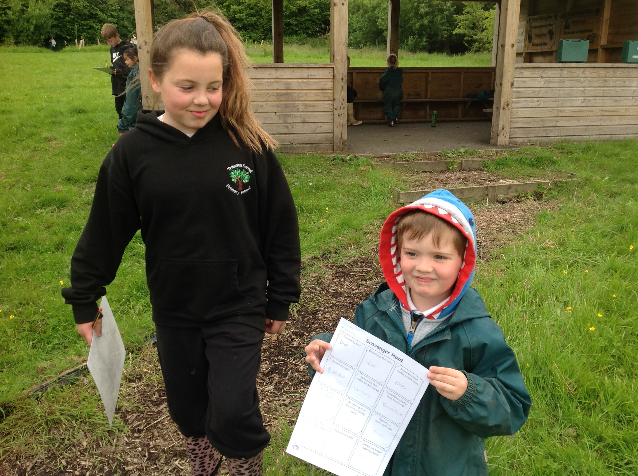 The EYFS children enjoyed a wonderful afternoon with their buddies on the field. They spent time playing and exploring, as well as completing a scavenger hunt together!