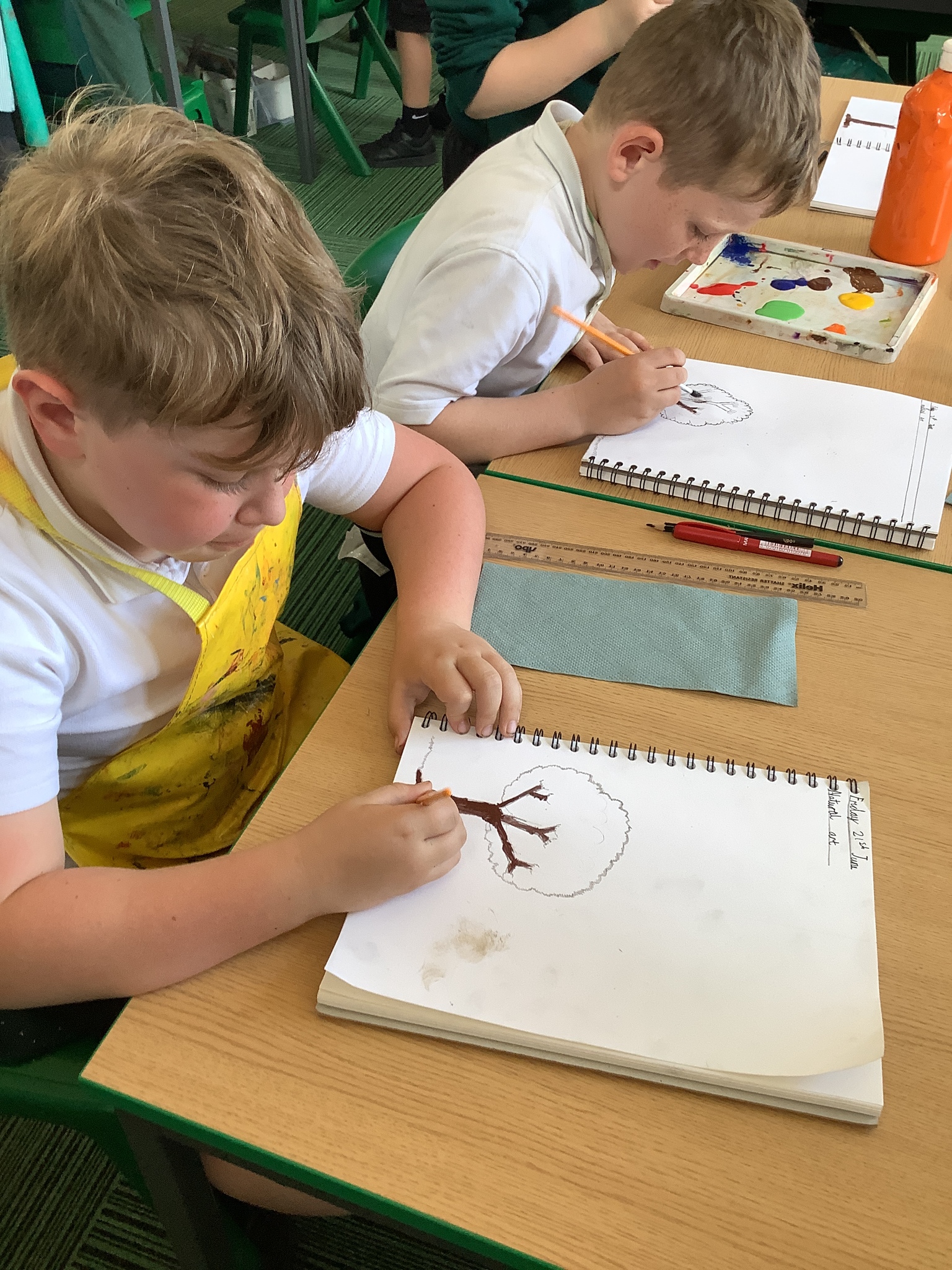 Wow what a week of art we have had! In our Forest School session this week, Year 3 began their exploration of natural art. As a result of this, we focussed on the structure of a tree this afternoon and how to draw a tree using different shapes and letters to help us. I think you'll agree that they done a tree...mendous job!