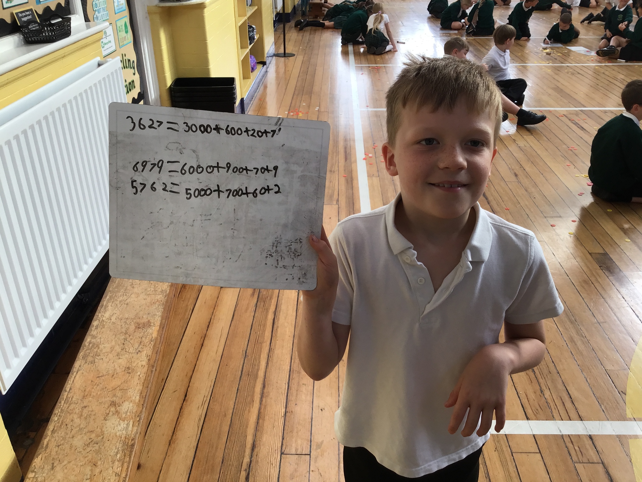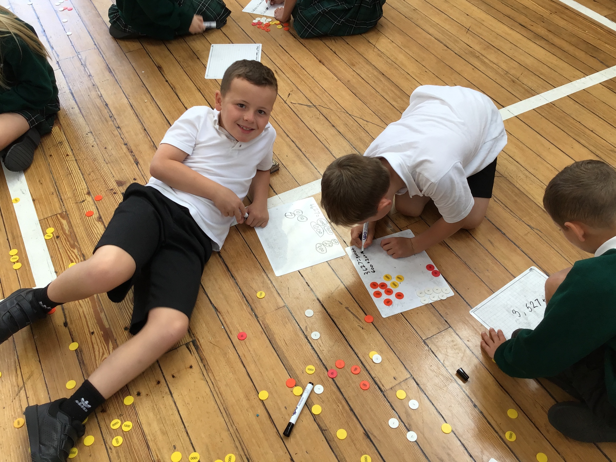 Today in Year 4, our maths lesson took an unexpected twist! Mr Loynds 'accidentally' tripped and sent our place value counters flying all over the hall! Instead of a typical start, the children sprang into action, helping each other to gather the scattered counters before diving into a whirlwind of learning!