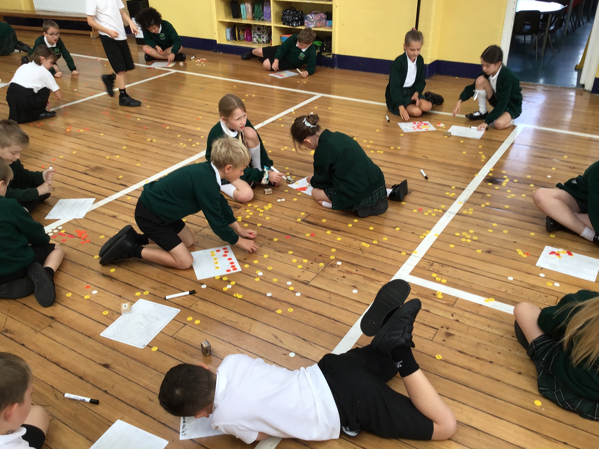 To wrap up this playful yet productive lesson, our class tackled the monumental task of picking up thousands of counters from the floor!