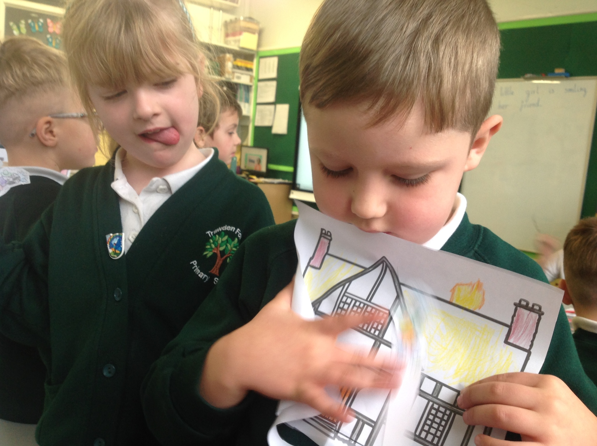 We used what we had learned to make moving Great Fire pictures using a slider of a man running with a bucket.