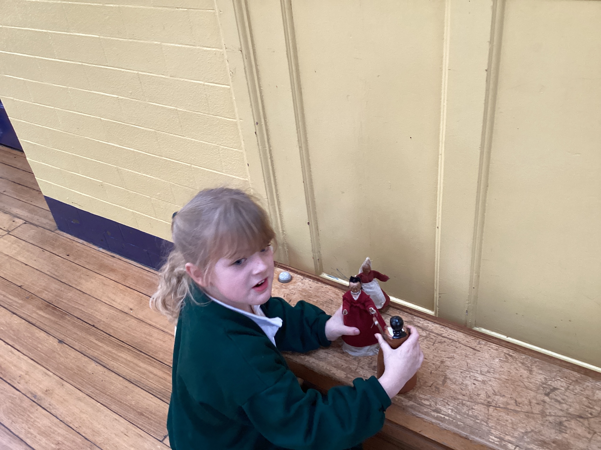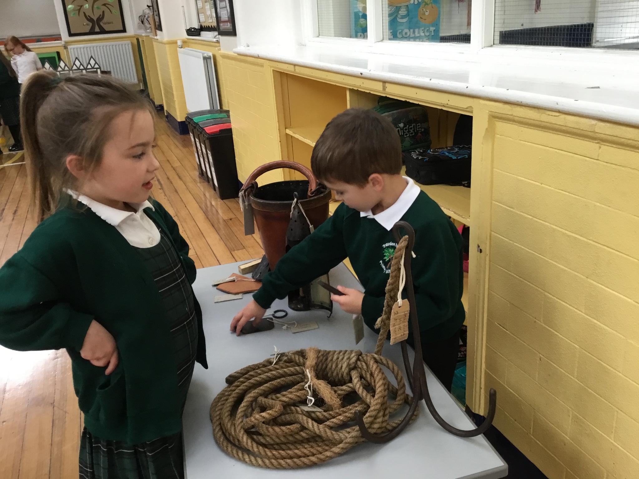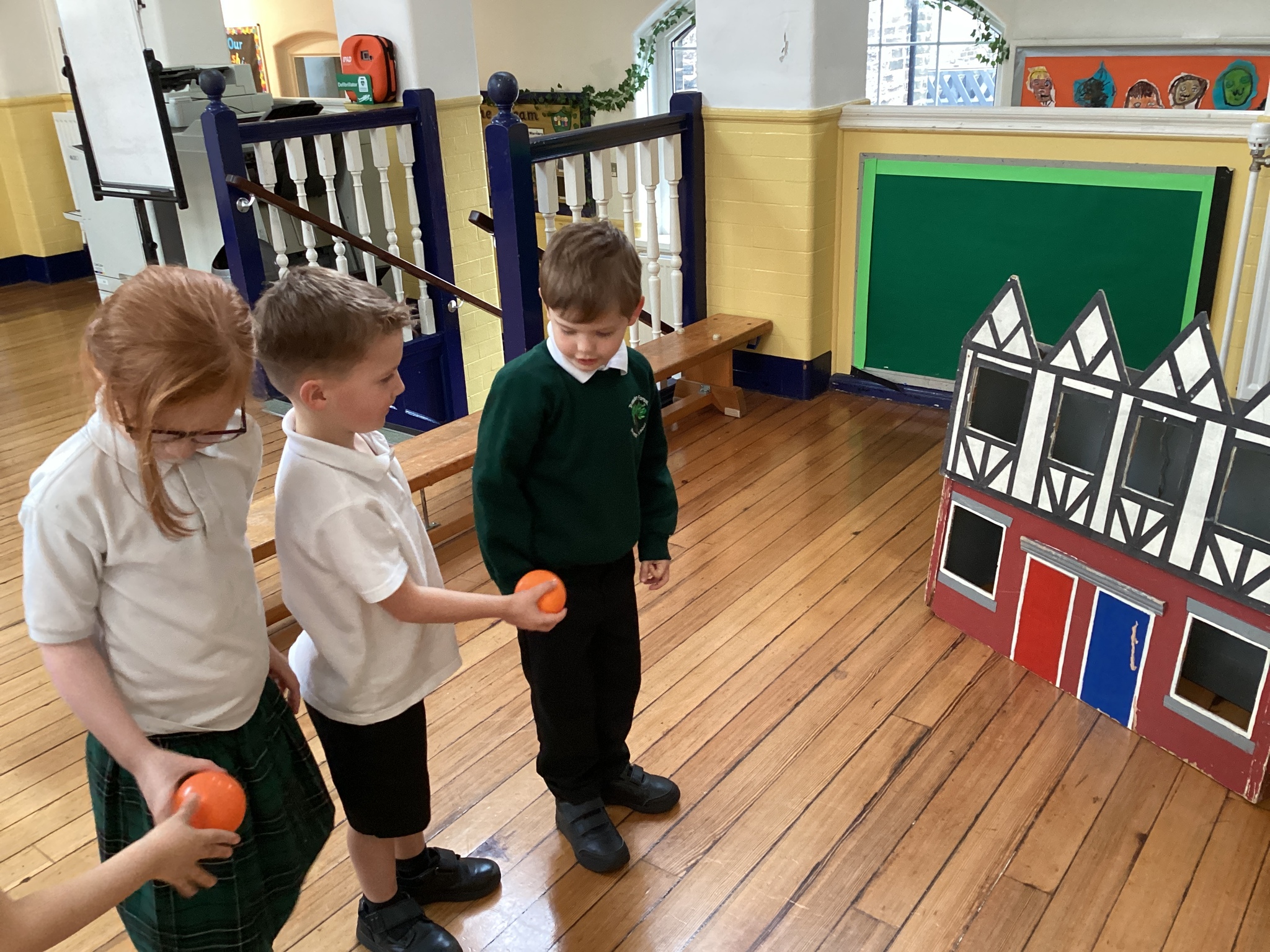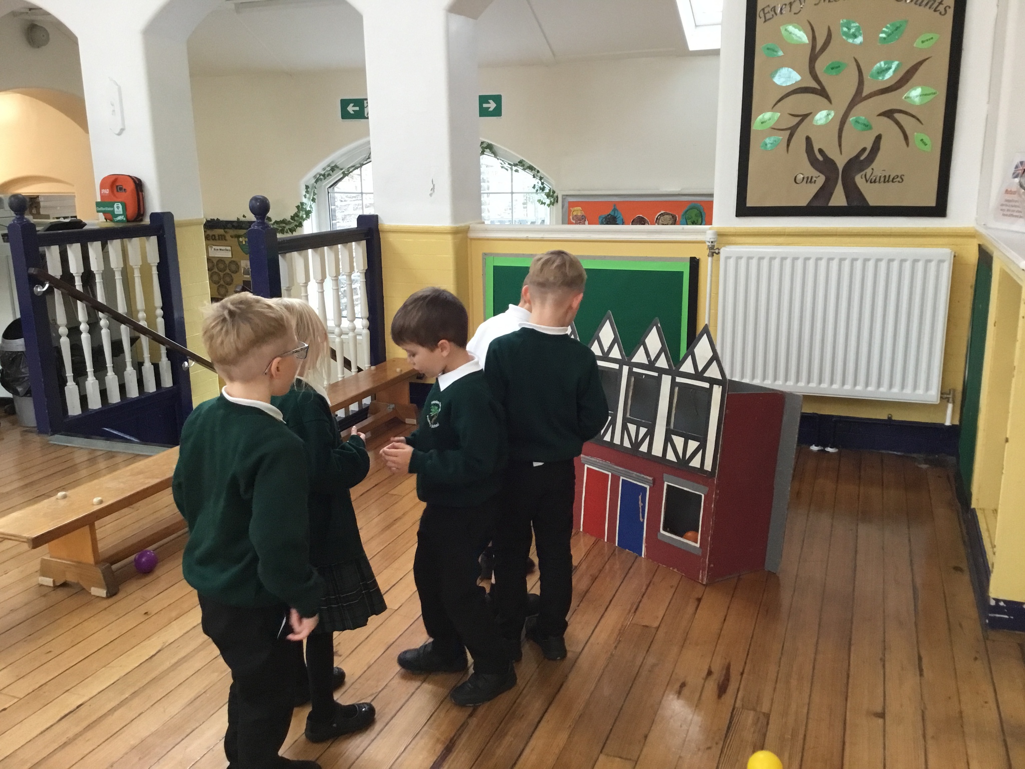 He told us all about the fire and how it started. We looked at some of the materials the houses were made from to discover why it spread so fast. The children formed a chain passing a bucket of water along until they put out the fire (Mrs Alcock!)