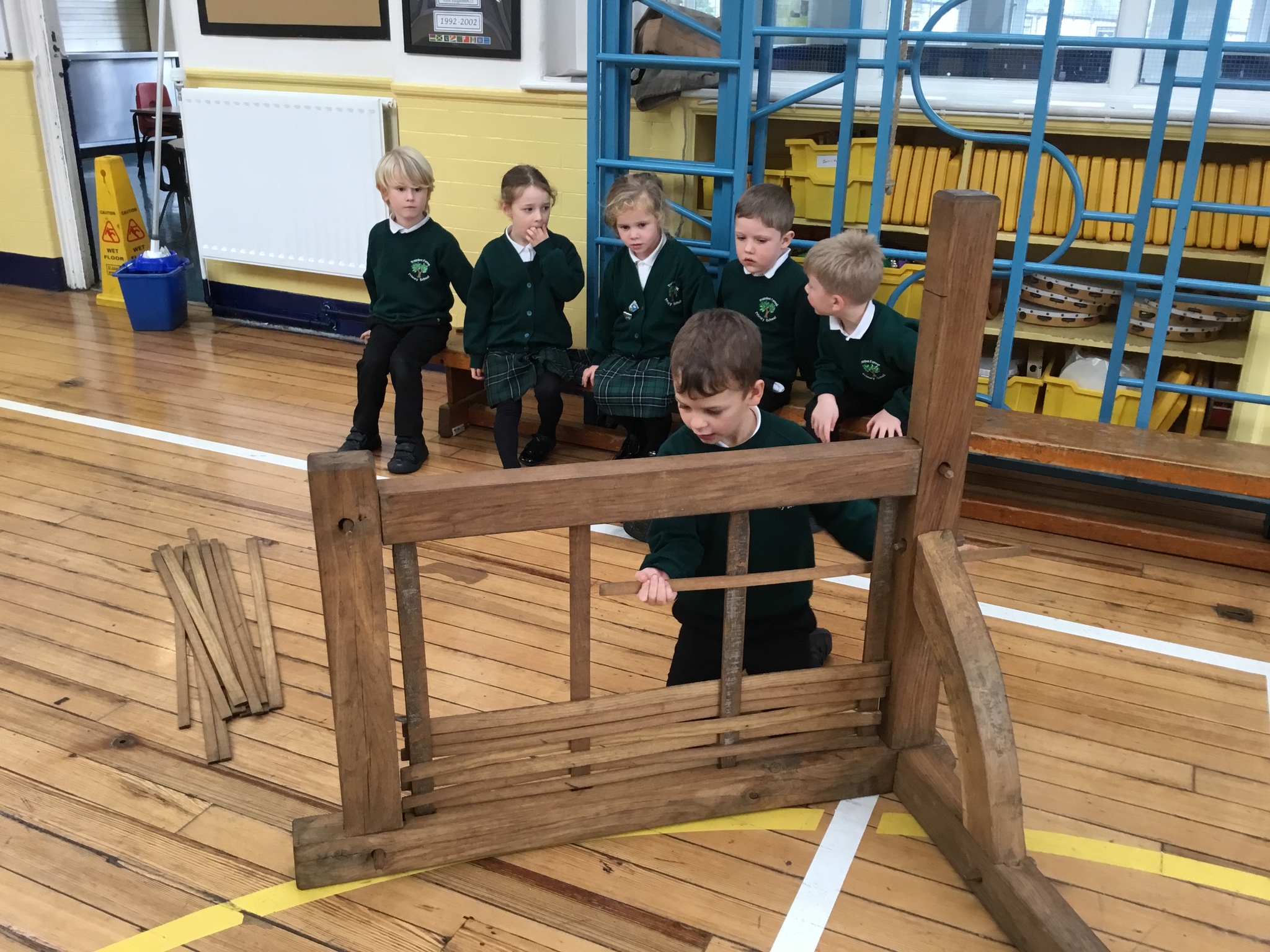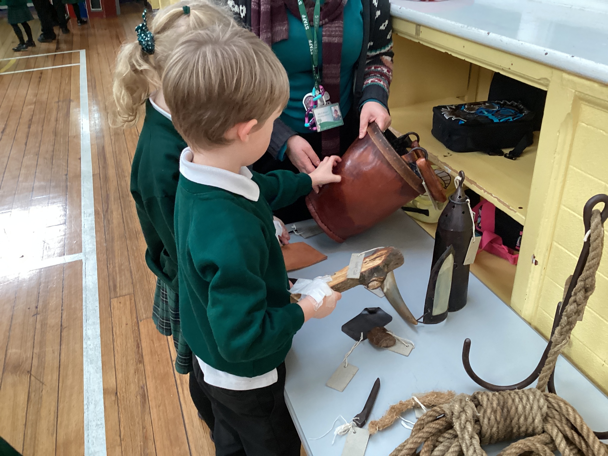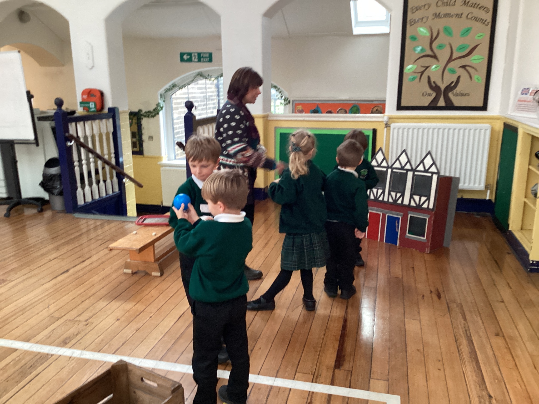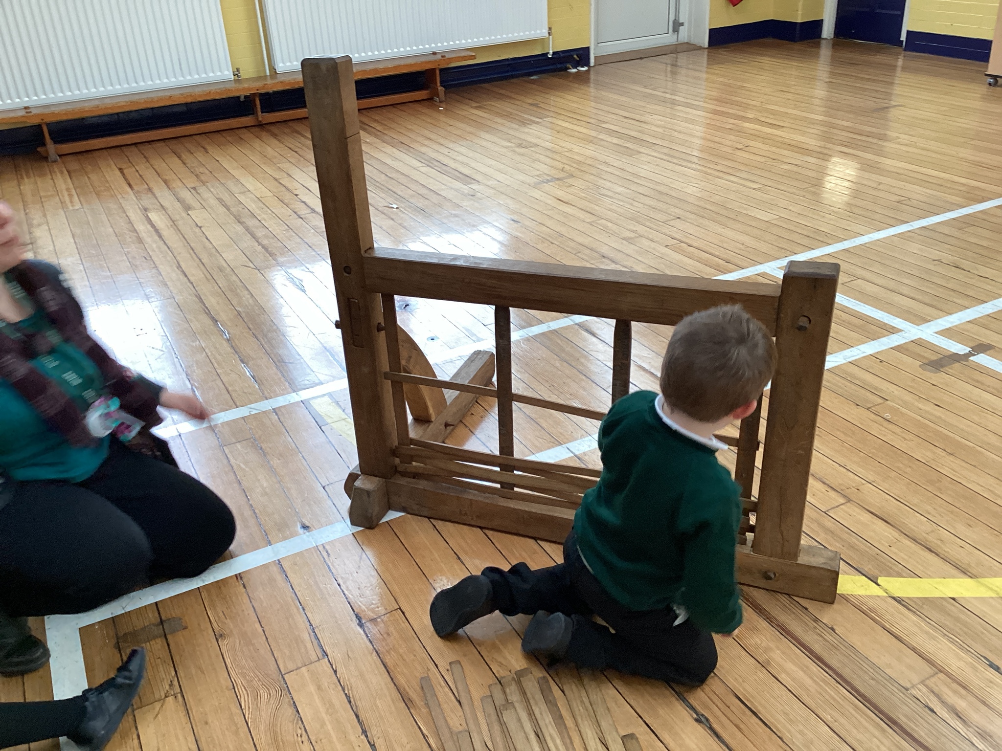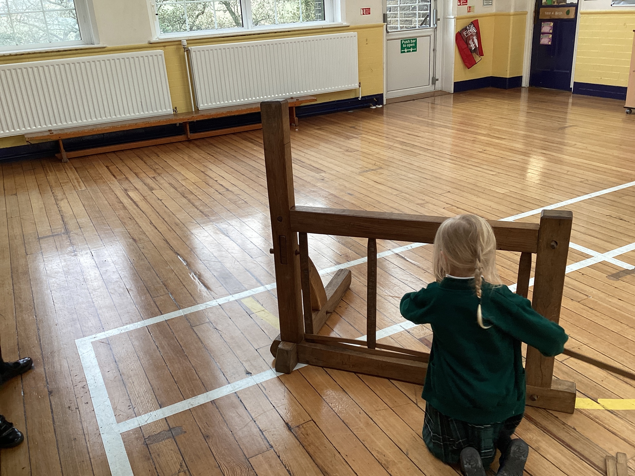He told us all about the fire and how it started. We looked at some of the materials the houses were made from to discover why it spread so fast. The children formed a chain passing a bucket of water along until they put out the fire (Mrs Alcock!)