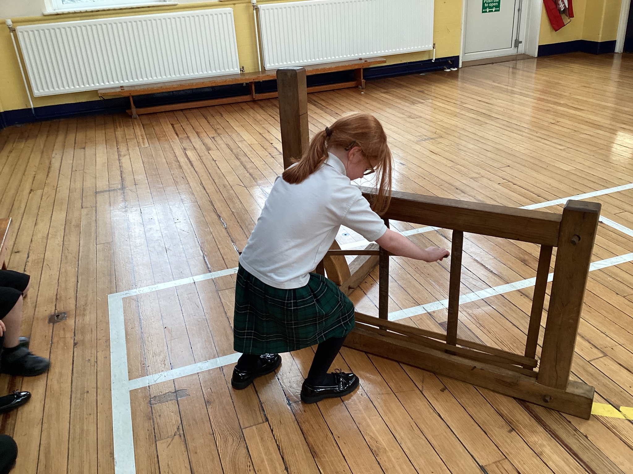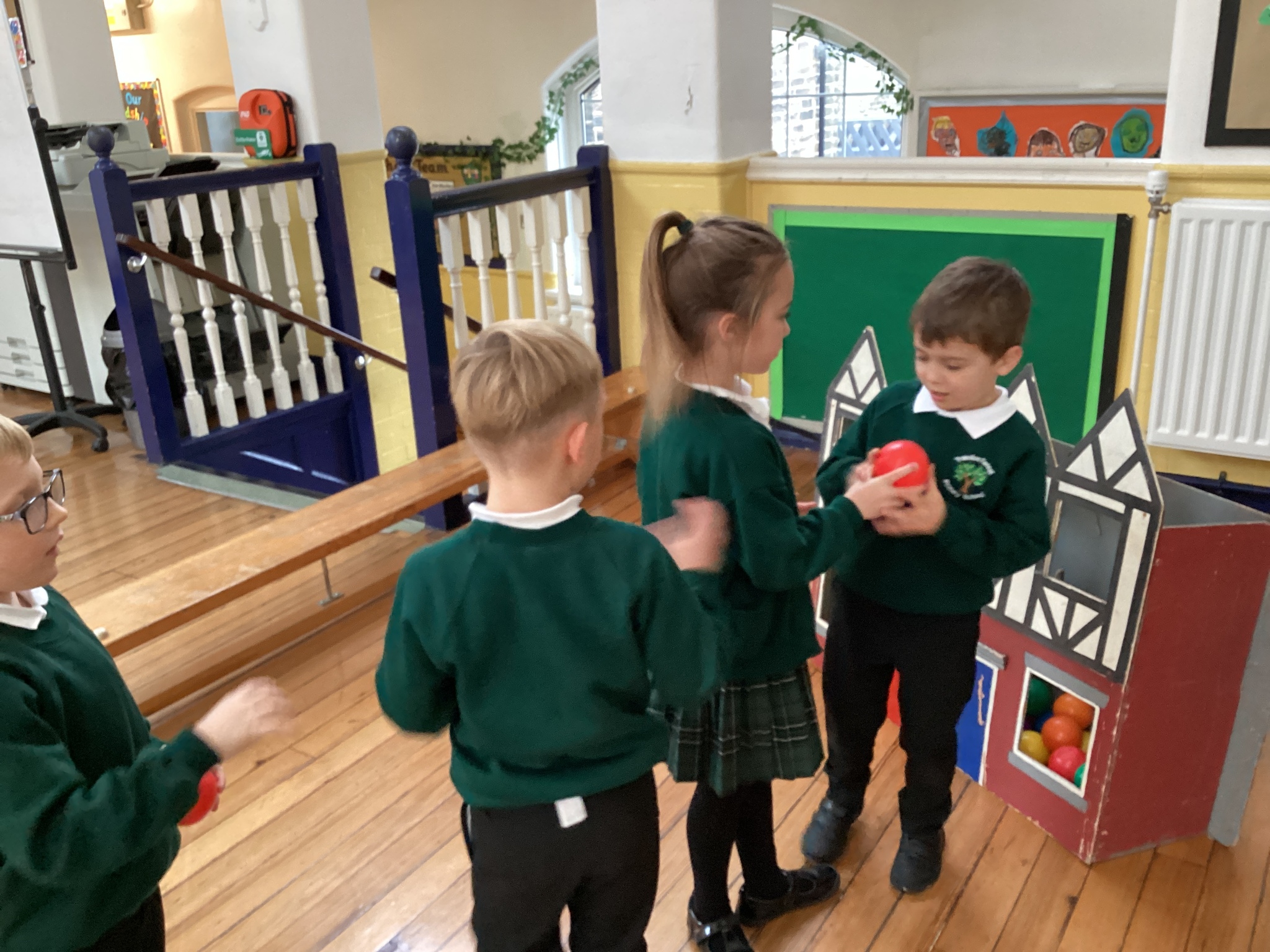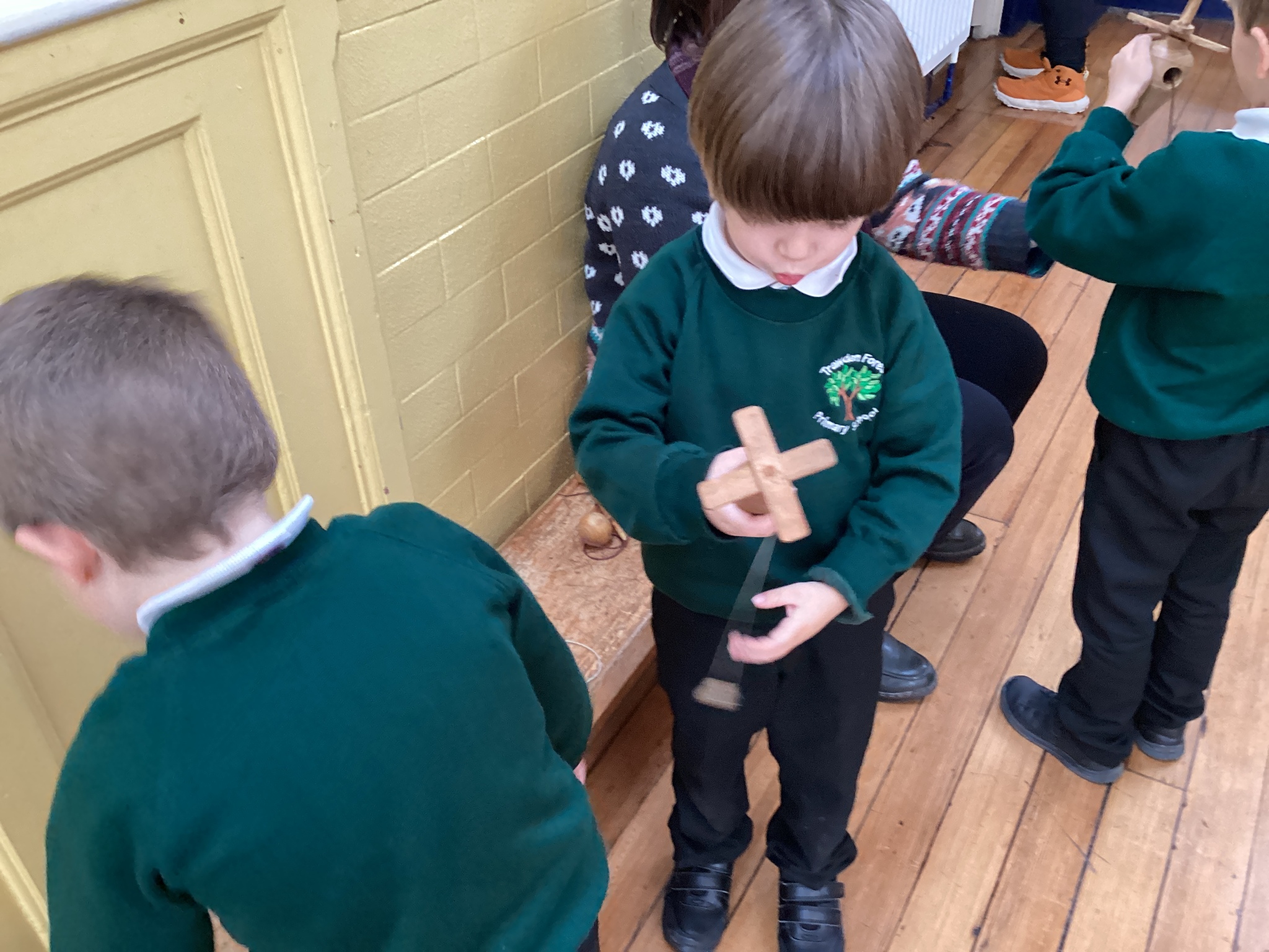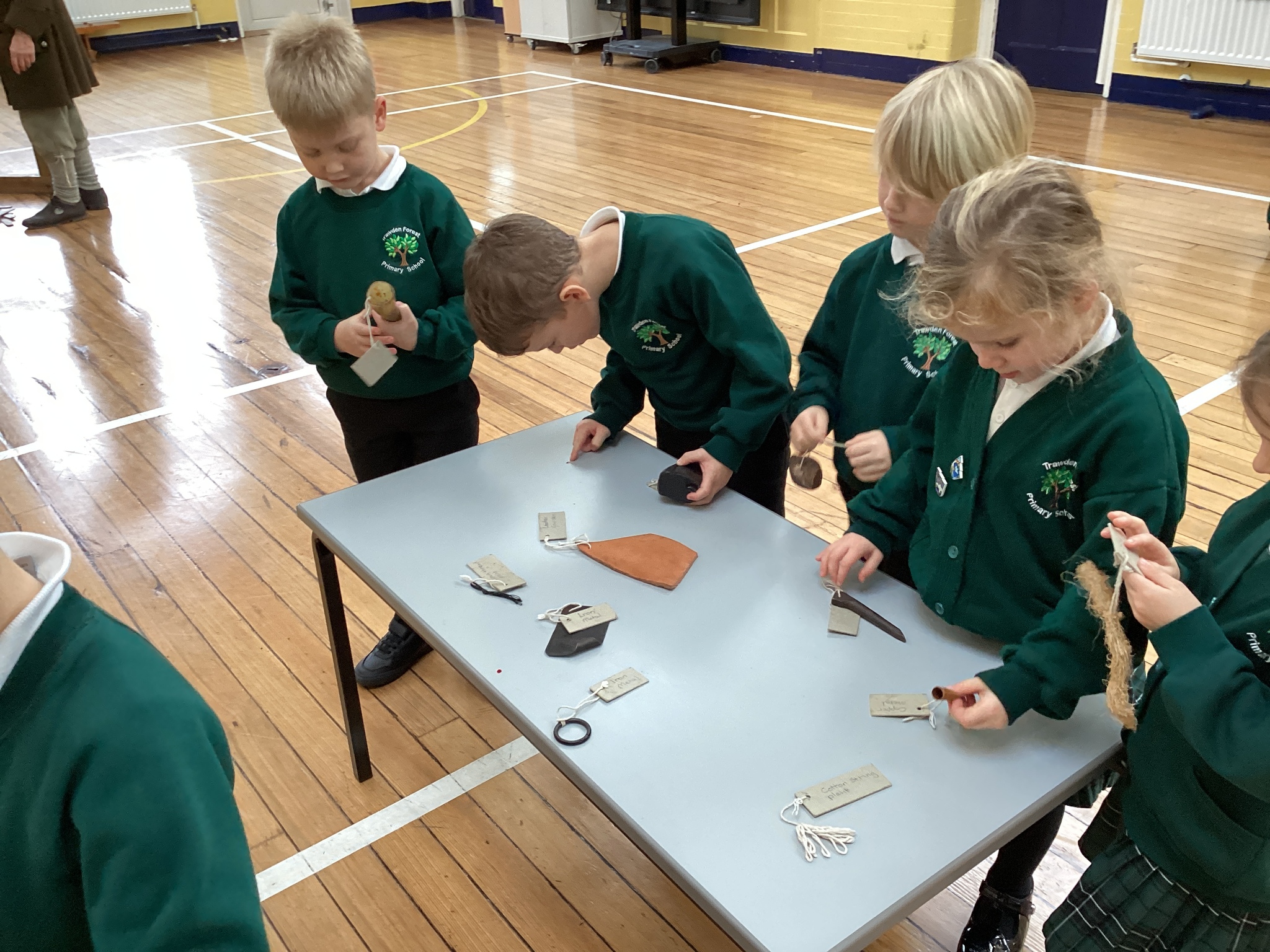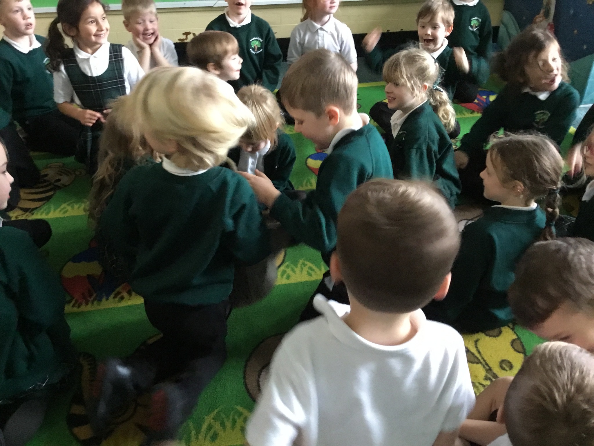 He told us all about the fire and how it started. We looked at some of the materials the houses were made from to discover why it spread so fast. The children formed a chain passing a bucket of water along until they put out the fire (Mrs Alcock!)