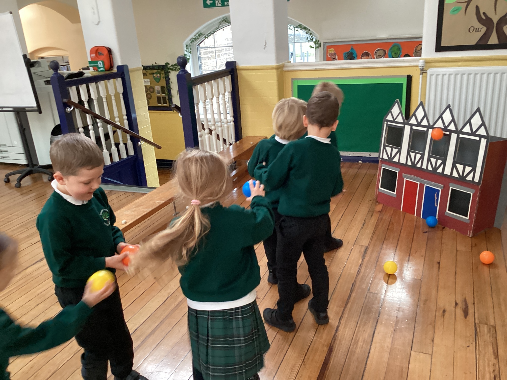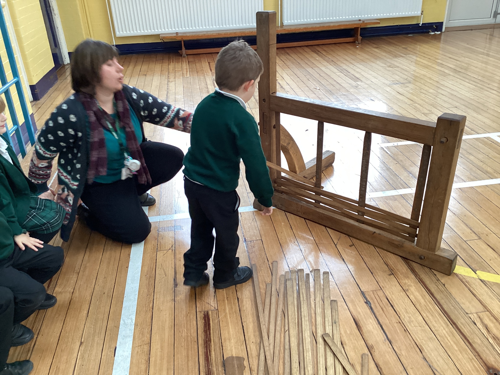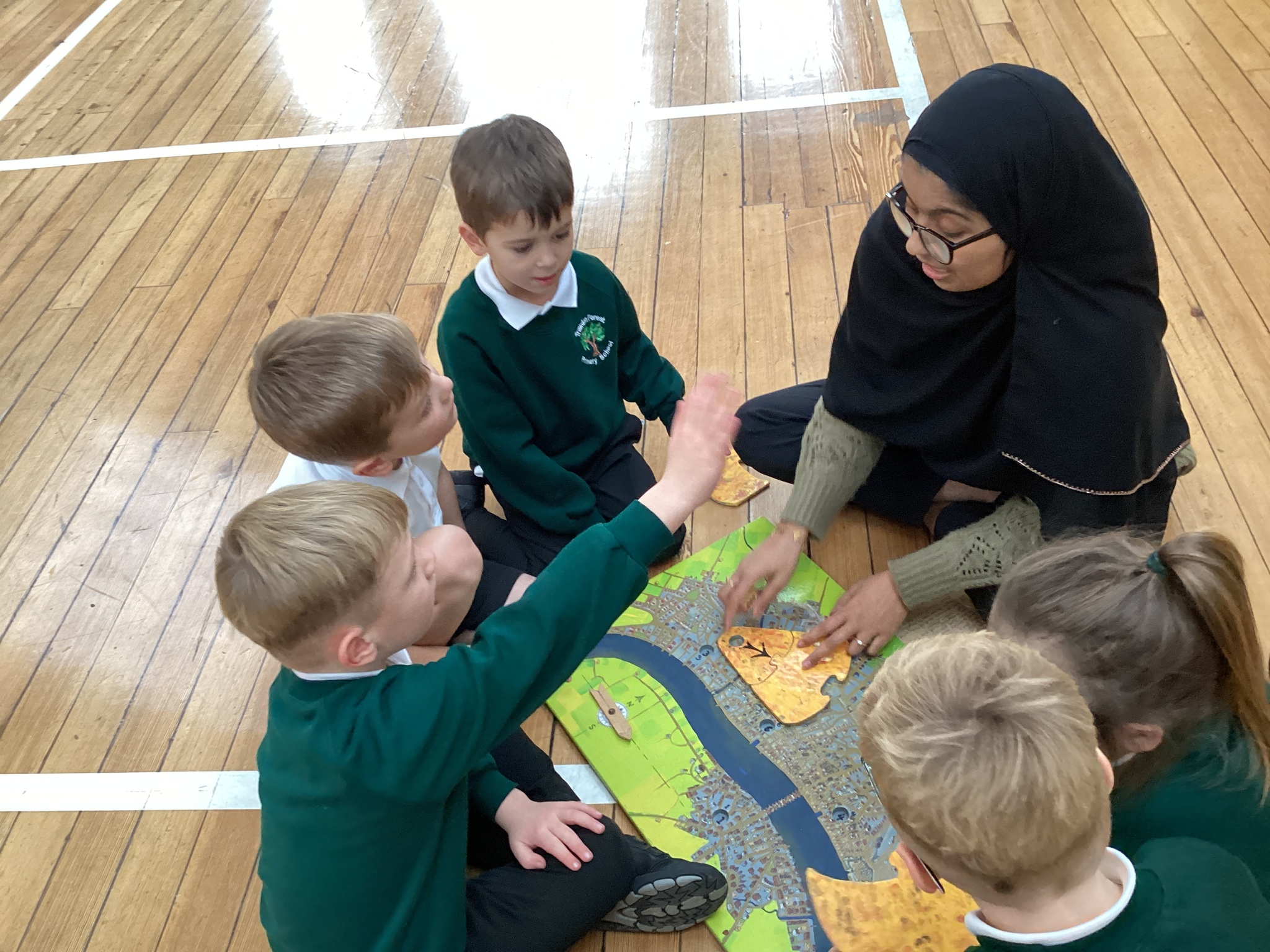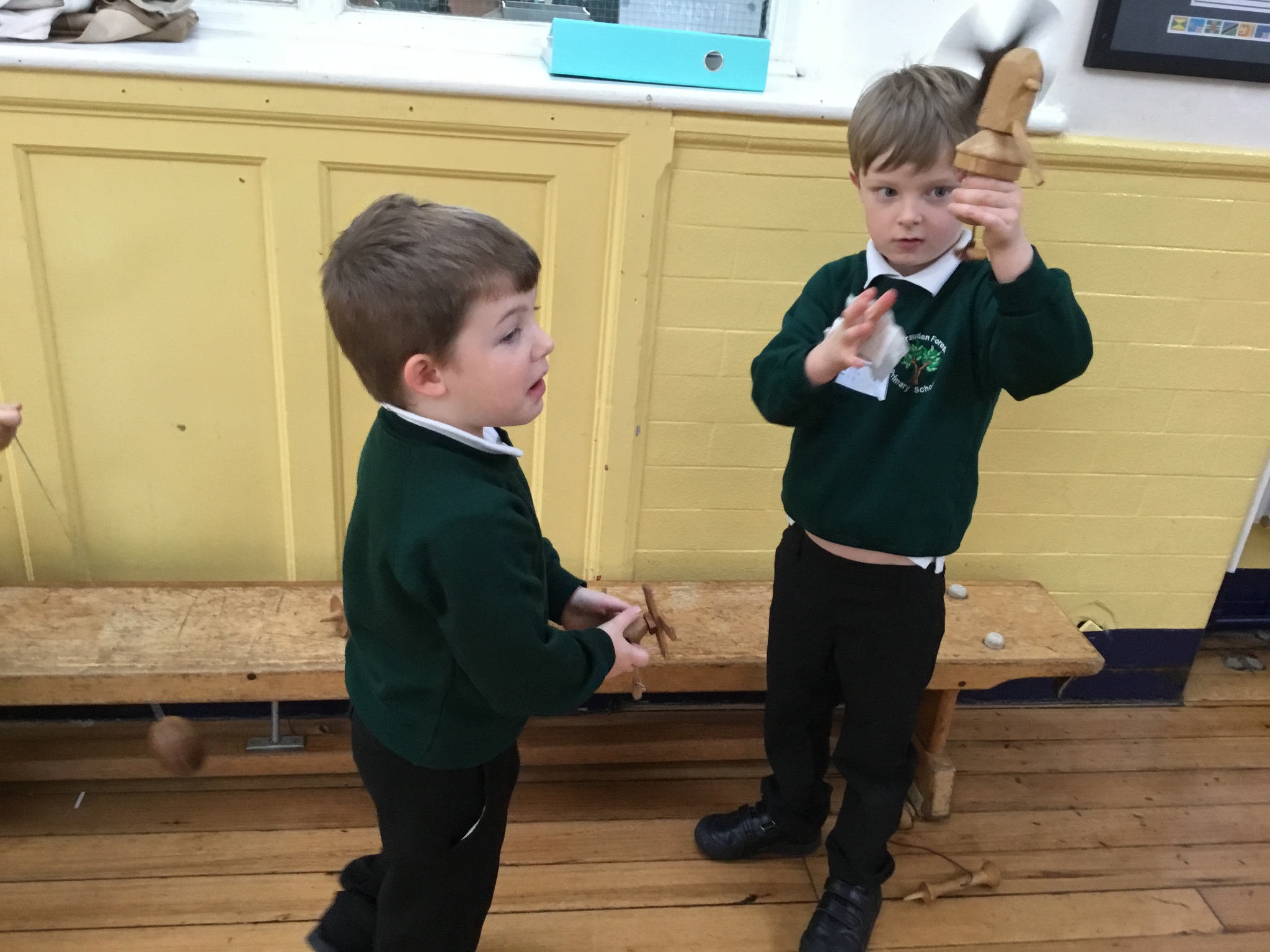 The children really enjoyed getting hands on weaving whattle walls, throwing 'buckets' on the fire and playing with toys from the time. They played a game to illustrate how far and how quickly the fire spread.