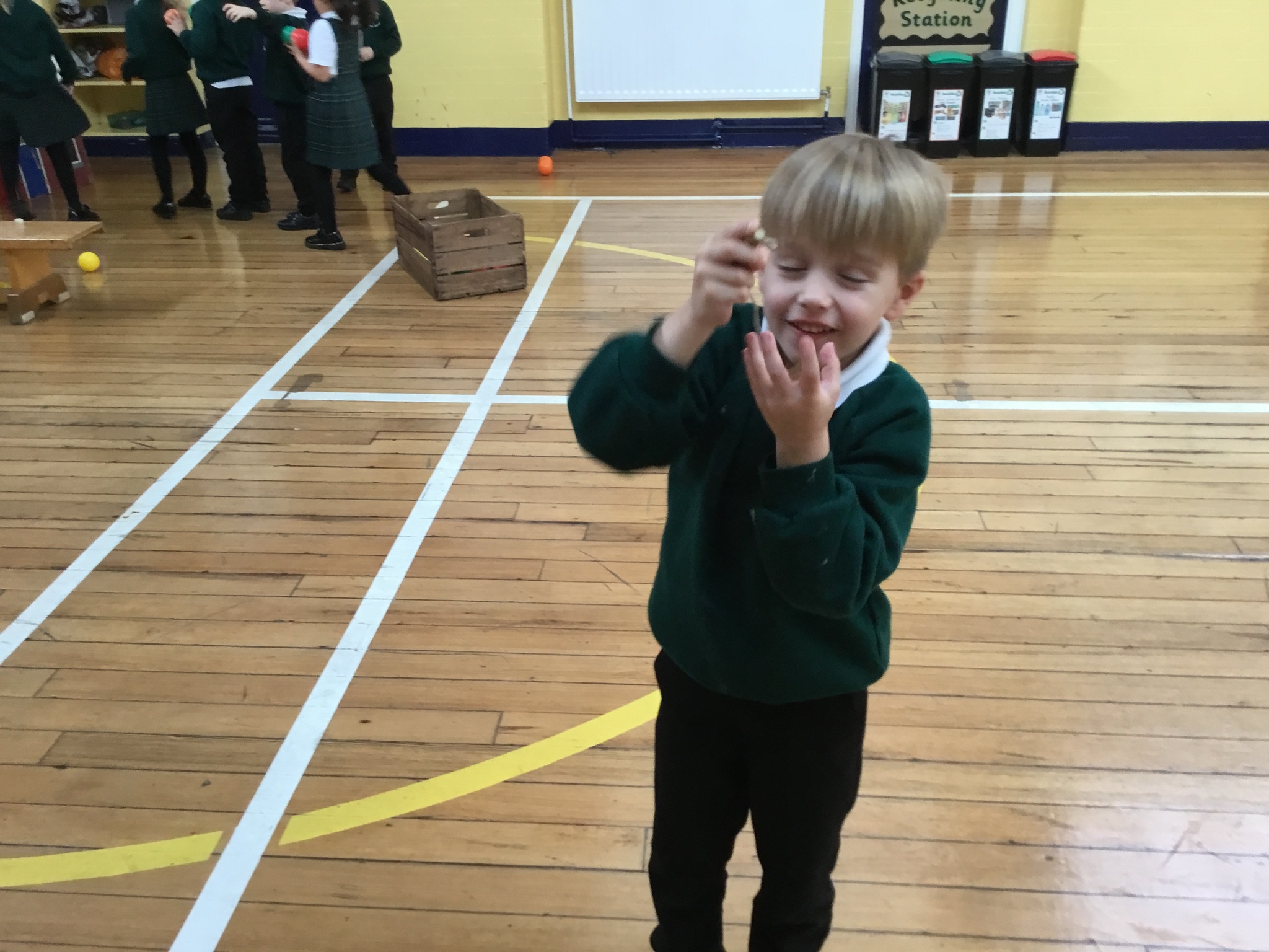 The History Man showed us how easily a spark could turn into a fire and we pretended to be houses close together spreading the flames. We then pretended to blow up some houses to cerate a fire break but that didn't stop Noah getting a bucket on his head!