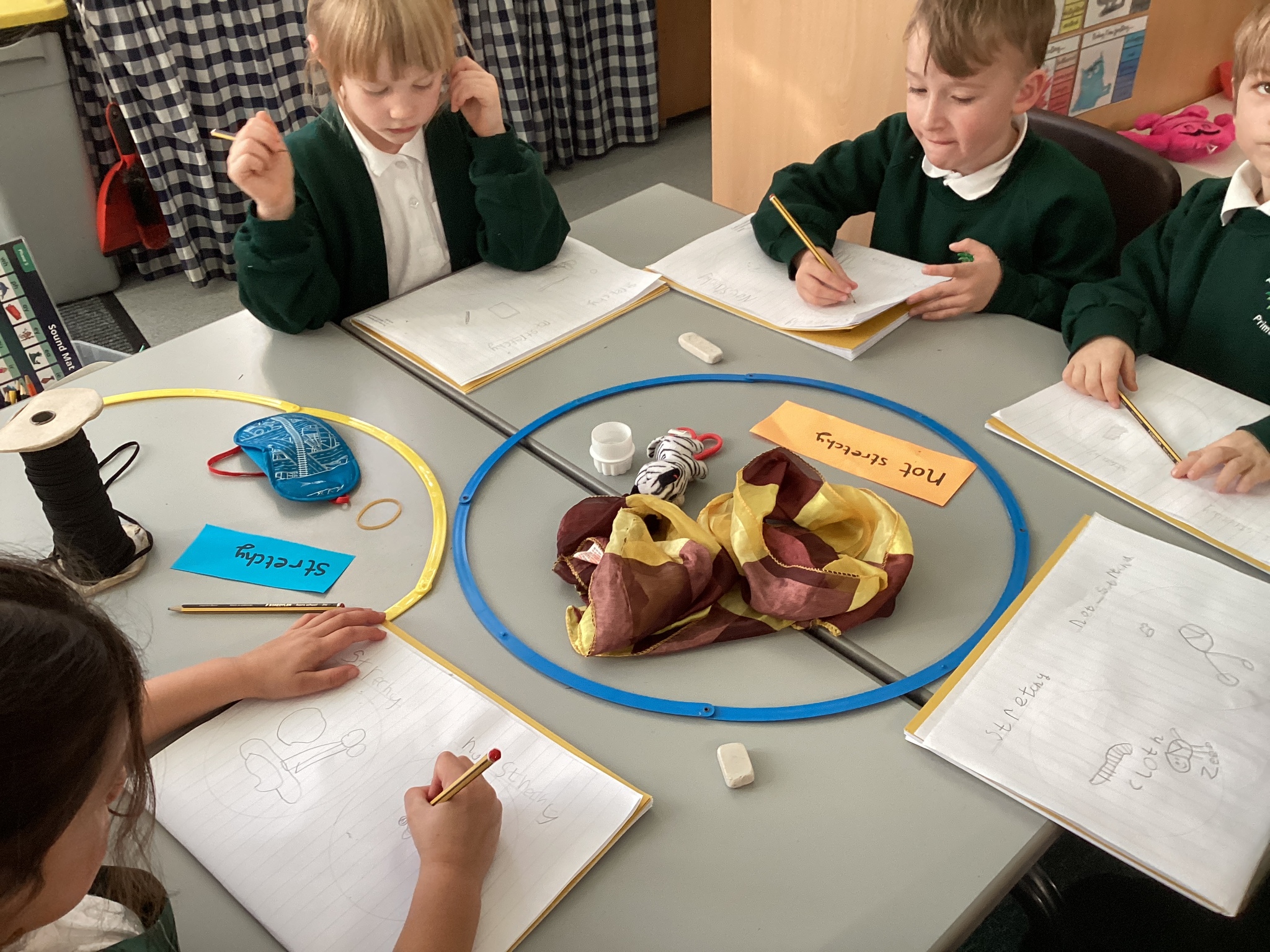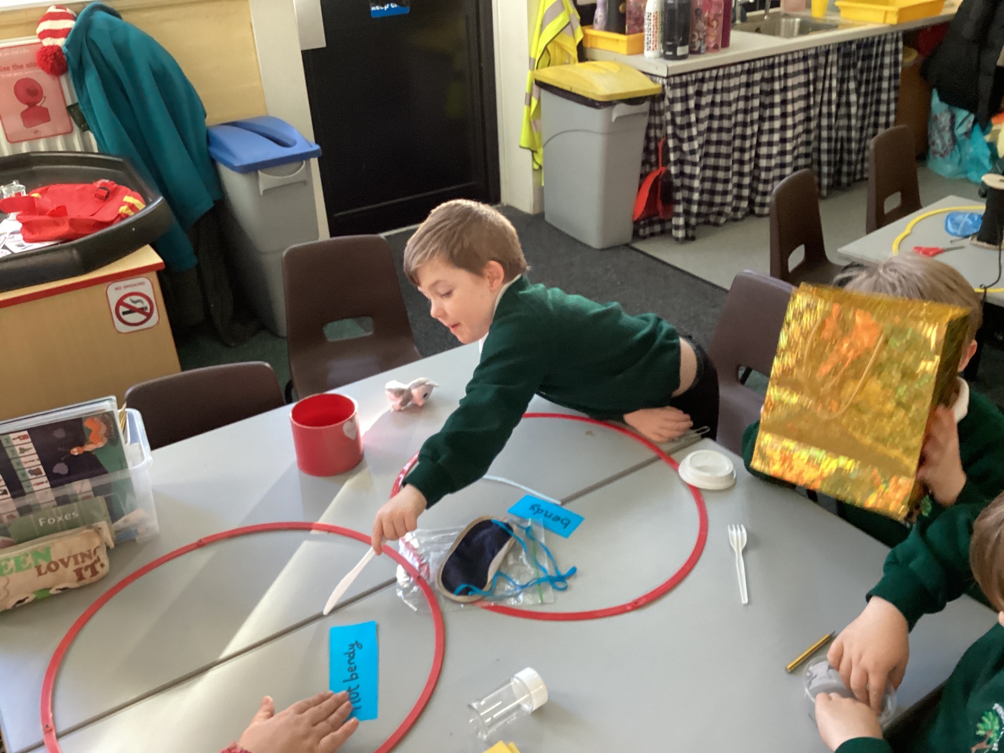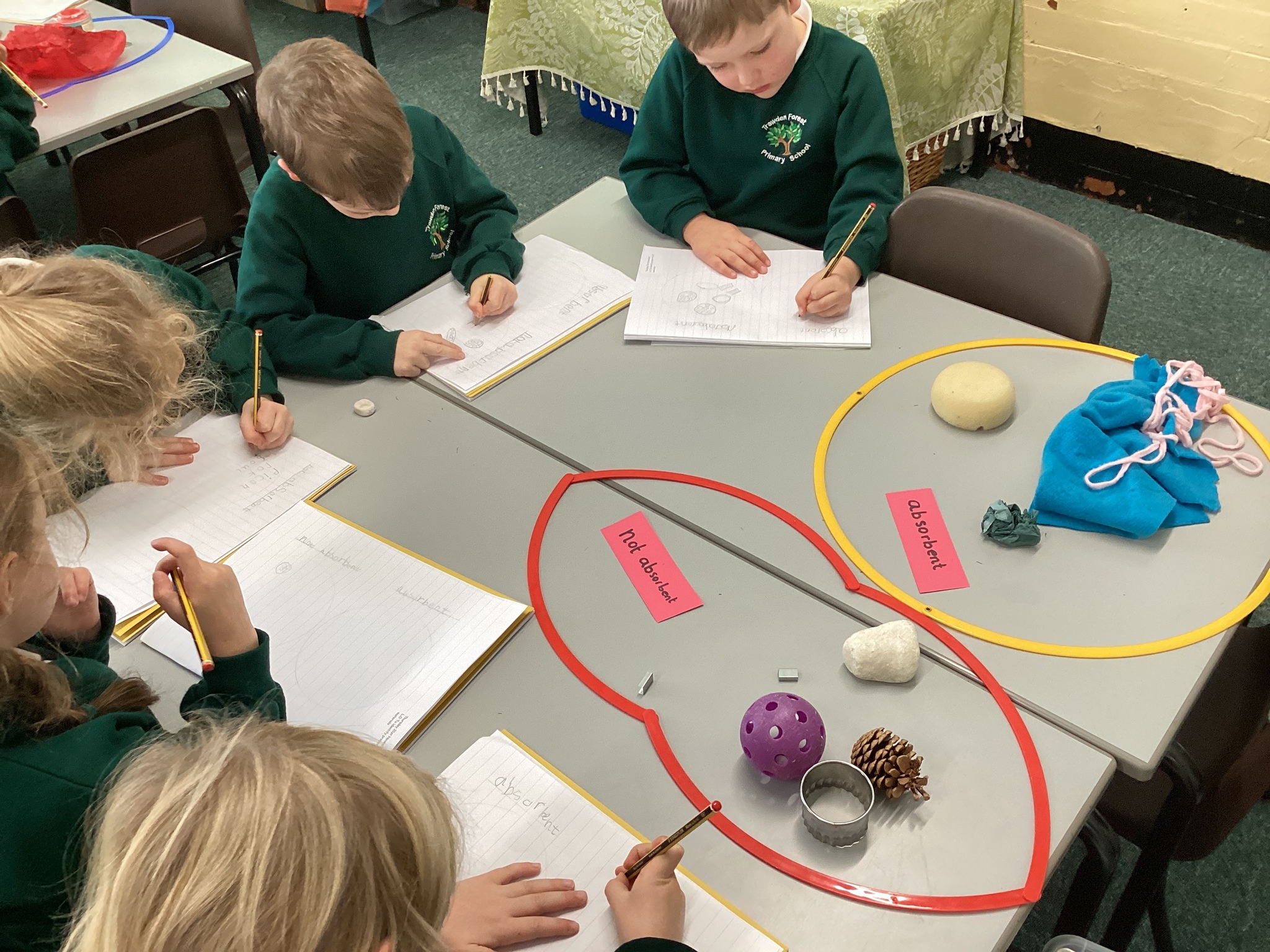 Given a selection of objects we sorted them according to whether they had a certain property or not. One group were not surprised to find a sponge is more absorbent than a rock but others were confused when a piece of wood floated but a conker sank!