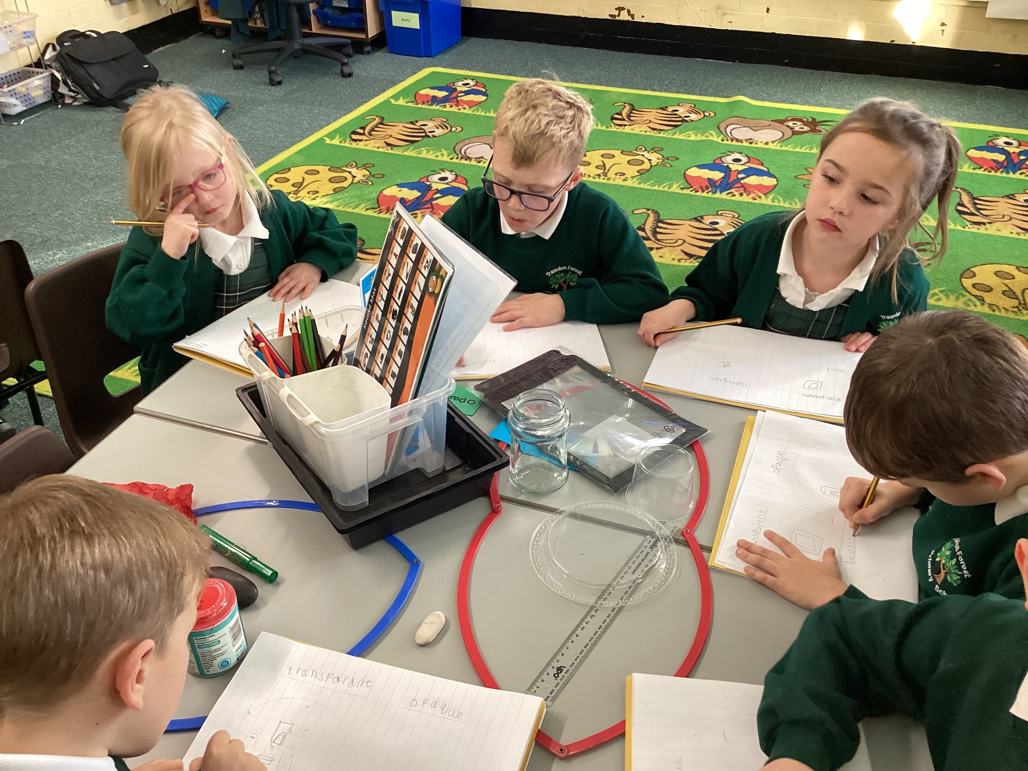 We talked about what a property is and learned what absorbent, transparent, opaque, stretchy, bouyant and bendy mean.