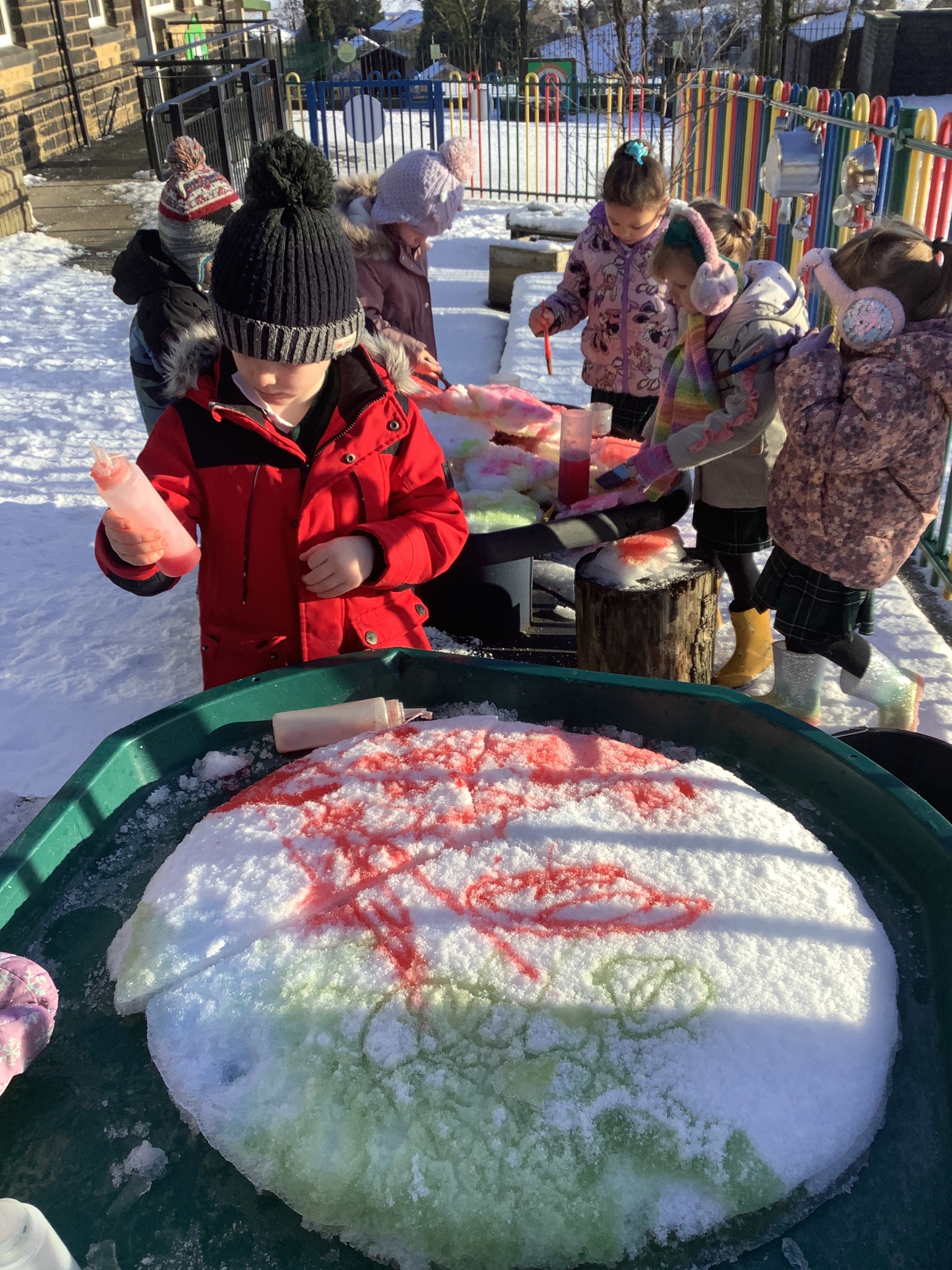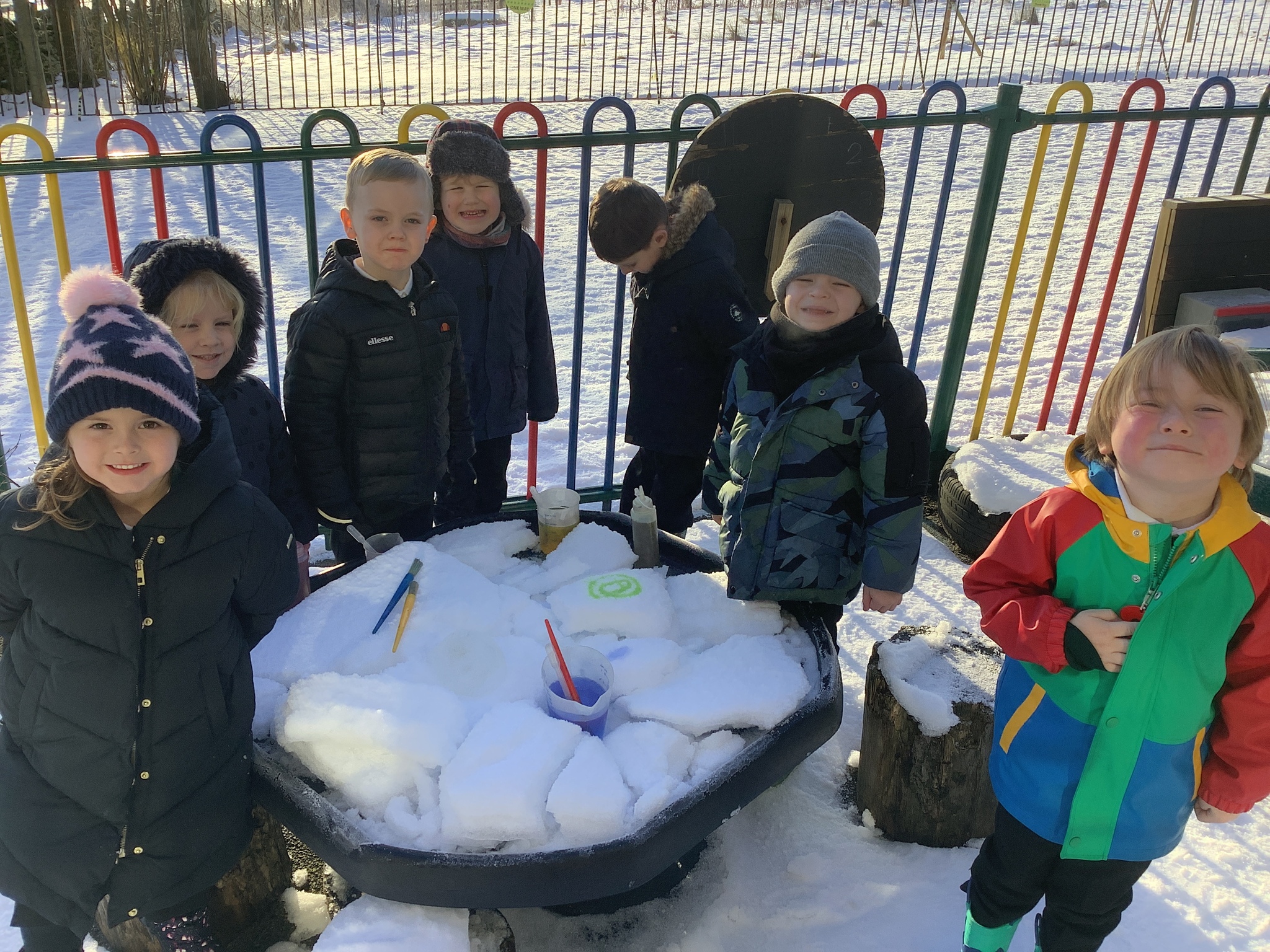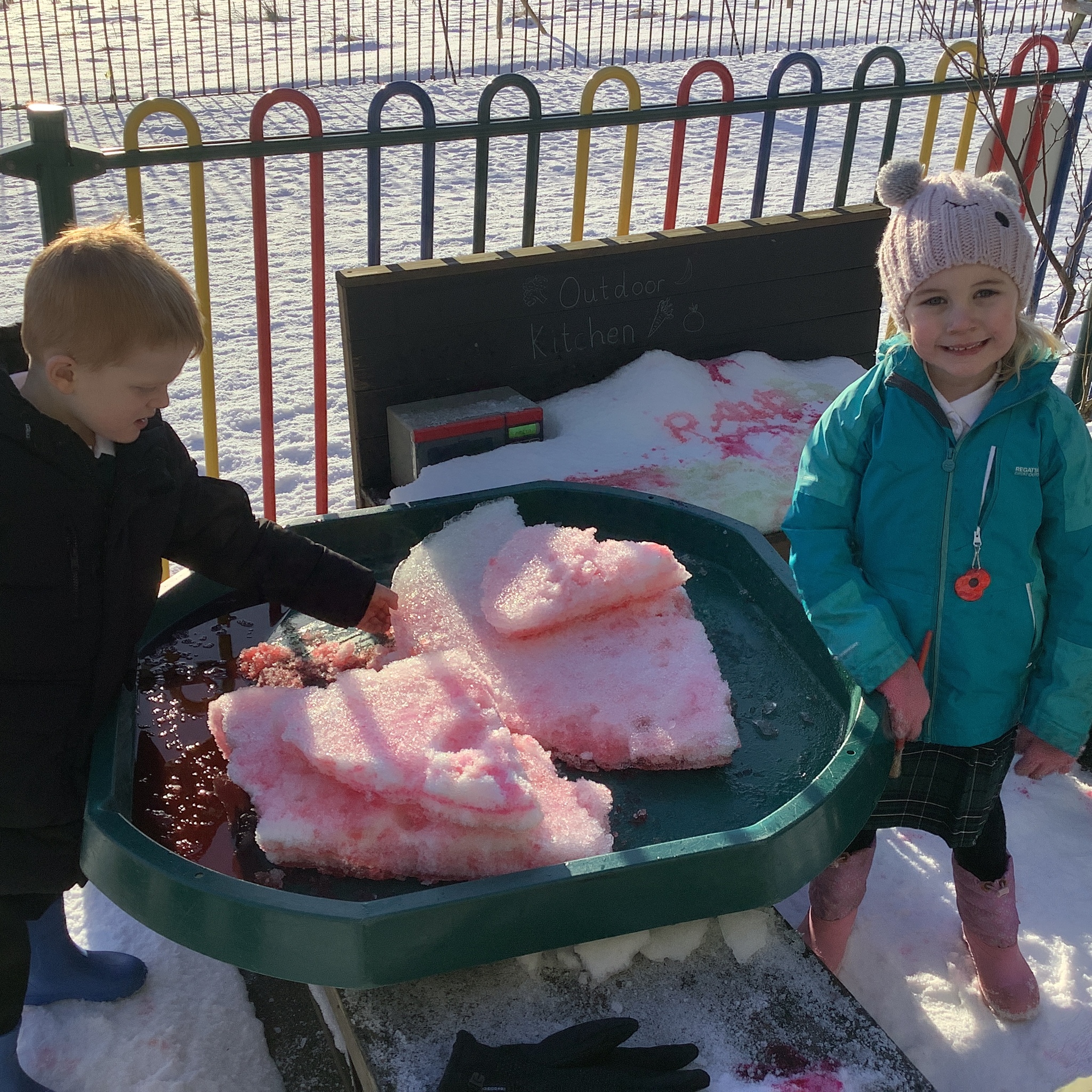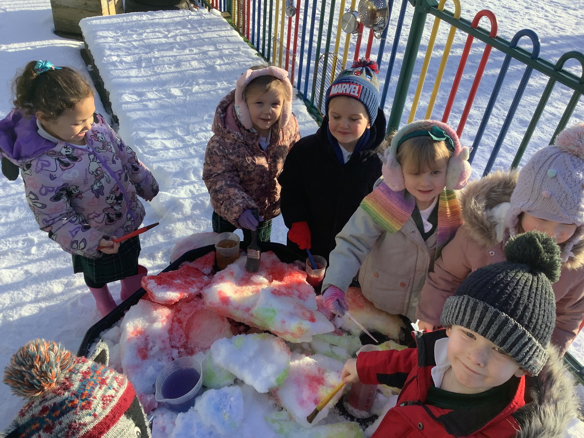 EYFS have had a very icy week in school but it hasn't stopped us from having lots of fun! Some of the children took their turn to read with Sofia, our therapy dog. They absolutely love this quality time with her and enjoy listening to stories. We have started our new topic about people who help us and found out about how dentists help us to look after our teeth. We did an experiment to see what would happen to apples if we broke their skin by making holes in them. This helped us to understand how the enamel on our teeth is important and why we need to make sure we brush our teeth. We ended the week with some colourful snow and ice painting.