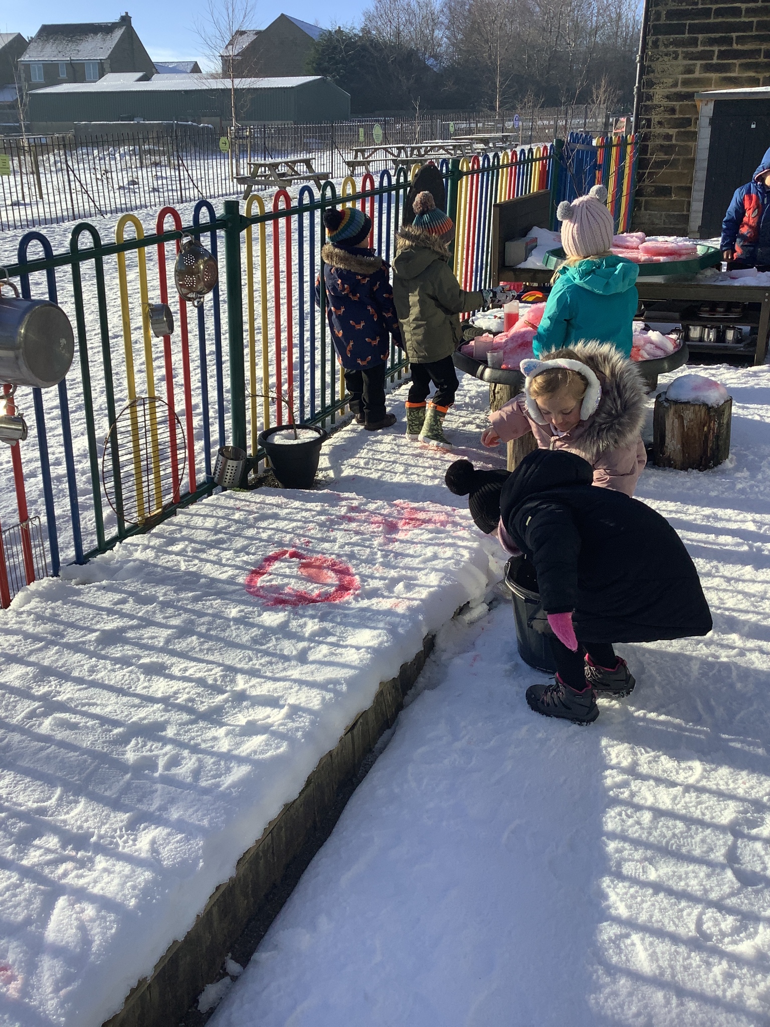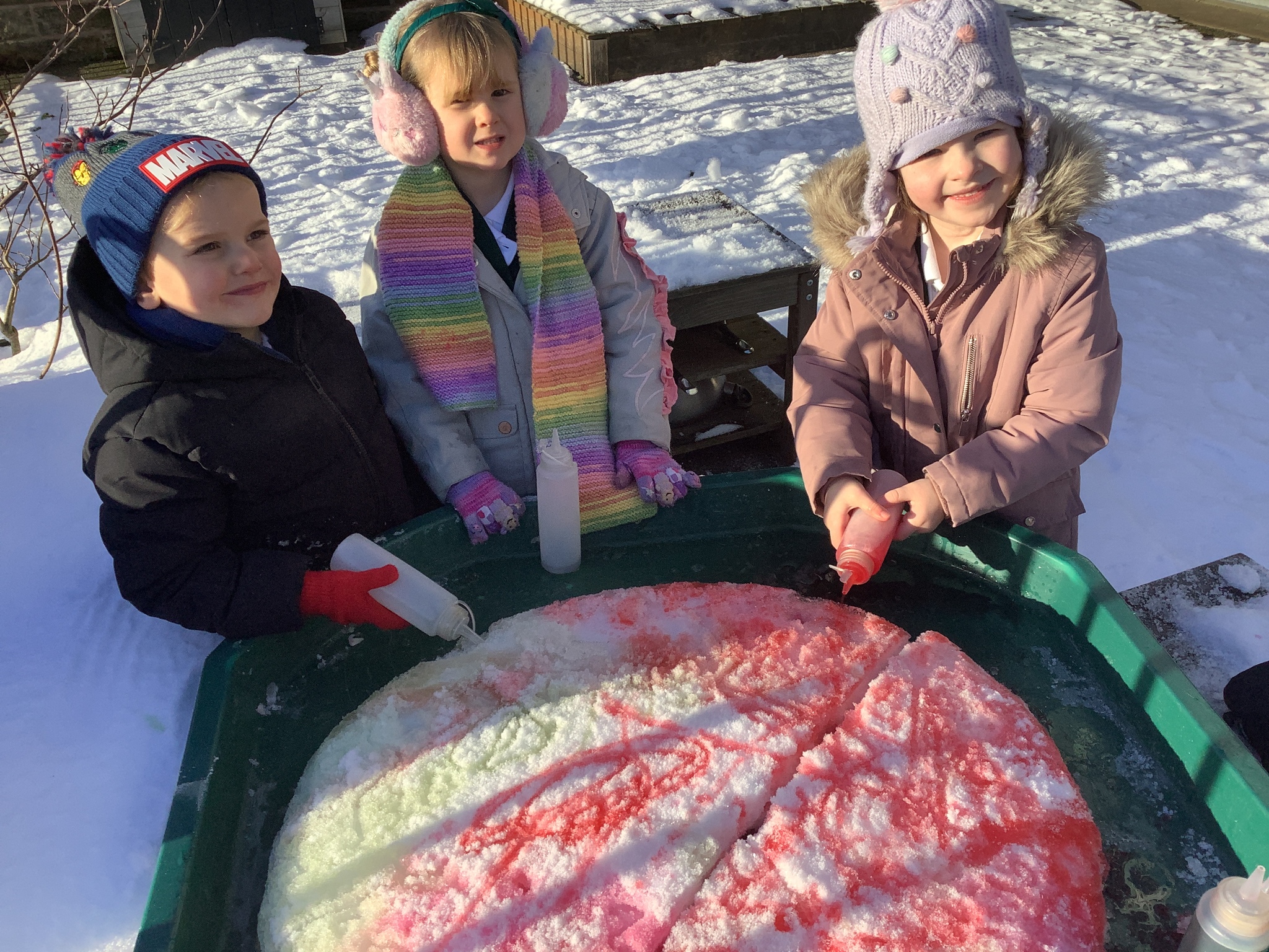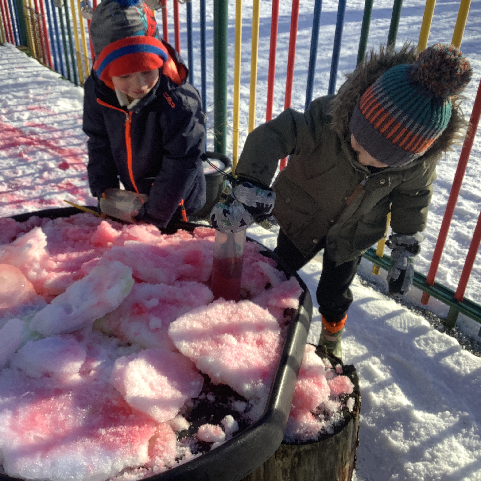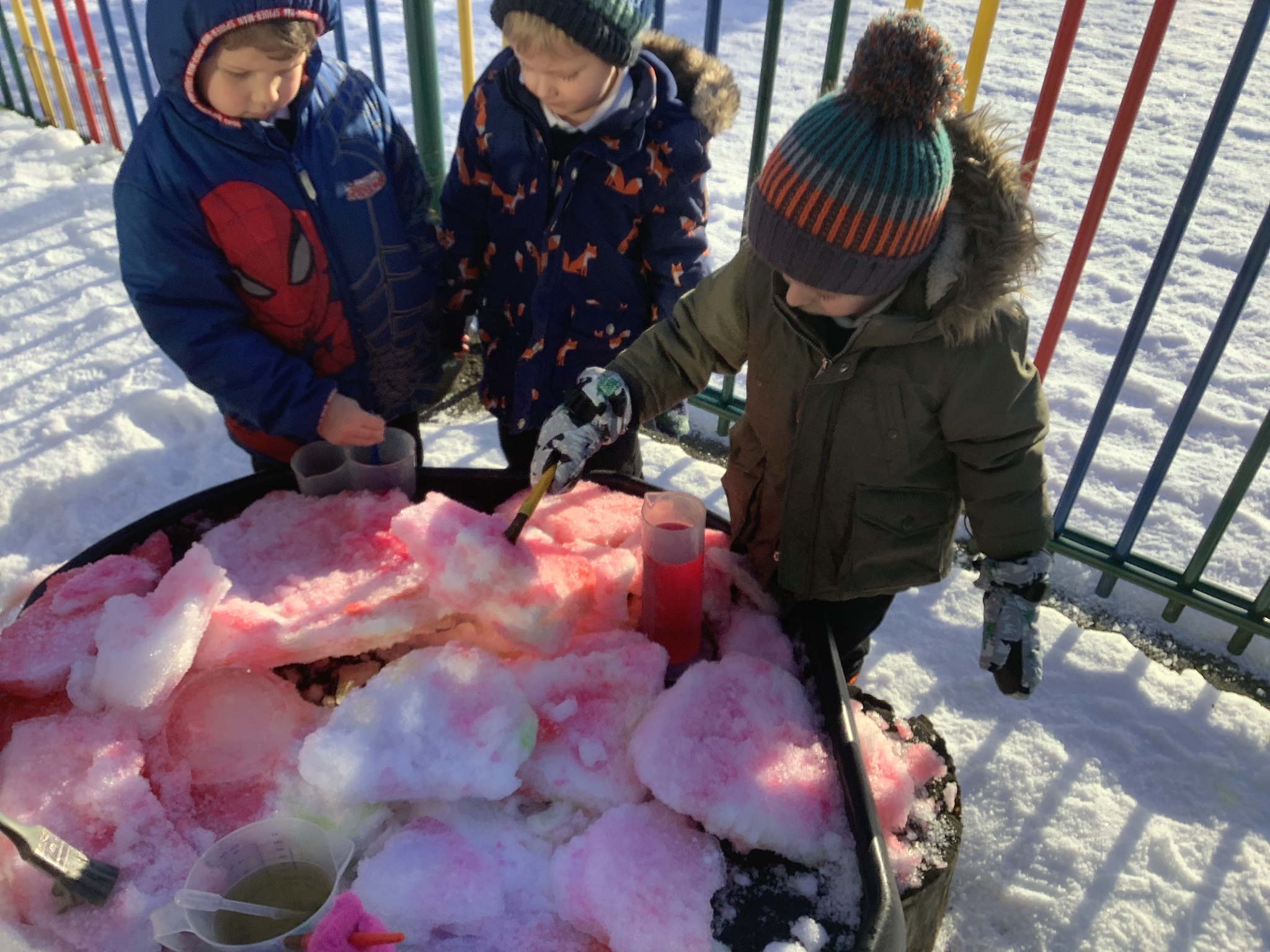 EYFS have had a very icy week in school but it hasn't stopped us from having lots of fun! Some of the children took their turn to read with Sofia, our therapy dog. They absolutely love this quality time with her and enjoy listening to stories. We have started our new topic about people who help us and found out about how dentists help us to look after our teeth. We did an experiment to see what would happen to apples if we broke their skin by making holes in them. This helped us to understand how the enamel on our teeth is important and why we need to make sure we brush our teeth. We ended the week with some colourful snow and ice painting.