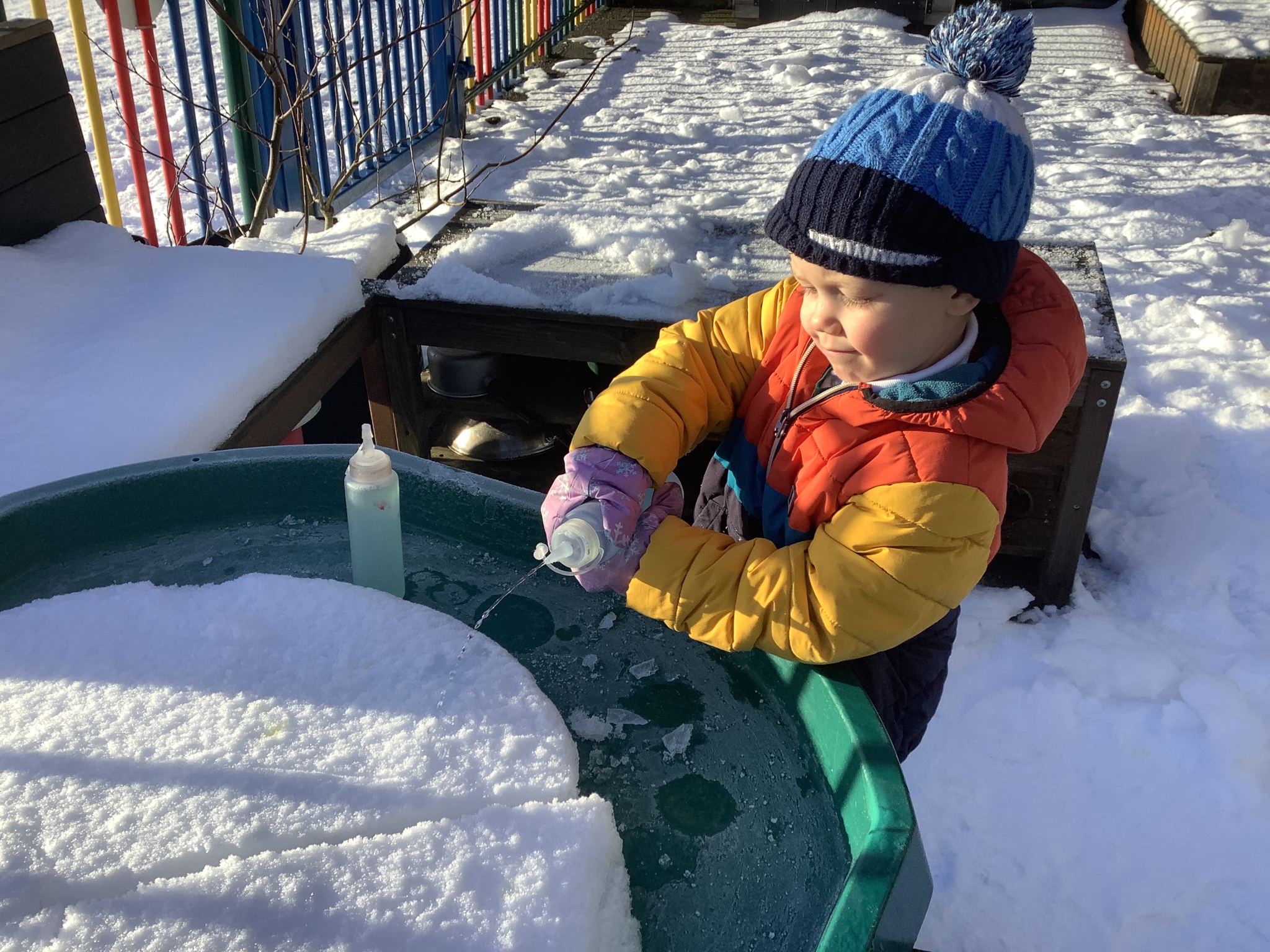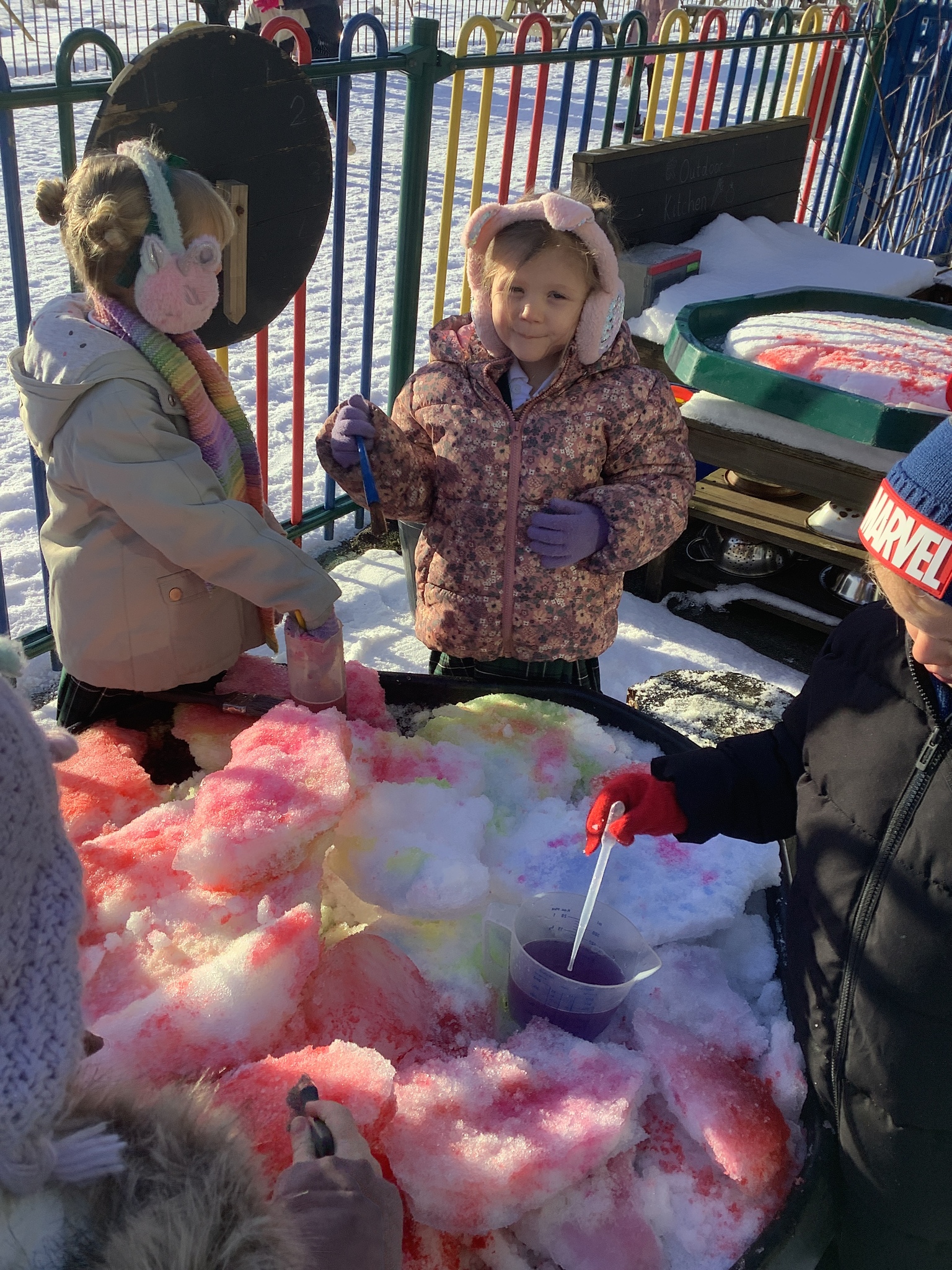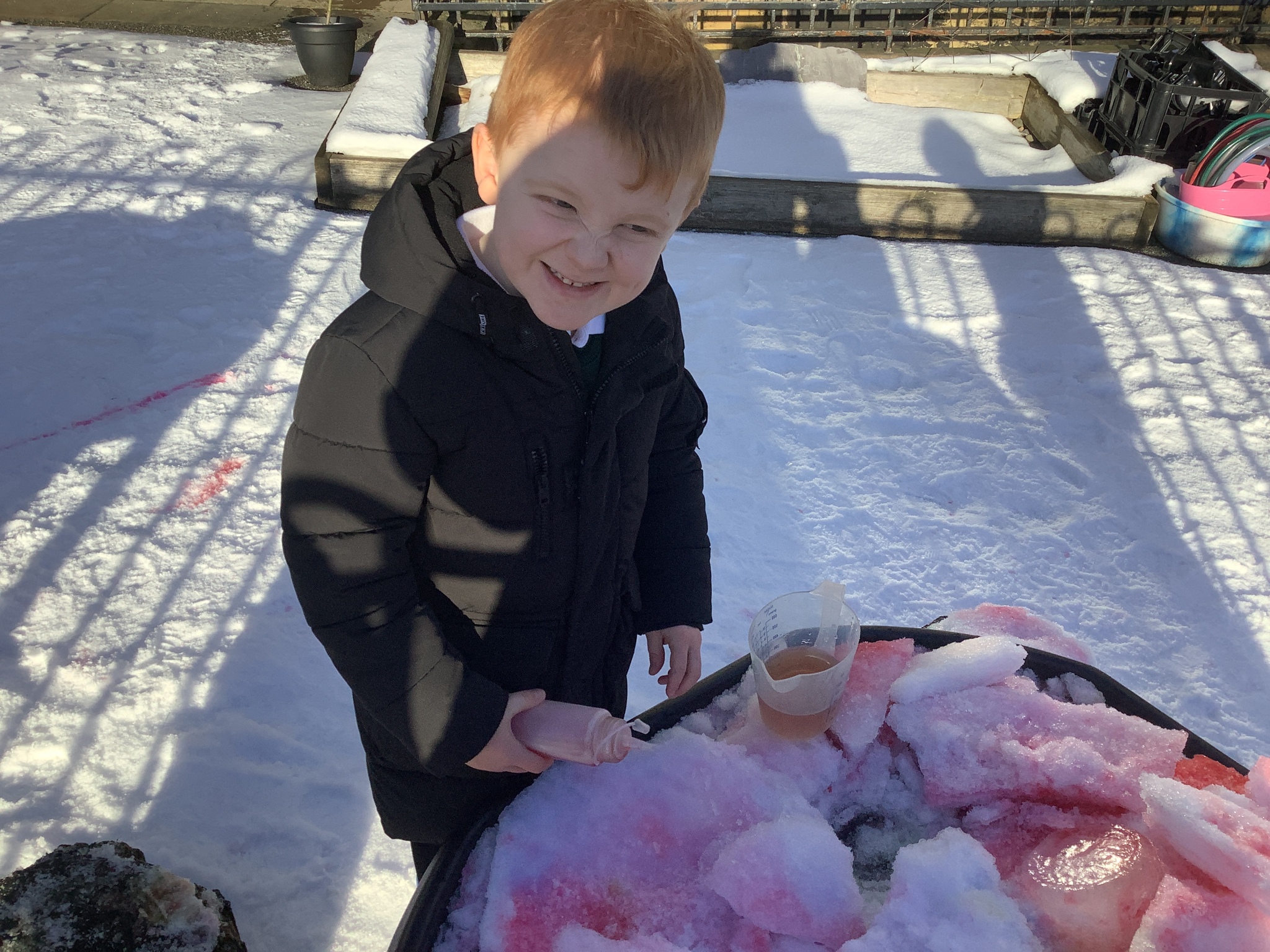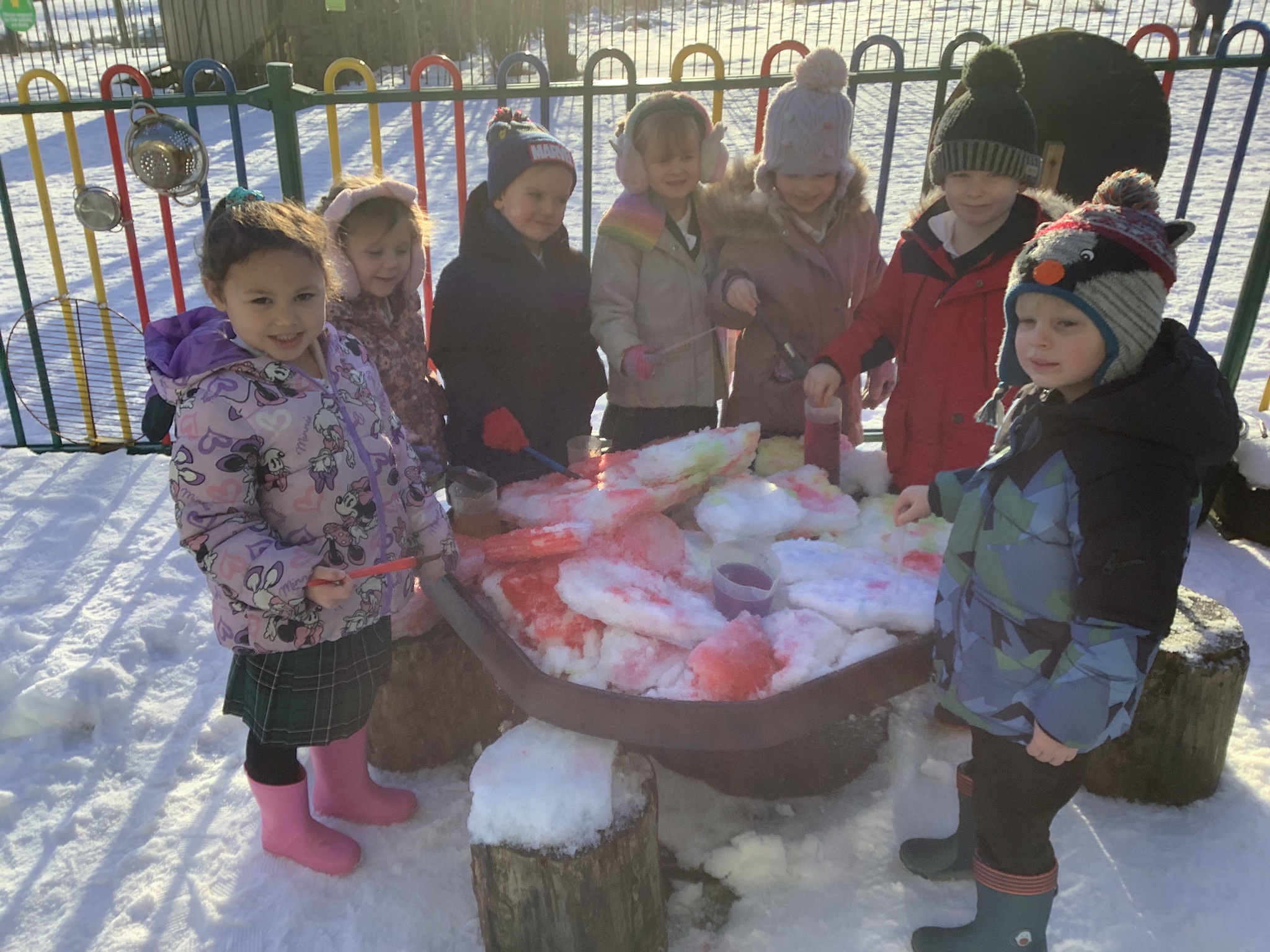 EYFS have had a very icy week in school but it hasn't stopped us from having lots of fun! Some of the children took their turn to read with Sofia, our therapy dog. They absolutely love this quality time with her and enjoy listening to stories. We have started our new topic about people who help us and found out about how dentists help us to look after our teeth. We did an experiment to see what would happen to apples if we broke their skin by making holes in them. This helped us to understand how the enamel on our teeth is important and why we need to make sure we brush our teeth. We ended the week with some colourful snow and ice painting.