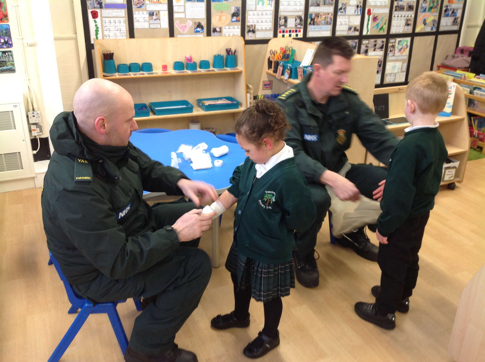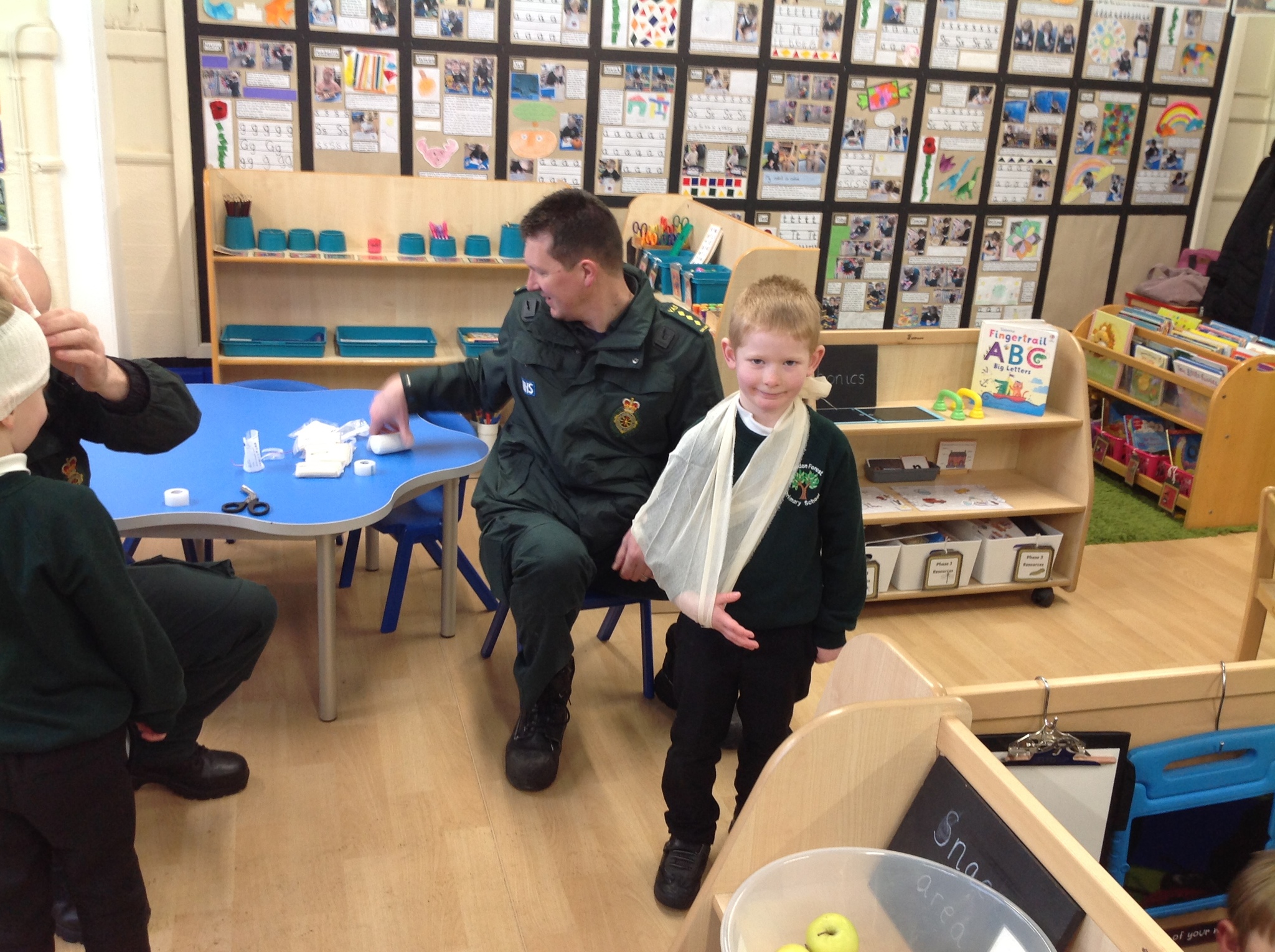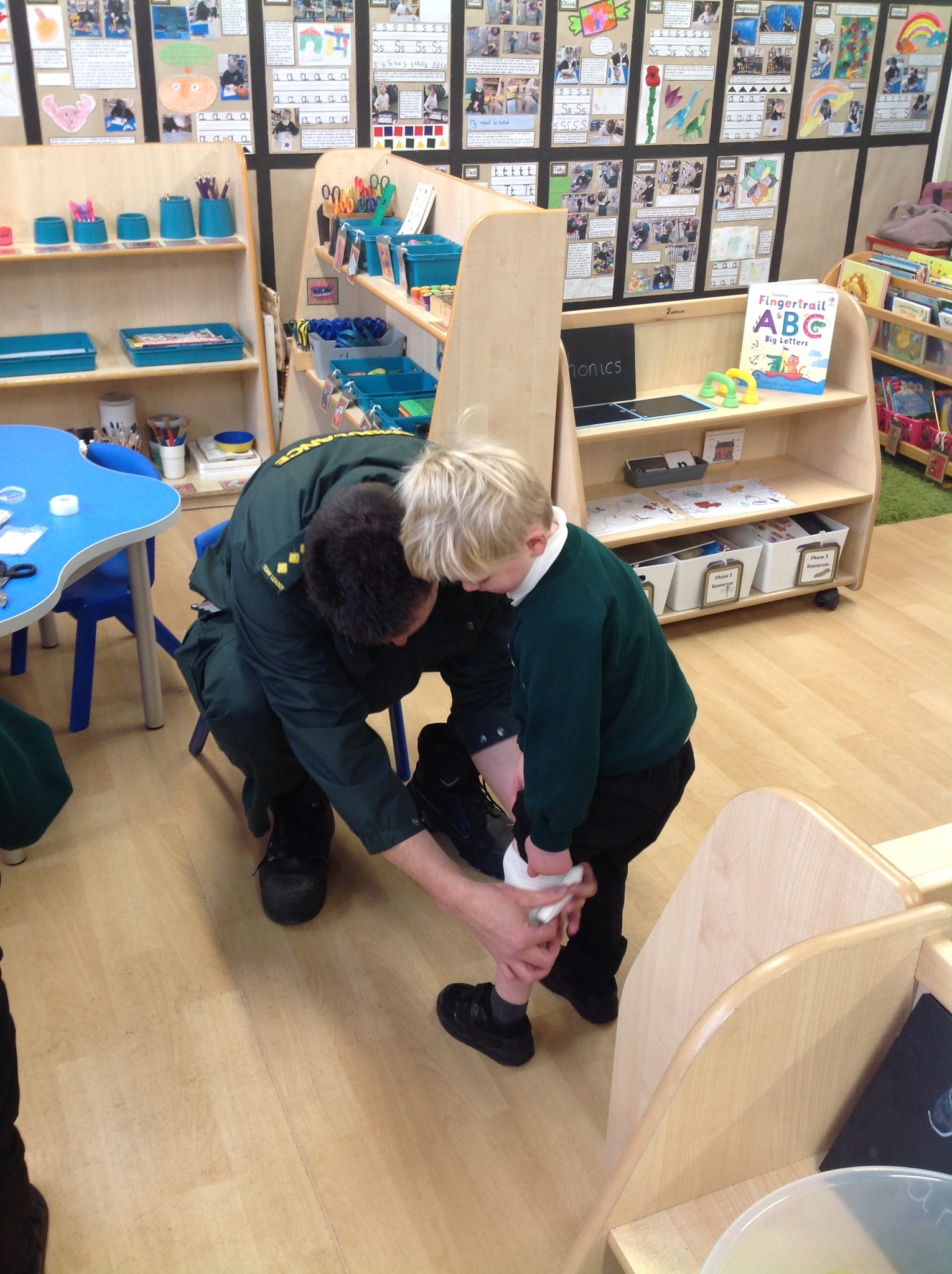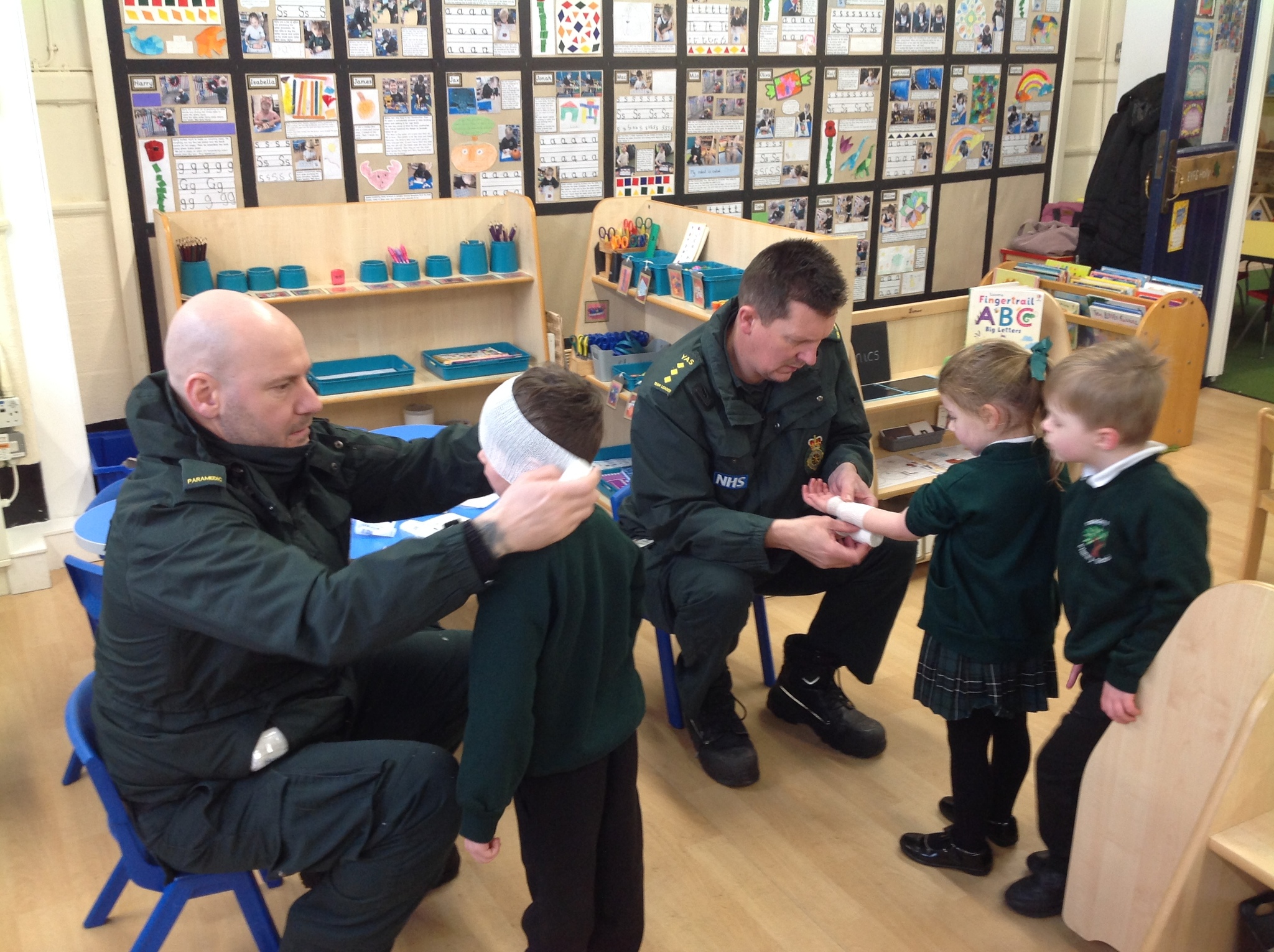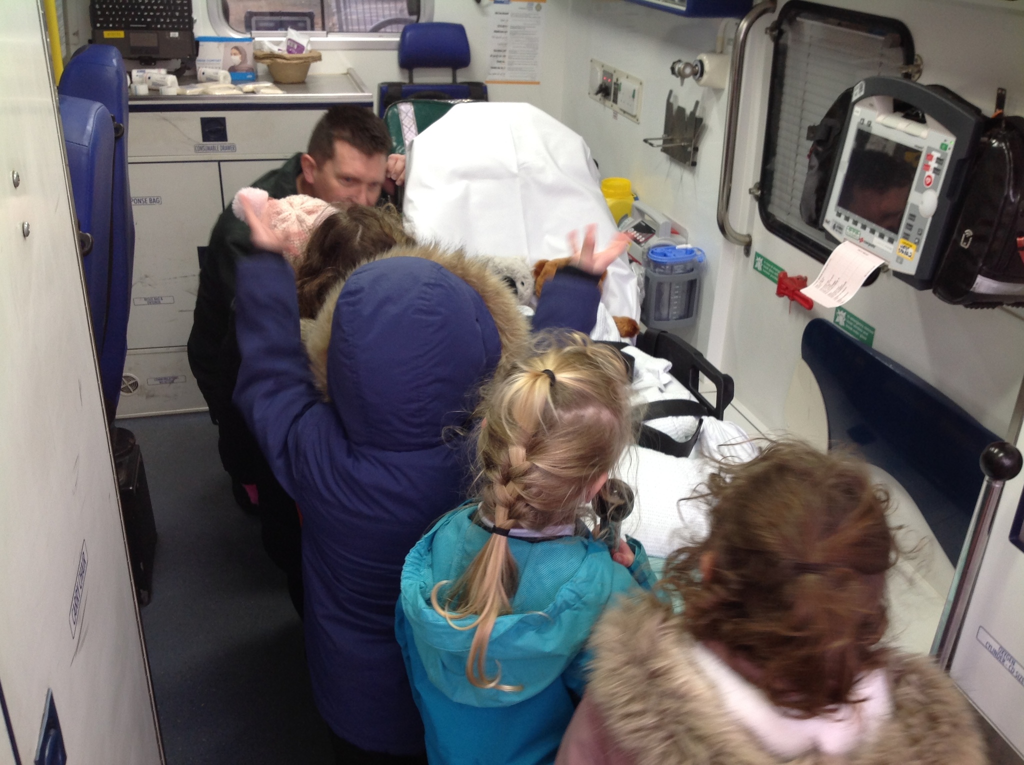 Today we had a very exciting visit from two paramedics who brought their ambulance to show us! The children were lucky enough to go on the ambulance and meet Charles and Eddie (the two poorly teddies). The children listened carefully and asked some great questions. Some of the children even chose to be bandaged up so please don’t worry when you see them after school! We all had a brilliant time and are very grateful for the visit.