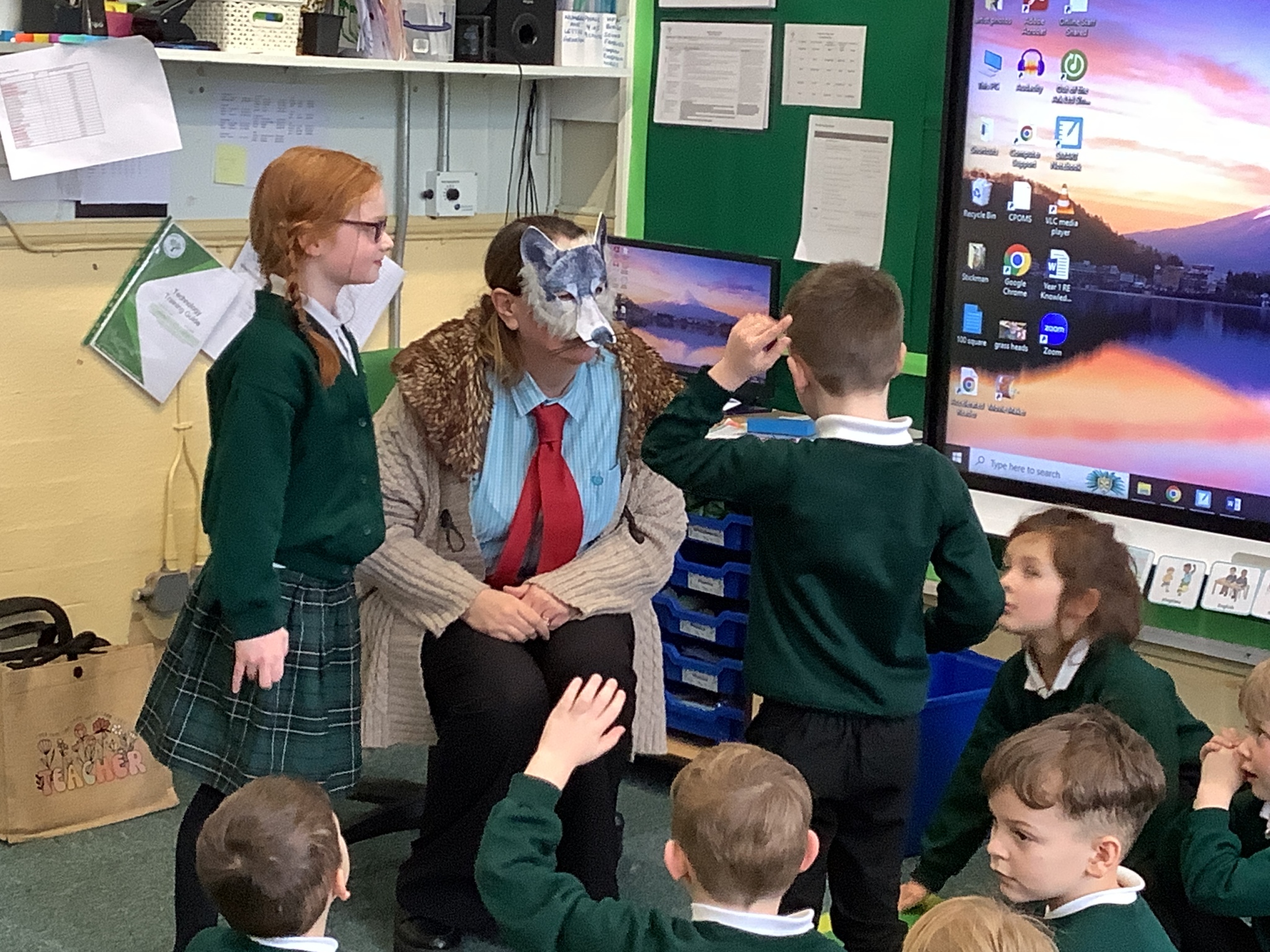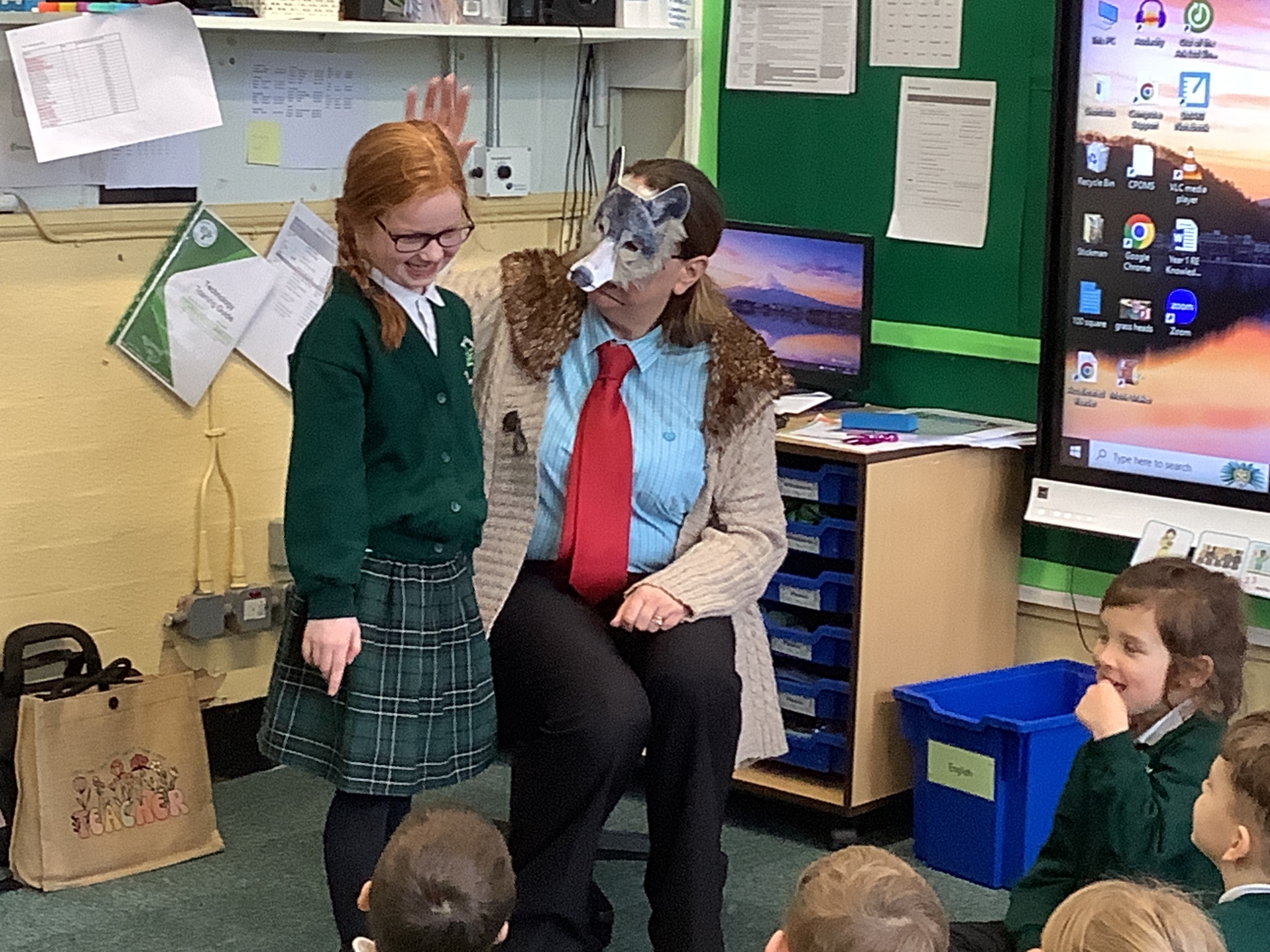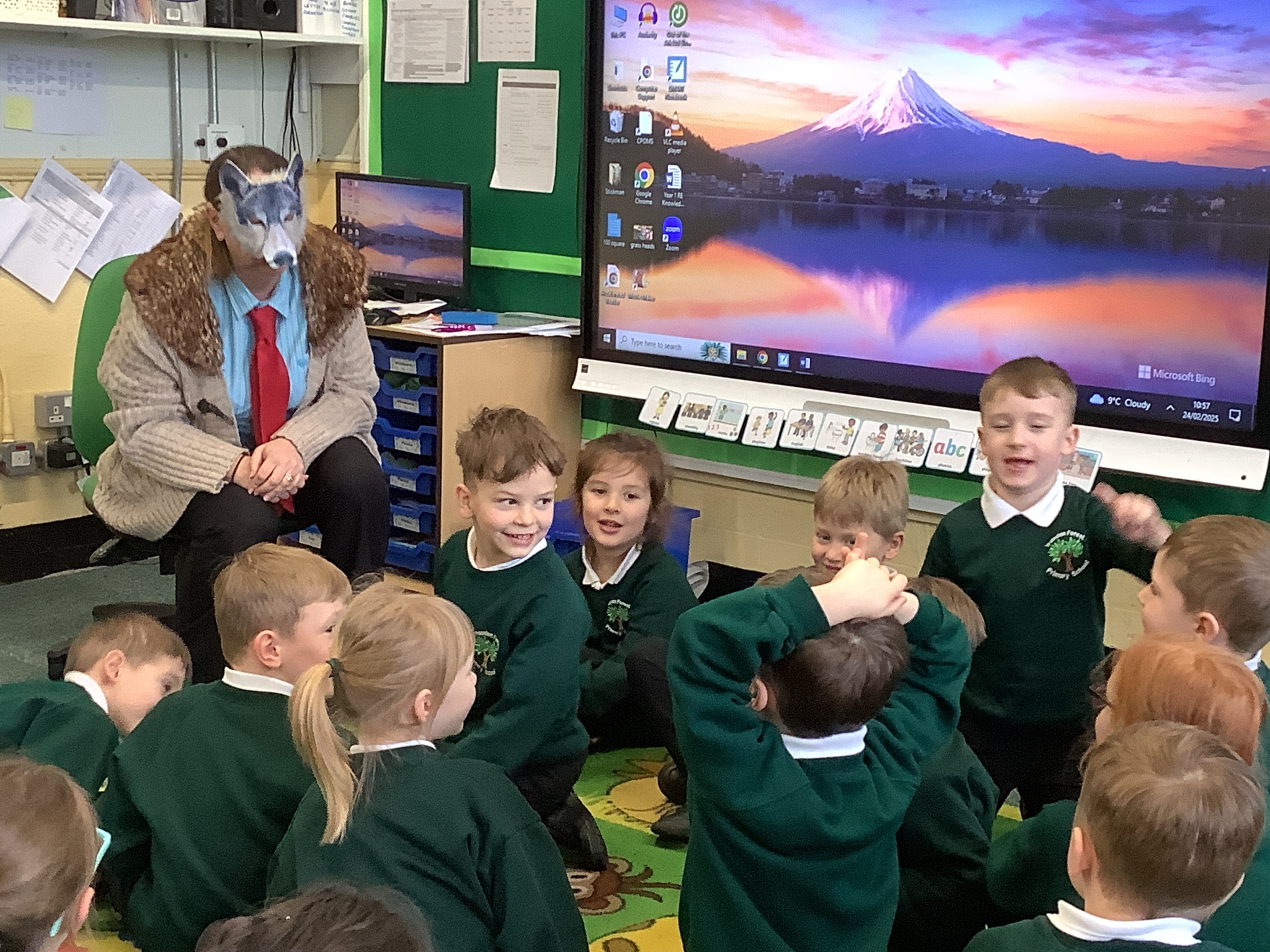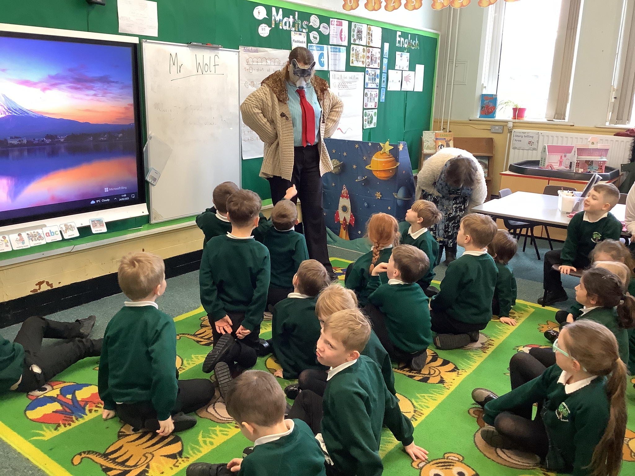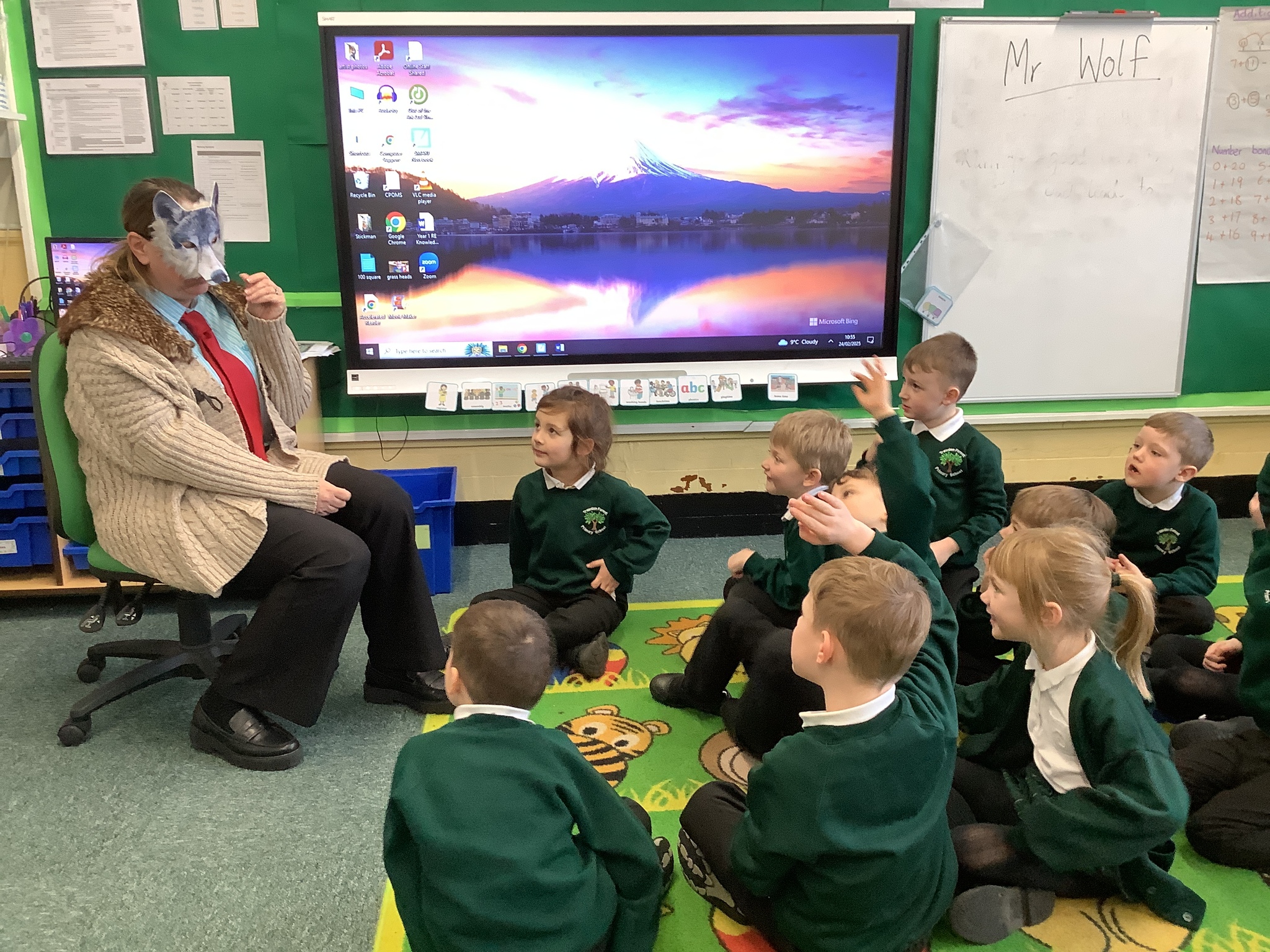 Year 1 were surprised, shocked and a little frightened when they came back into class from playtime this morning. Mrs Alcock was not there and in her place was someone they had never seen before. He said his name was Mr Wolf and he was just filling in for Mrs Alcock. He was a little scary and very bossy.