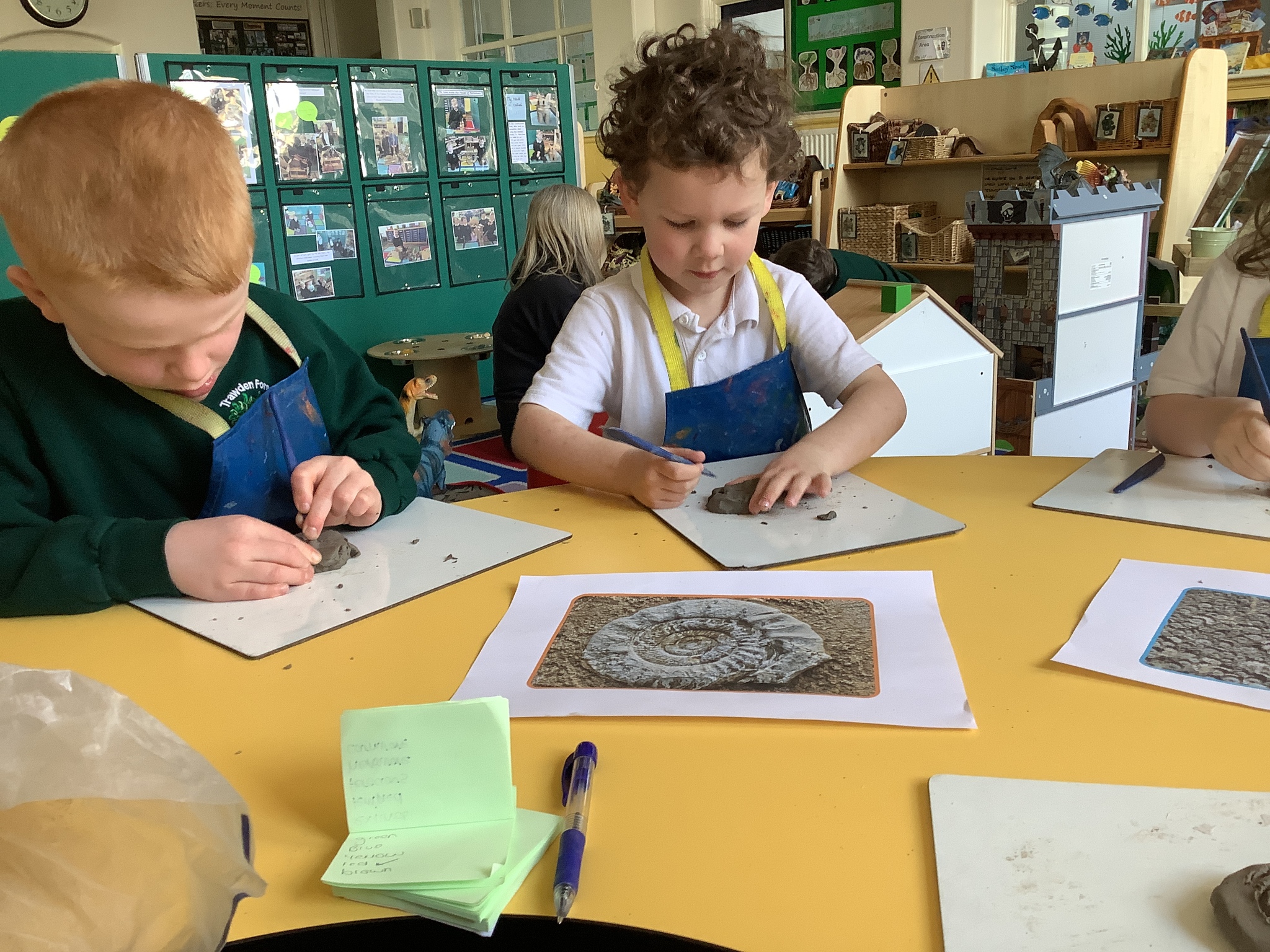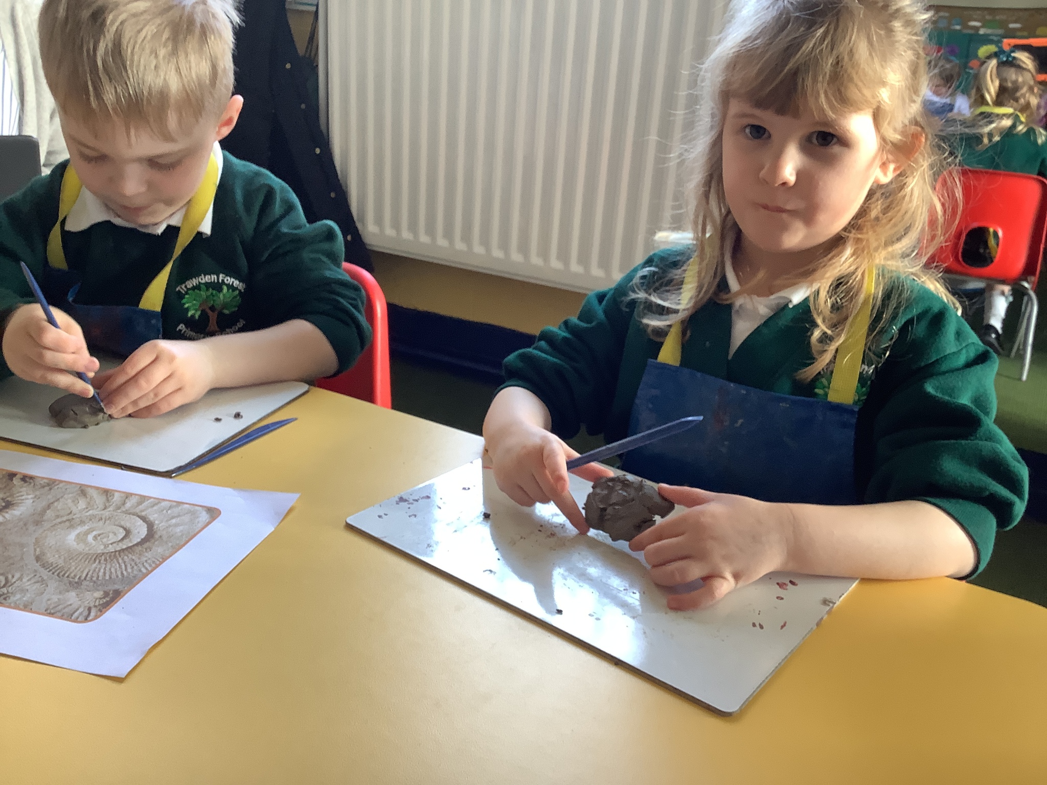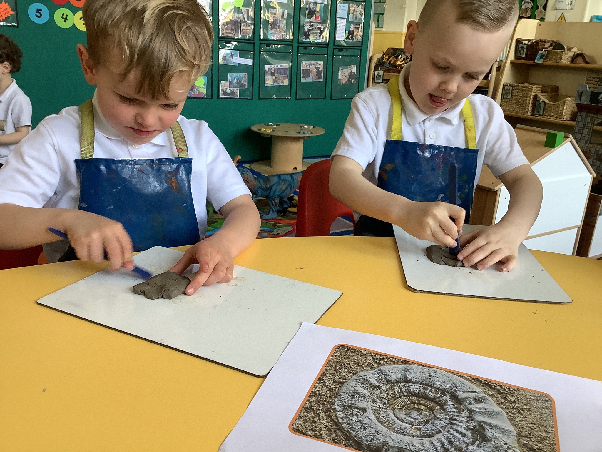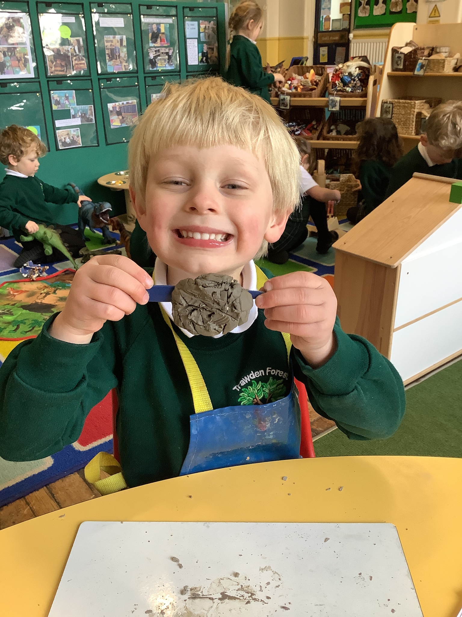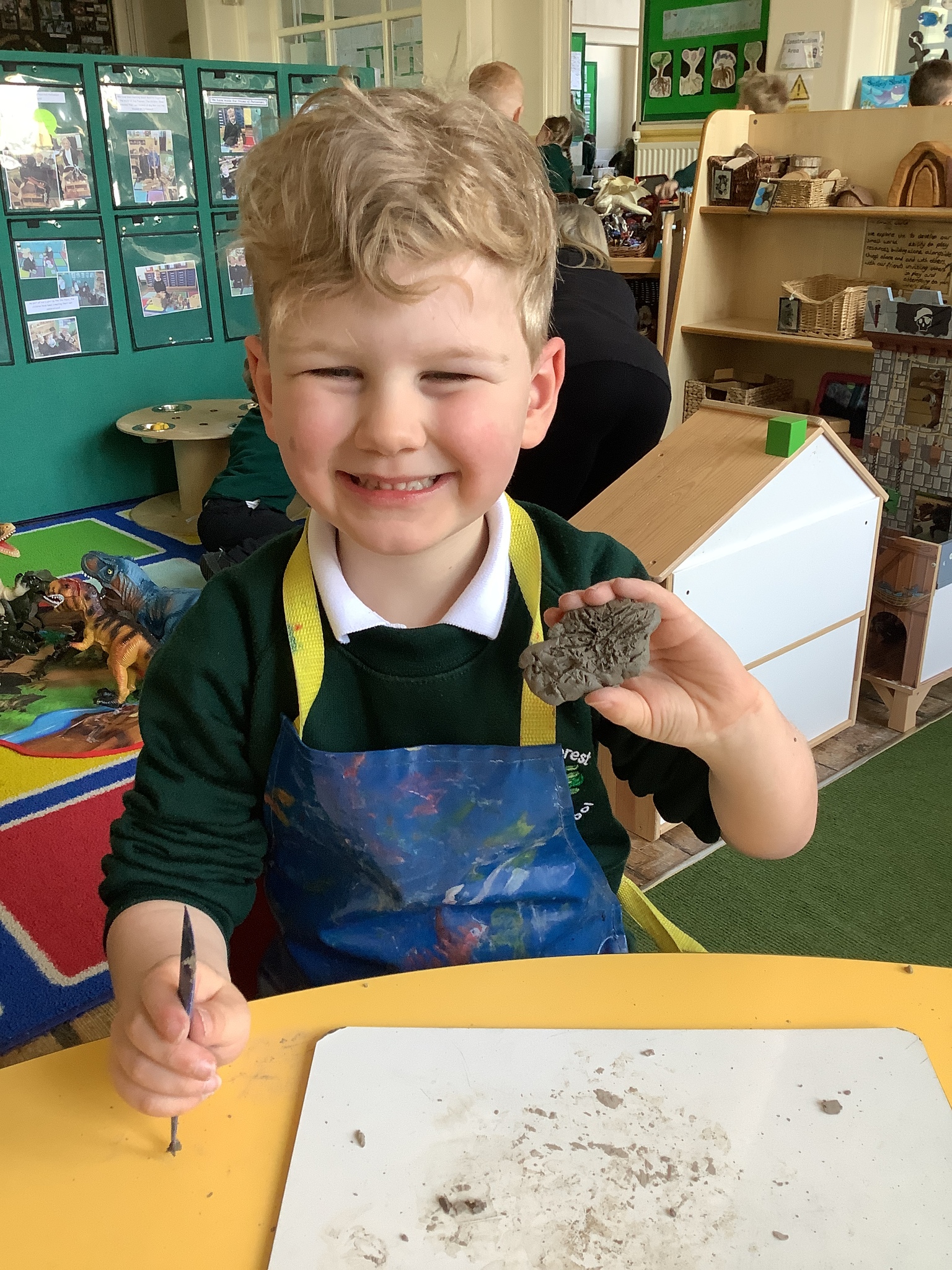 The children have loved exploring our dinosaur topic even more this week, discovering fossils and having a go at making their own.