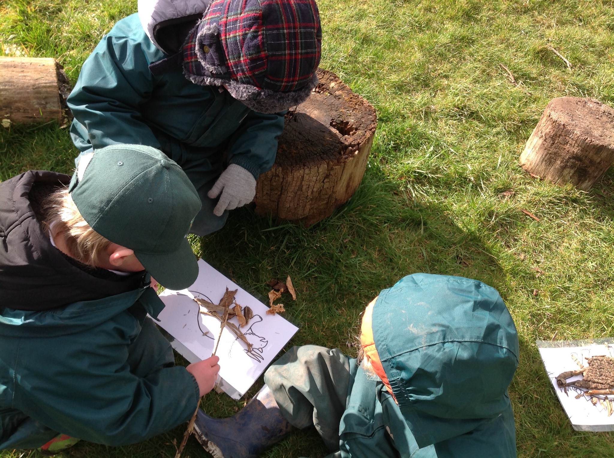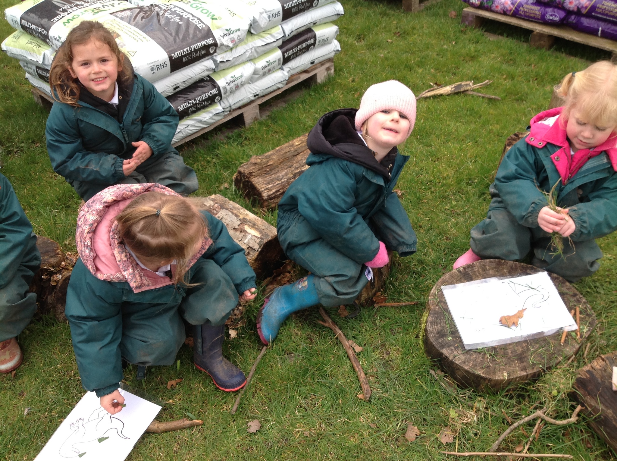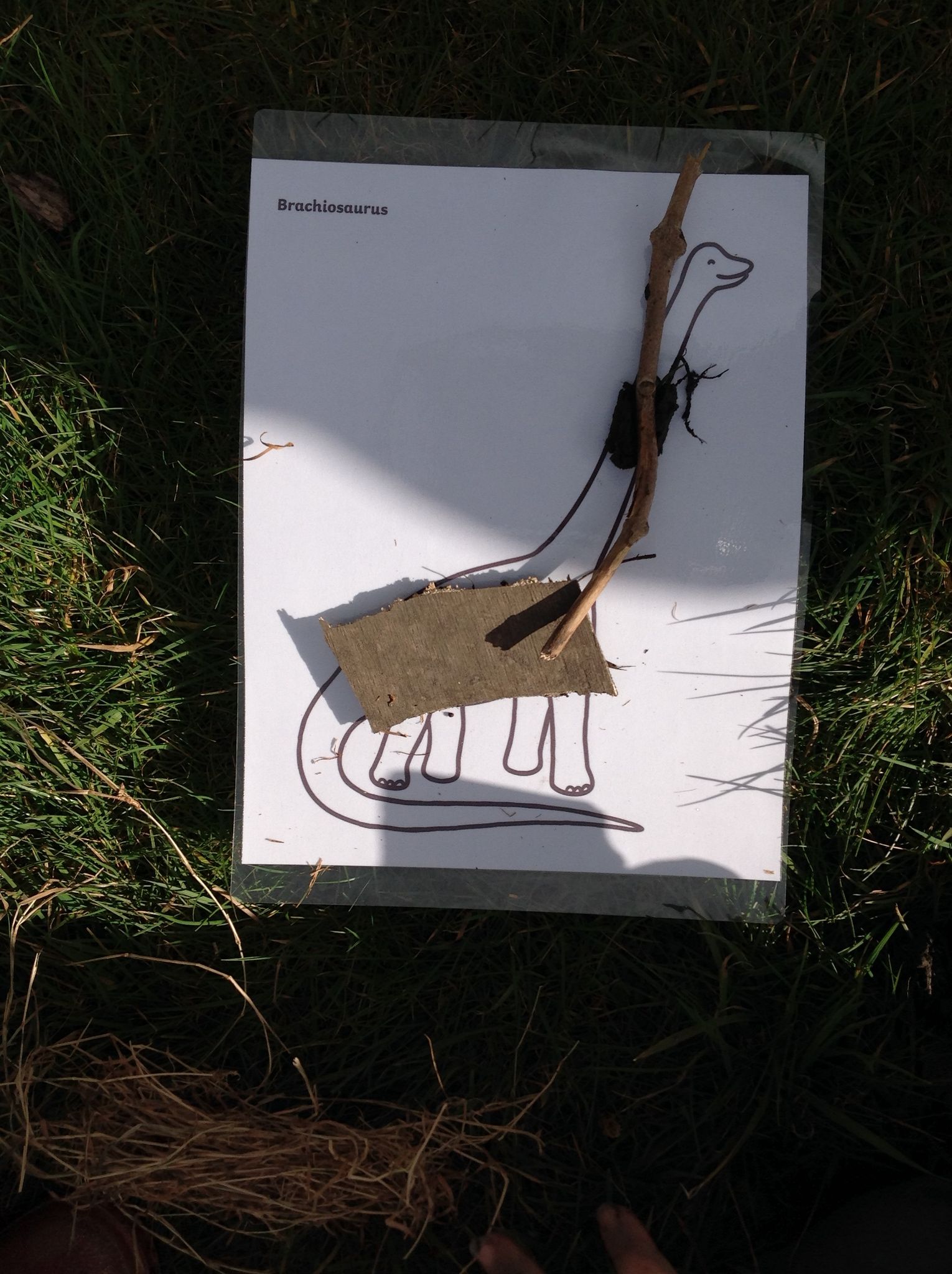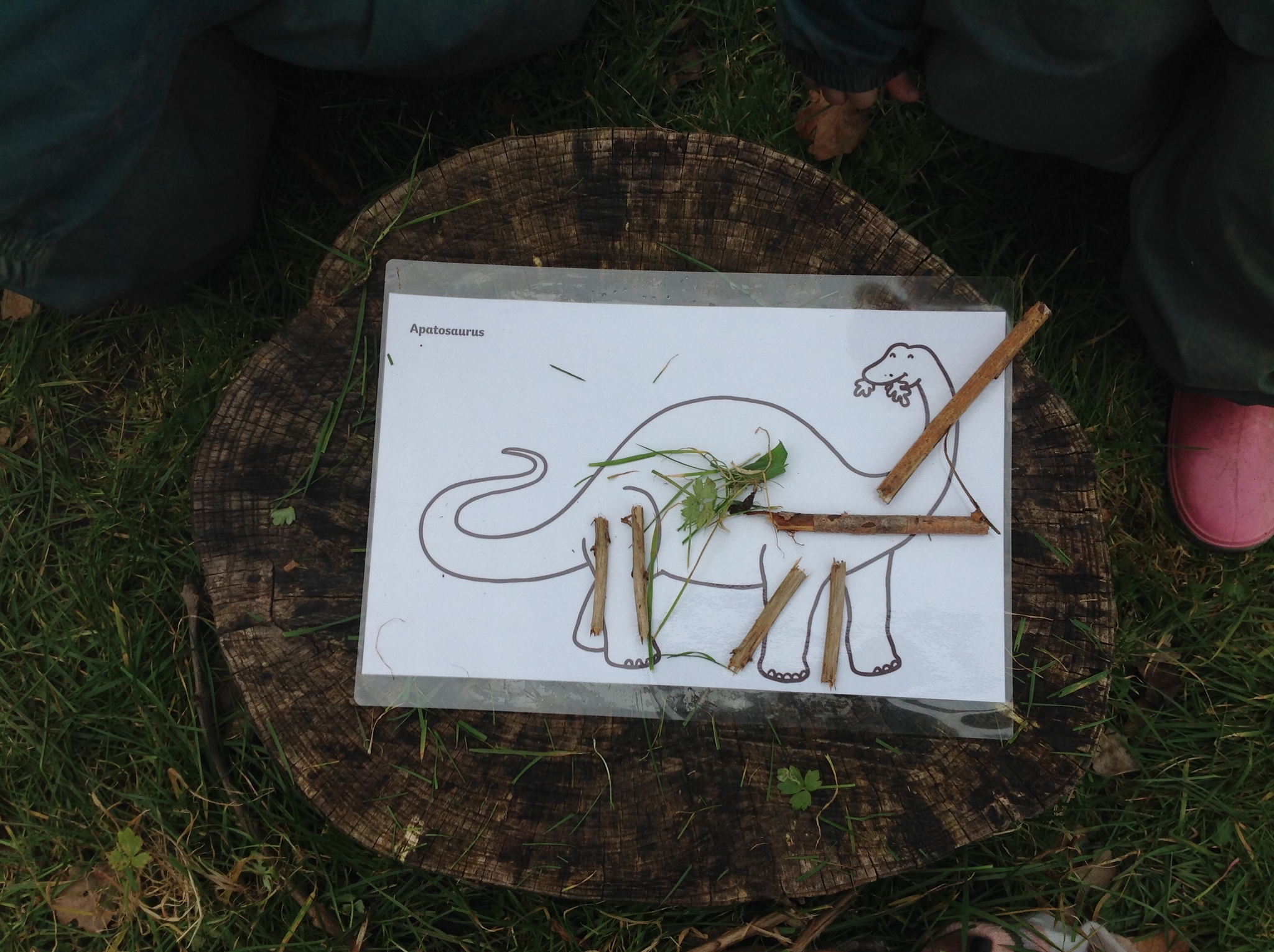 In Forest School, they had great fun using nature to decorate a dinosaur, carefully selecting leaves, twigs, and other natural materials to create wonderful designs. It was fantastic to see their creativity in action!