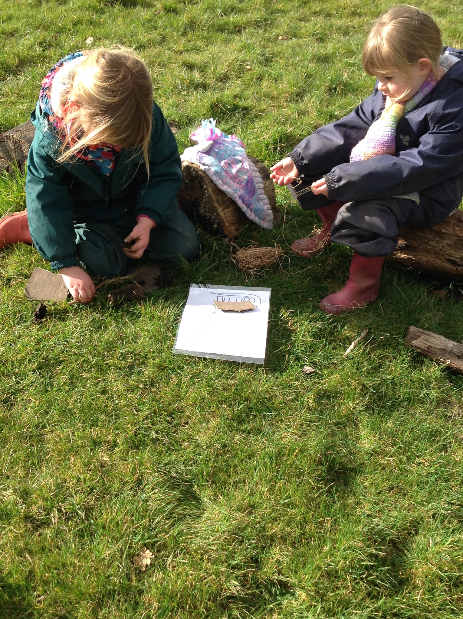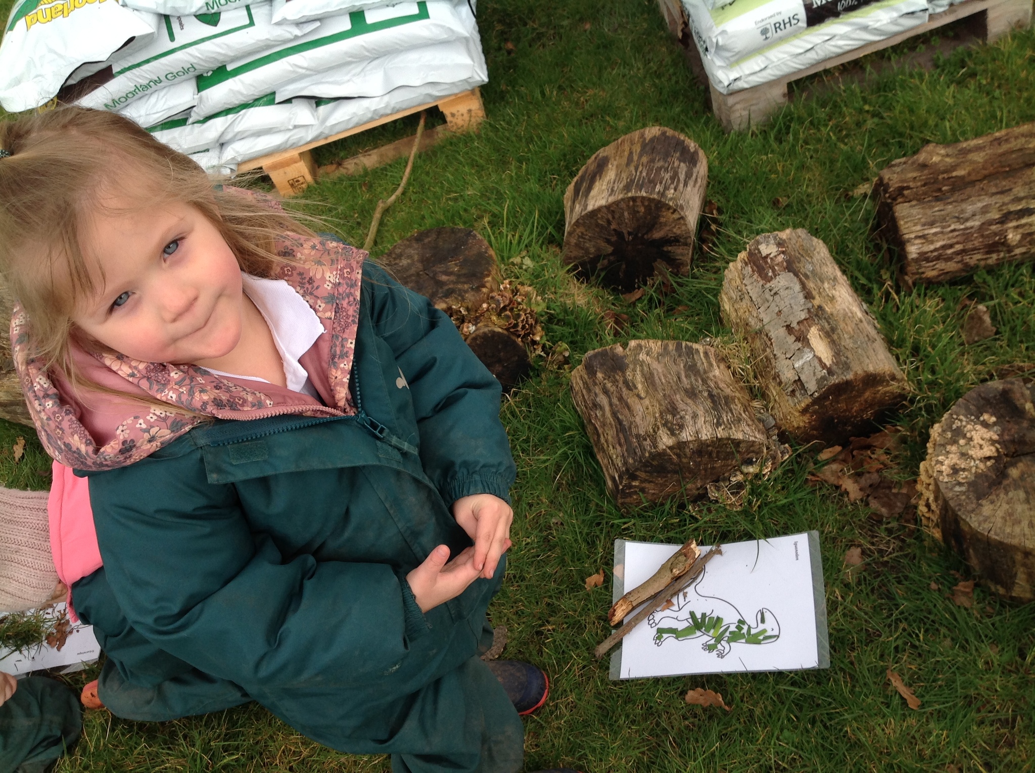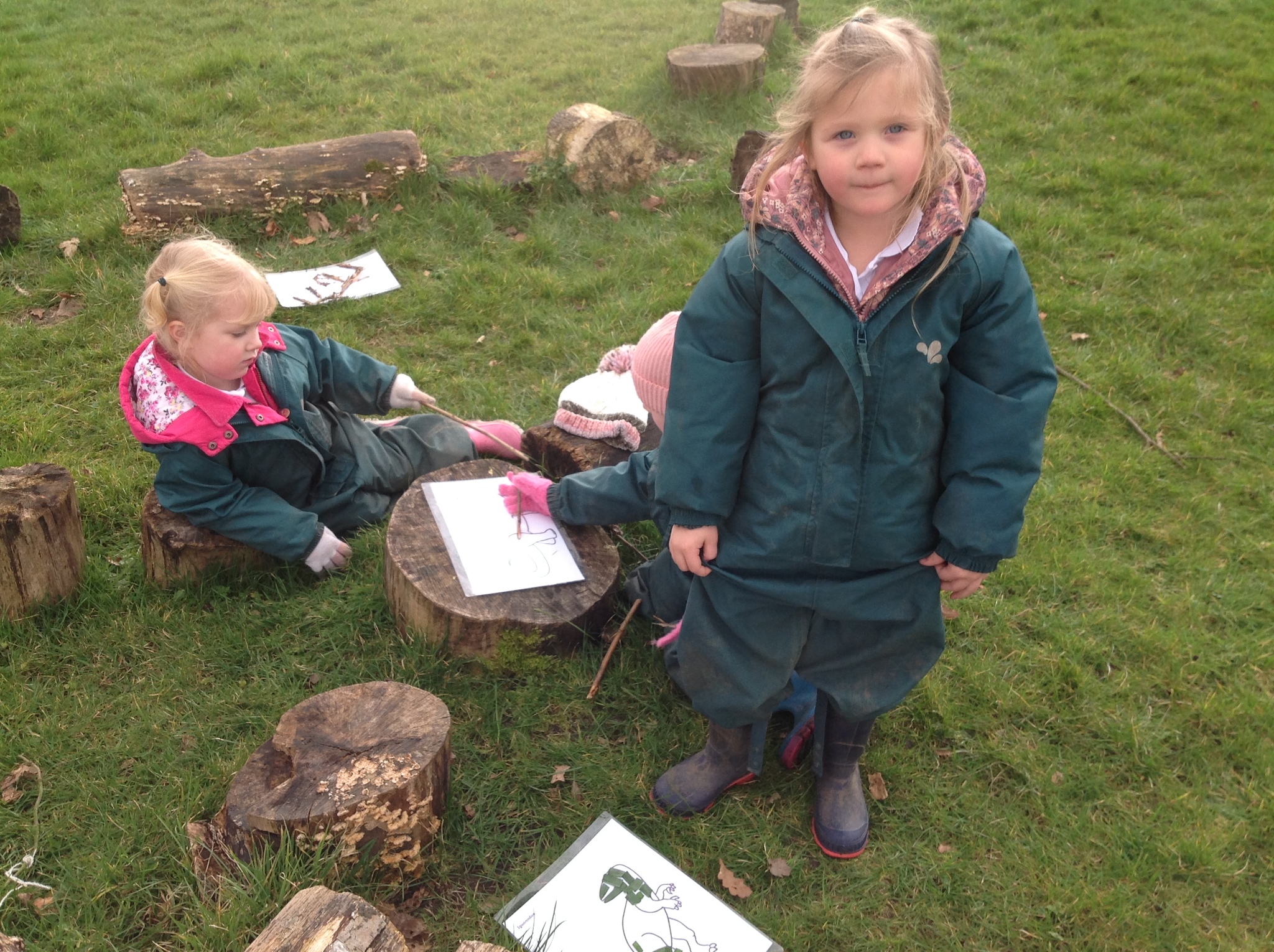 In Forest School, they had great fun using nature to decorate a dinosaur, carefully selecting leaves, twigs, and other natural materials to create wonderful designs. It was fantastic to see their creativity in action!